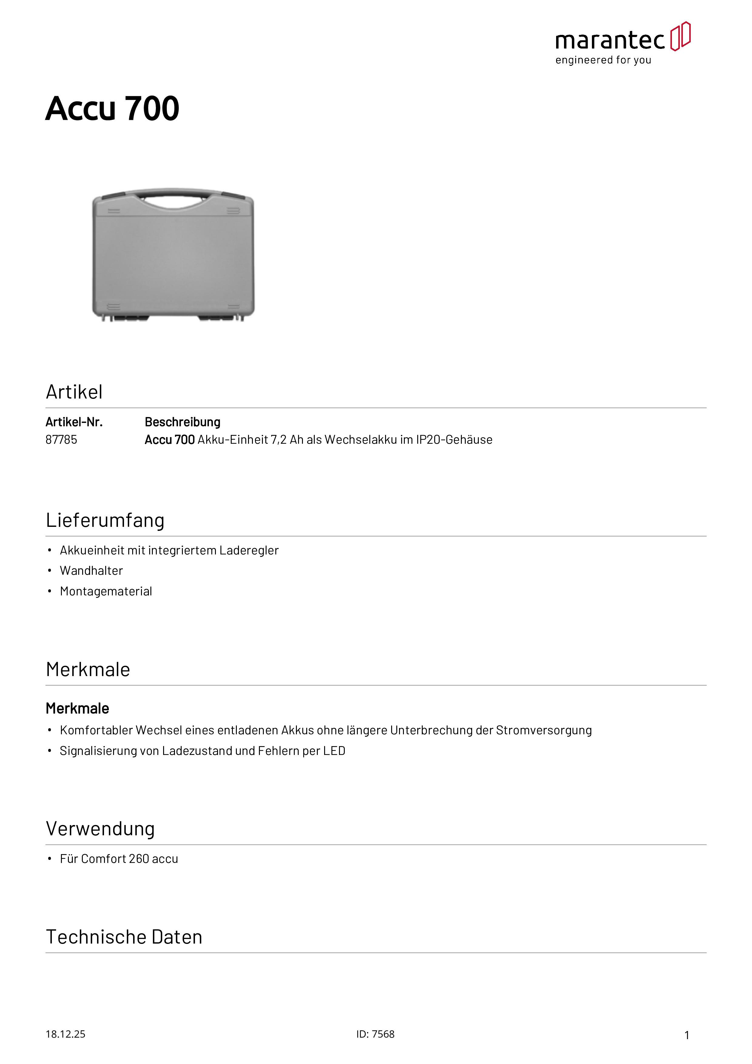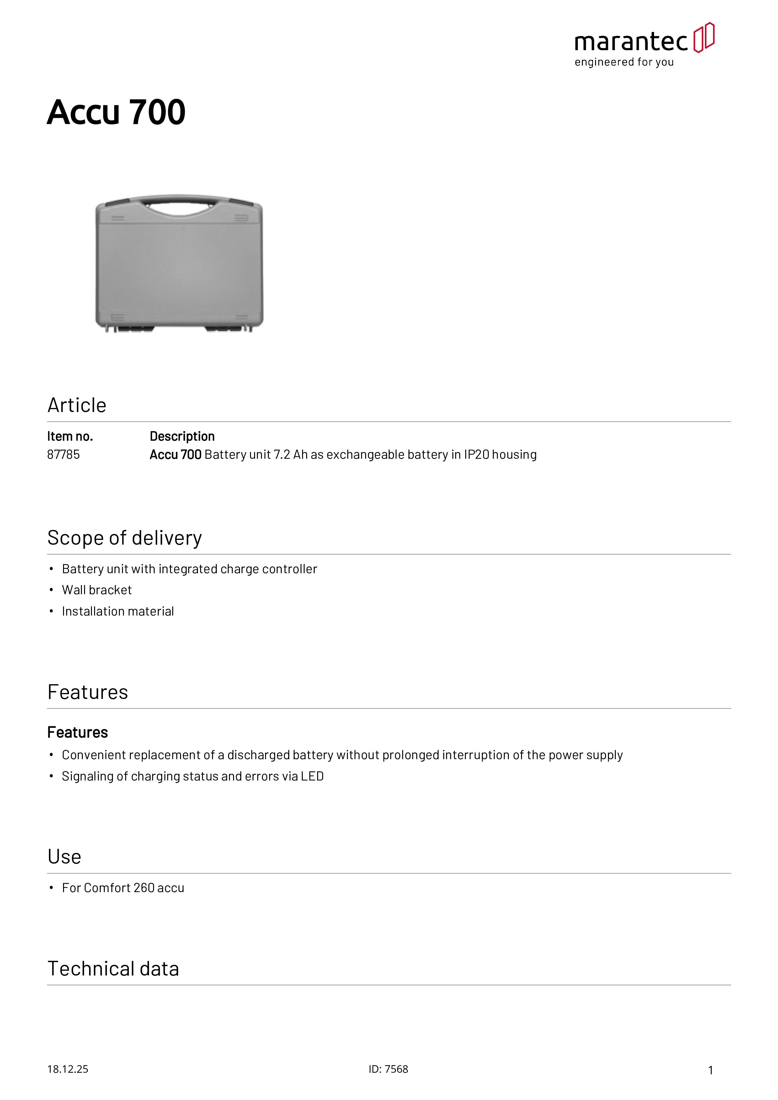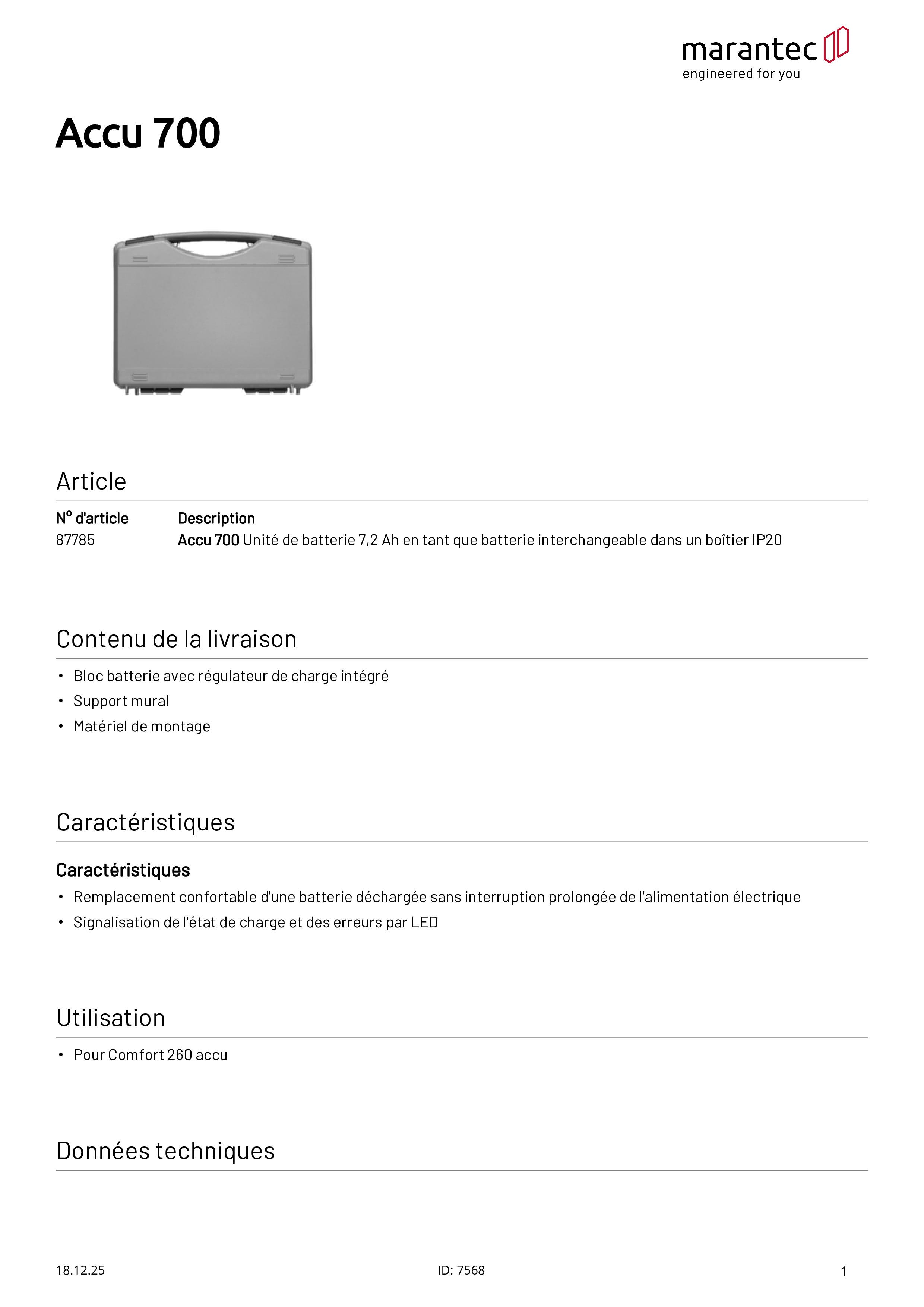 Accu 700 Unité de batterie 7,2 Ah en tant que batterie interchangeable dans un coffret, IP20
