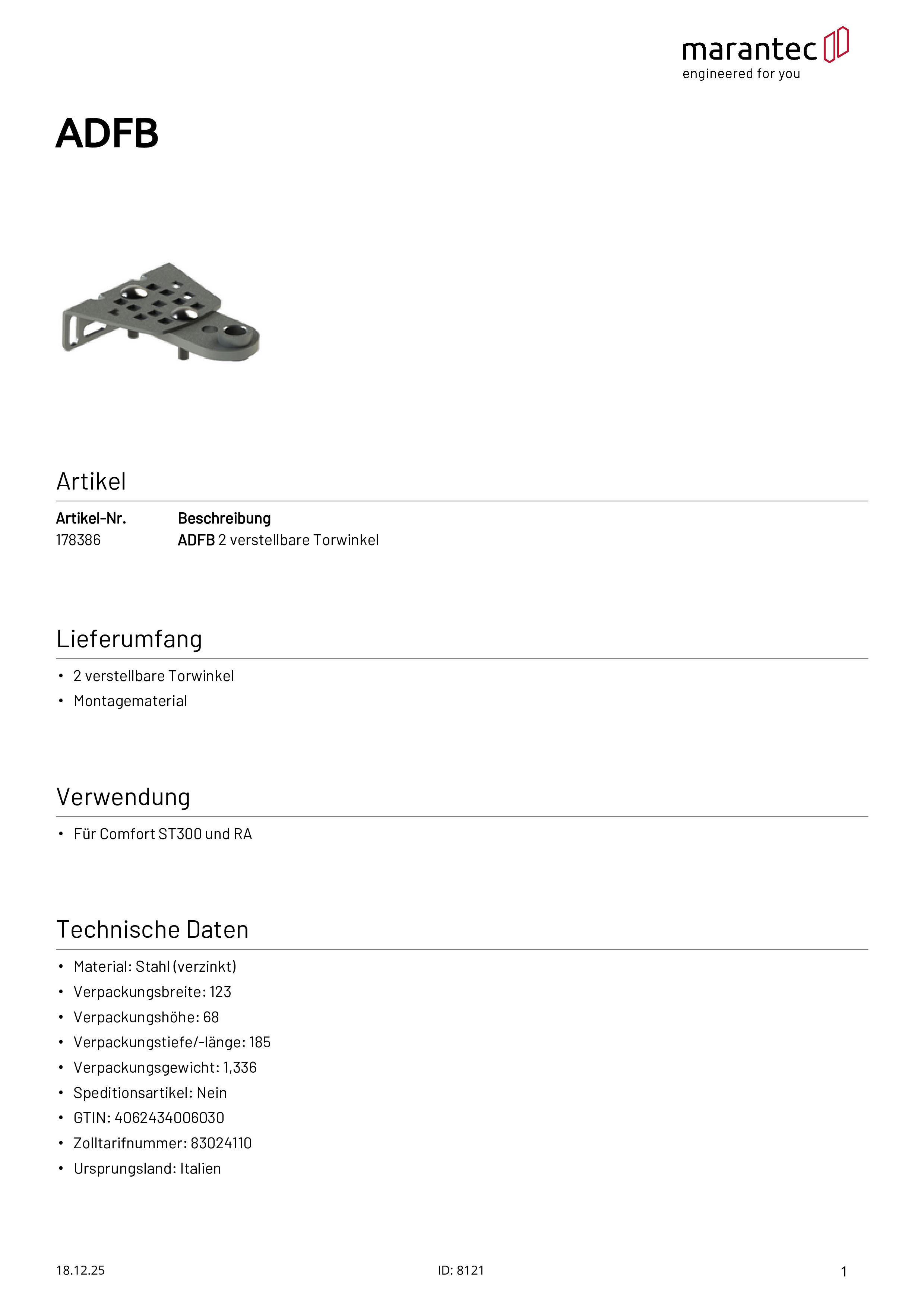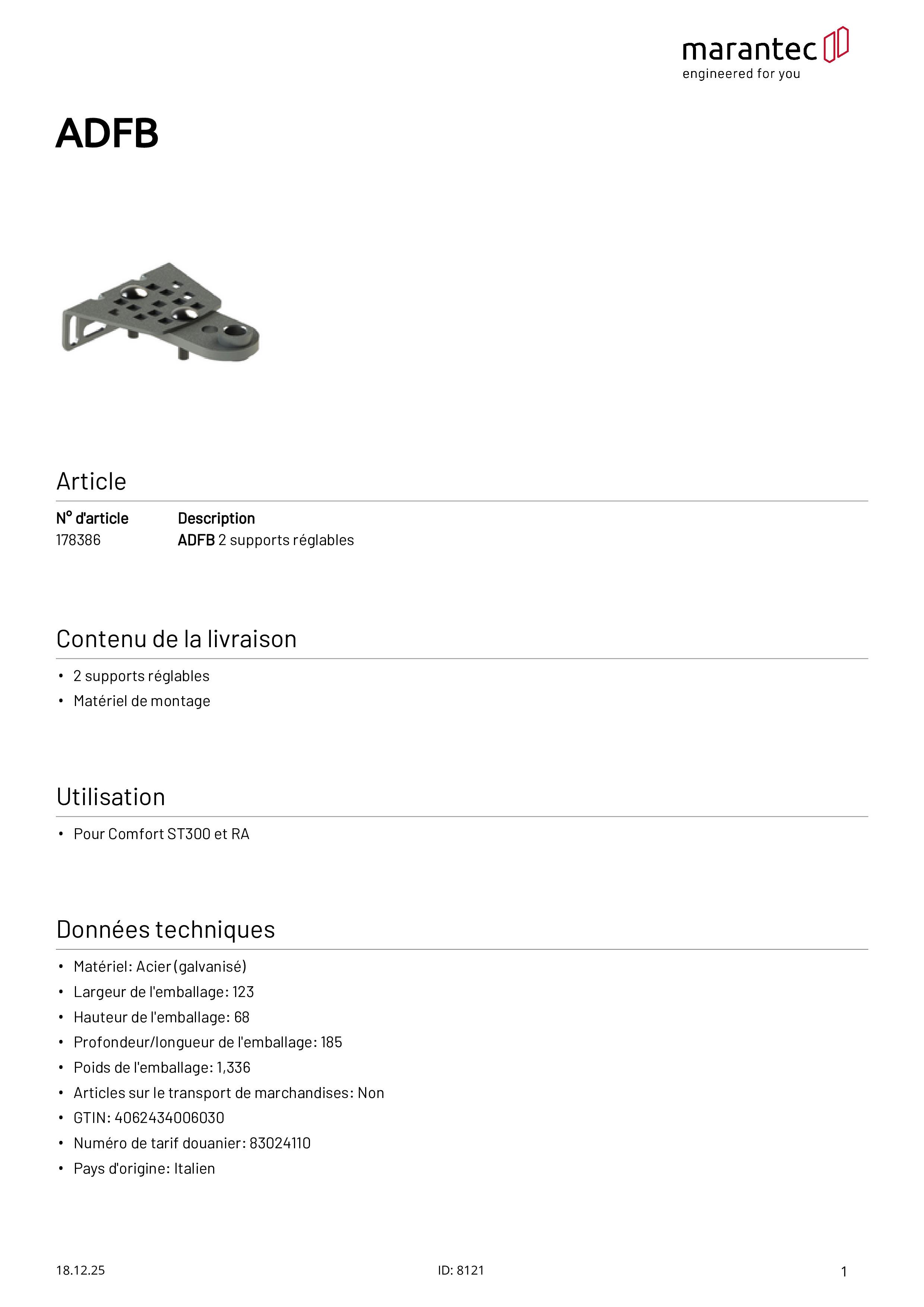 ADFB 2 équerres de porte réglables pour Comfort RA