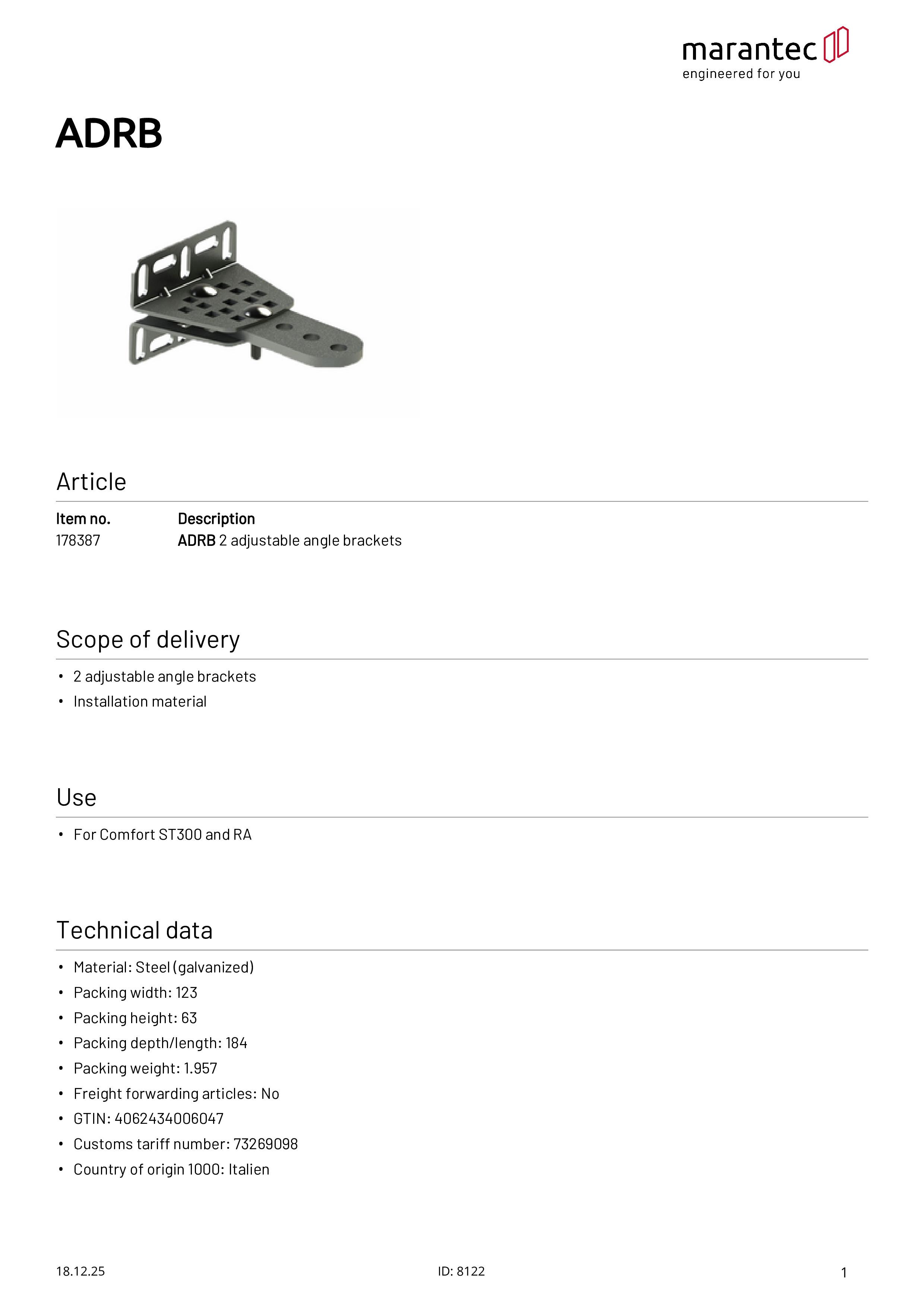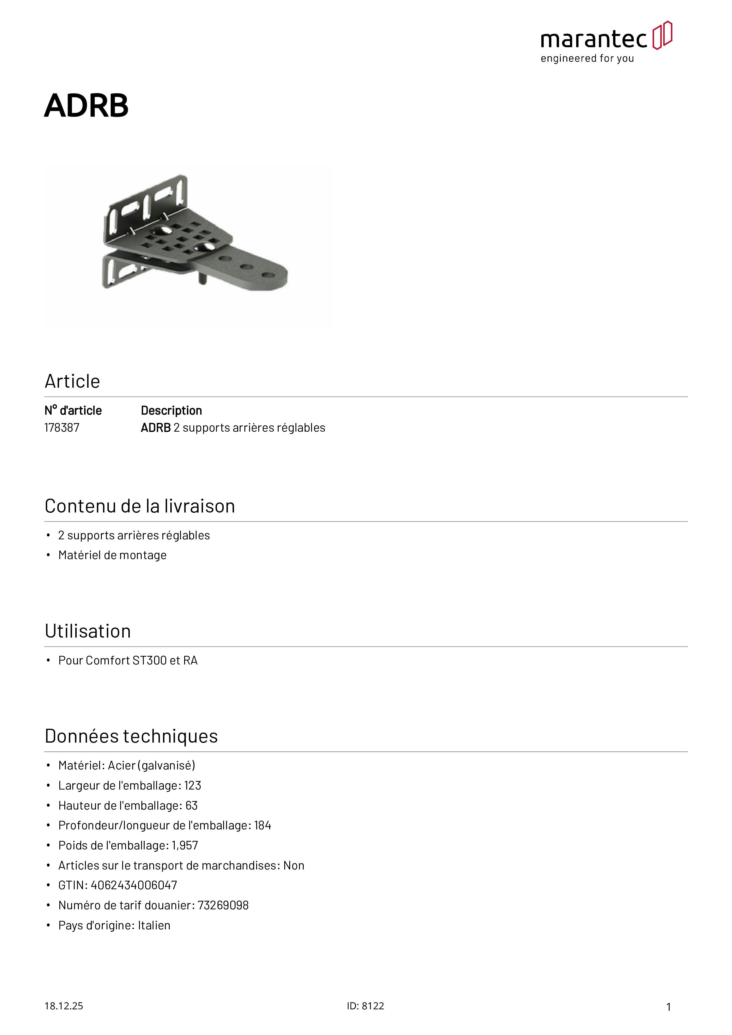 Equerre de pilier ADRB pour Comfort RA