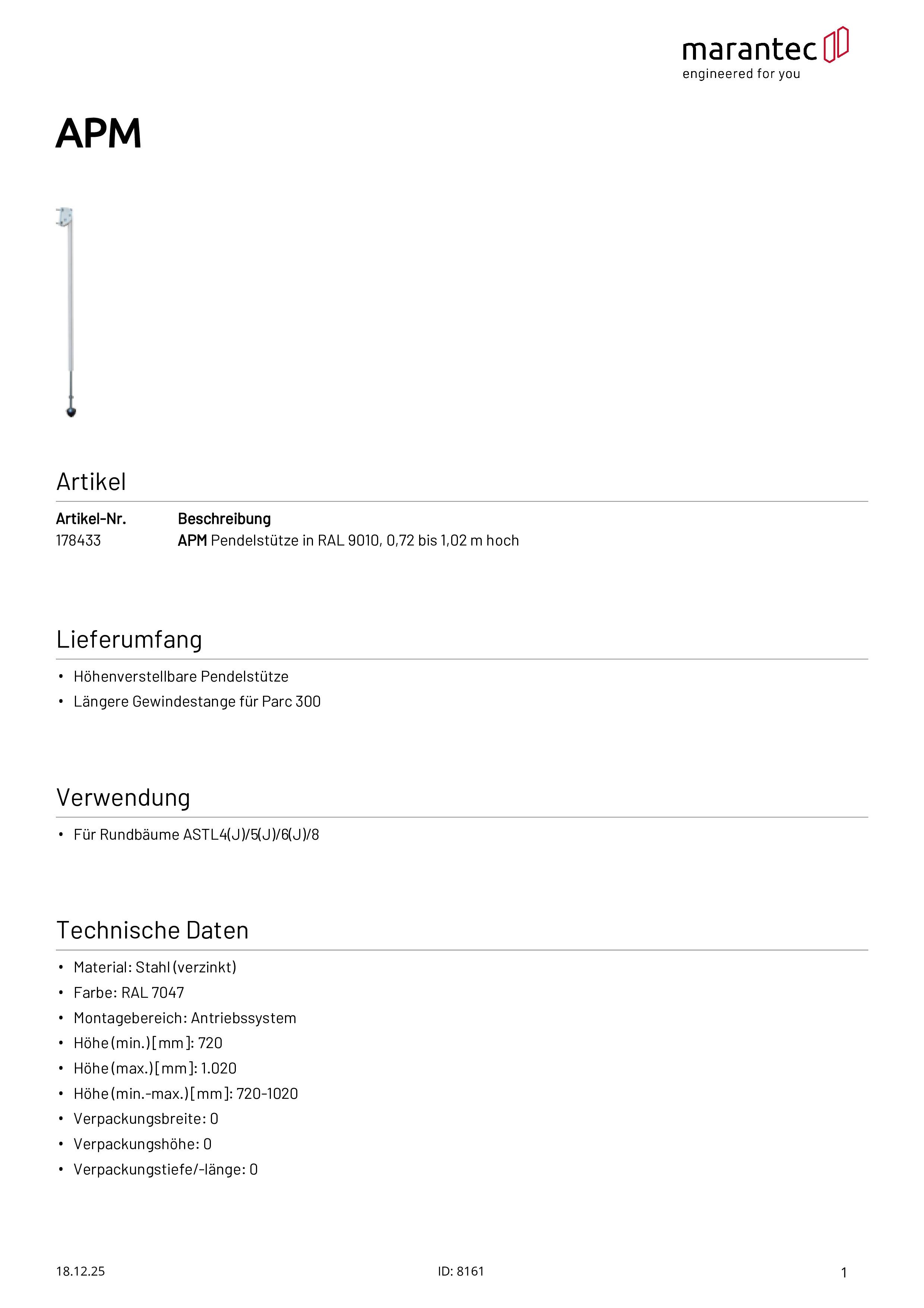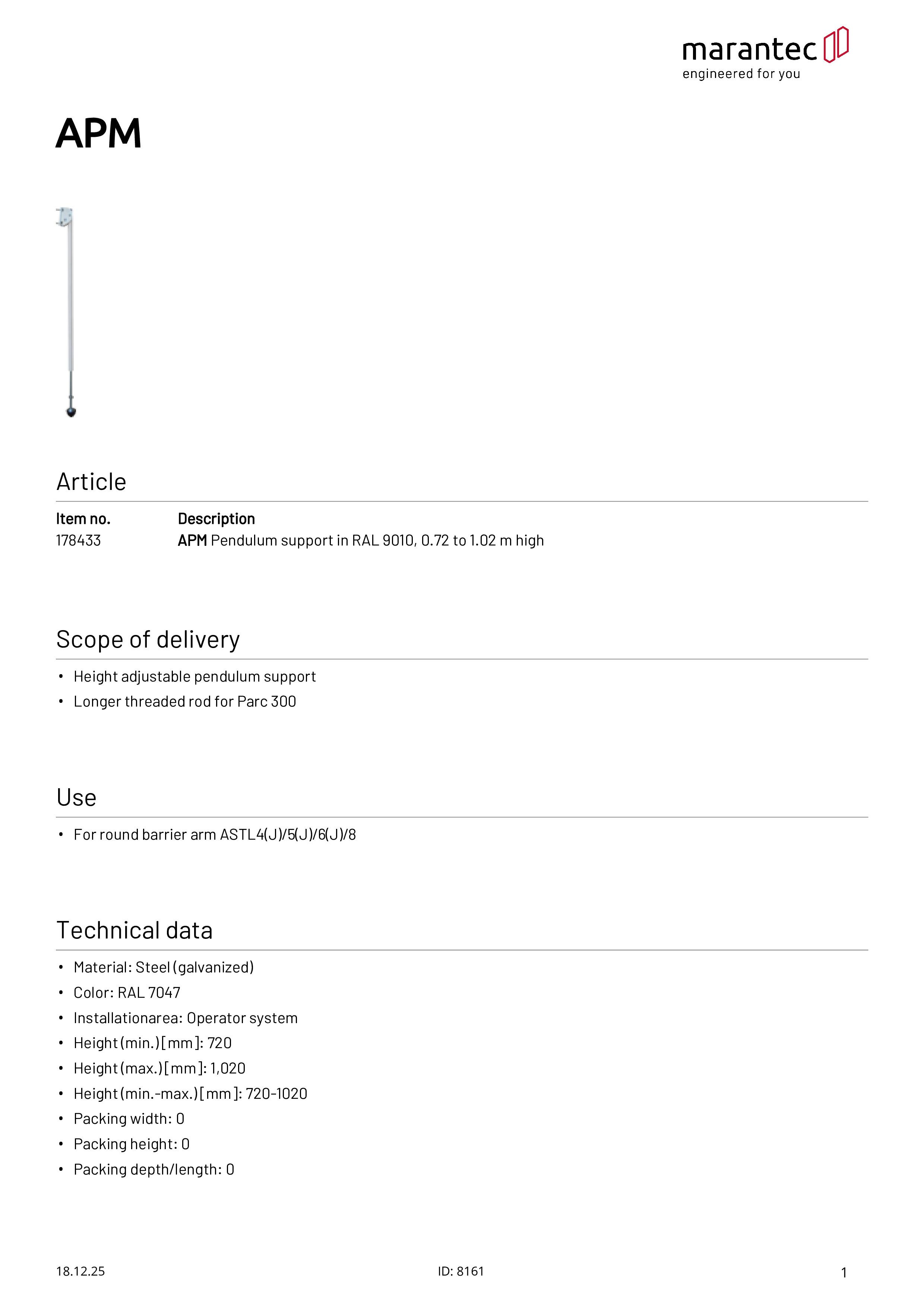 APM lyre de repos RAL 9010, 0,72-1,02 m de hauteur