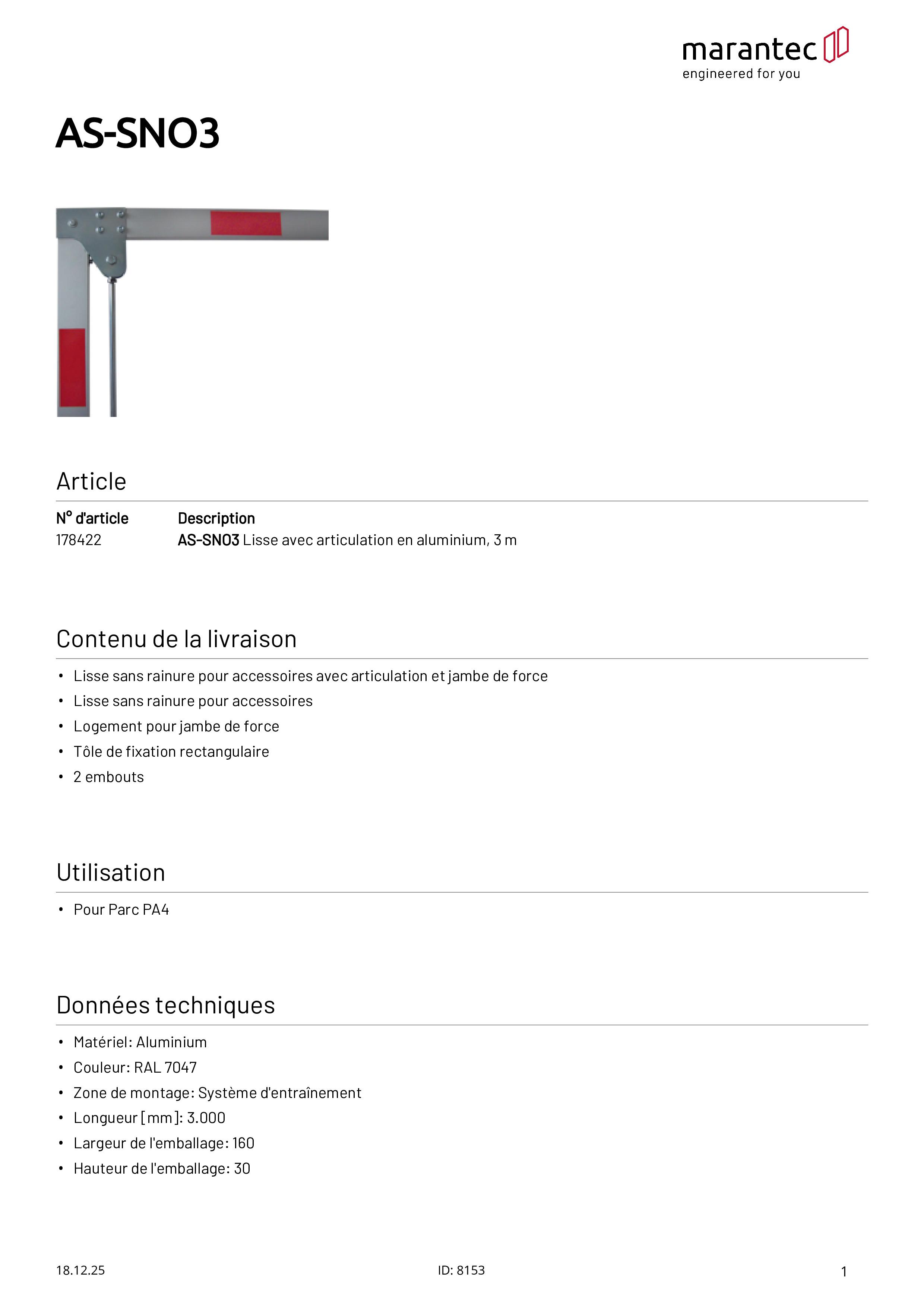 Lisse articulée AS-SNO3 max. 3m pour Parc PA4