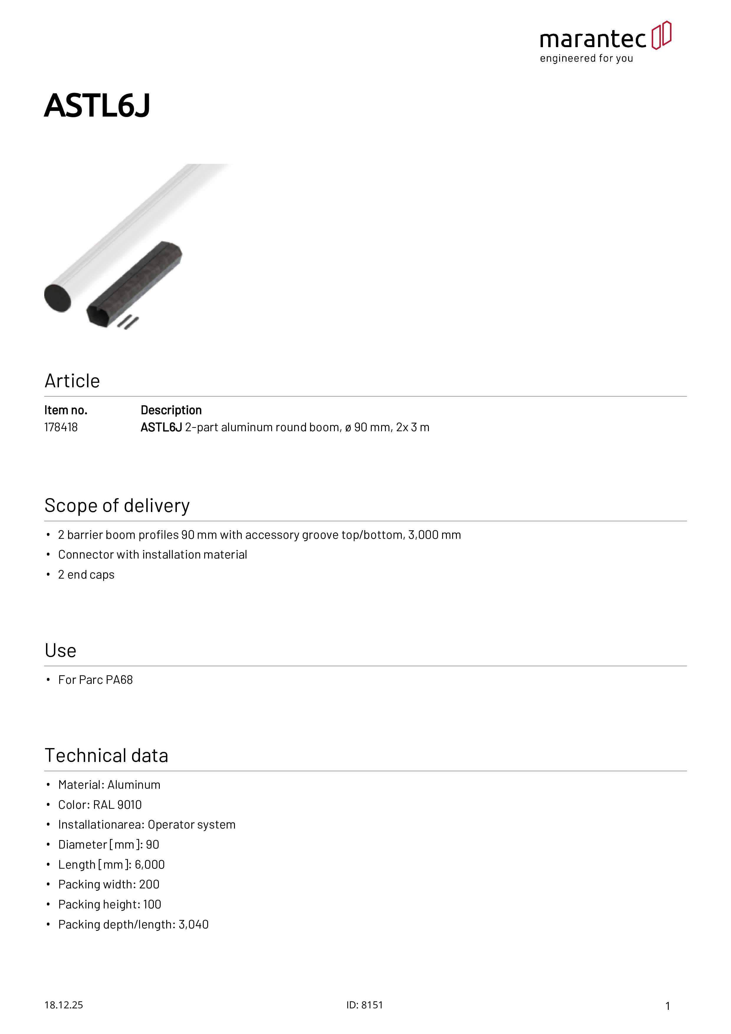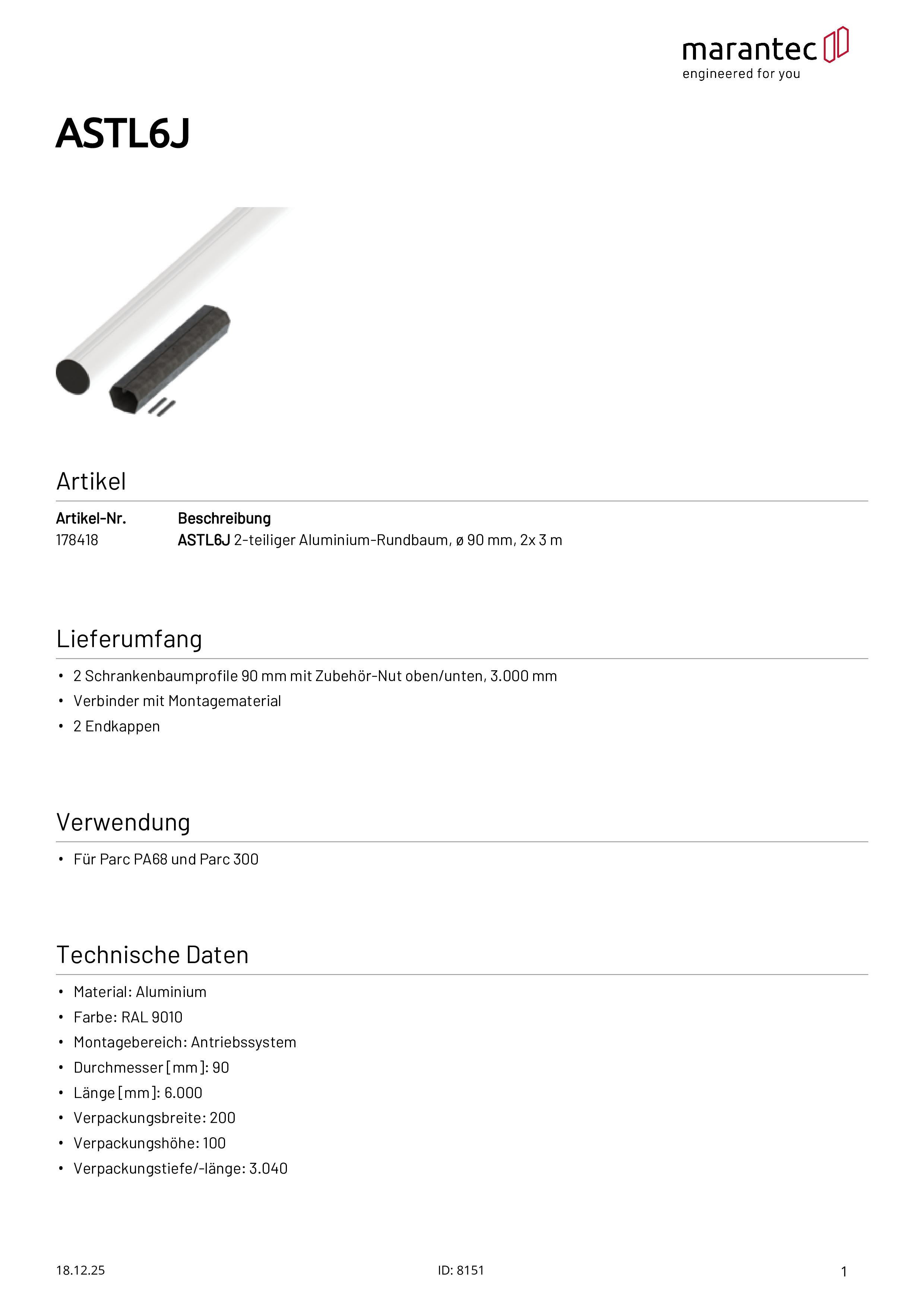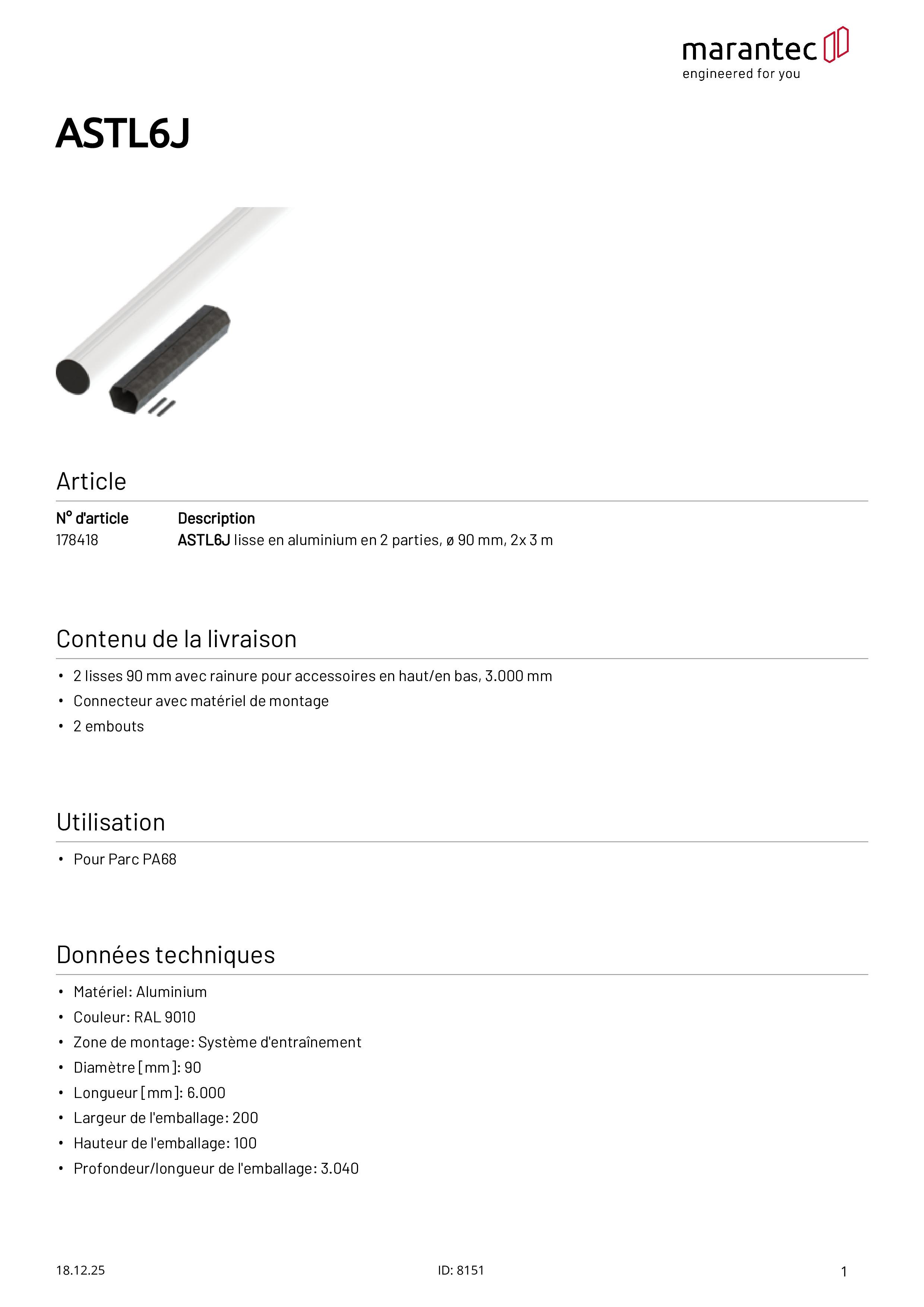 ASTL6J Arbre rond en aluminium en 2 parties, ø 90 mm, 2x 3 m