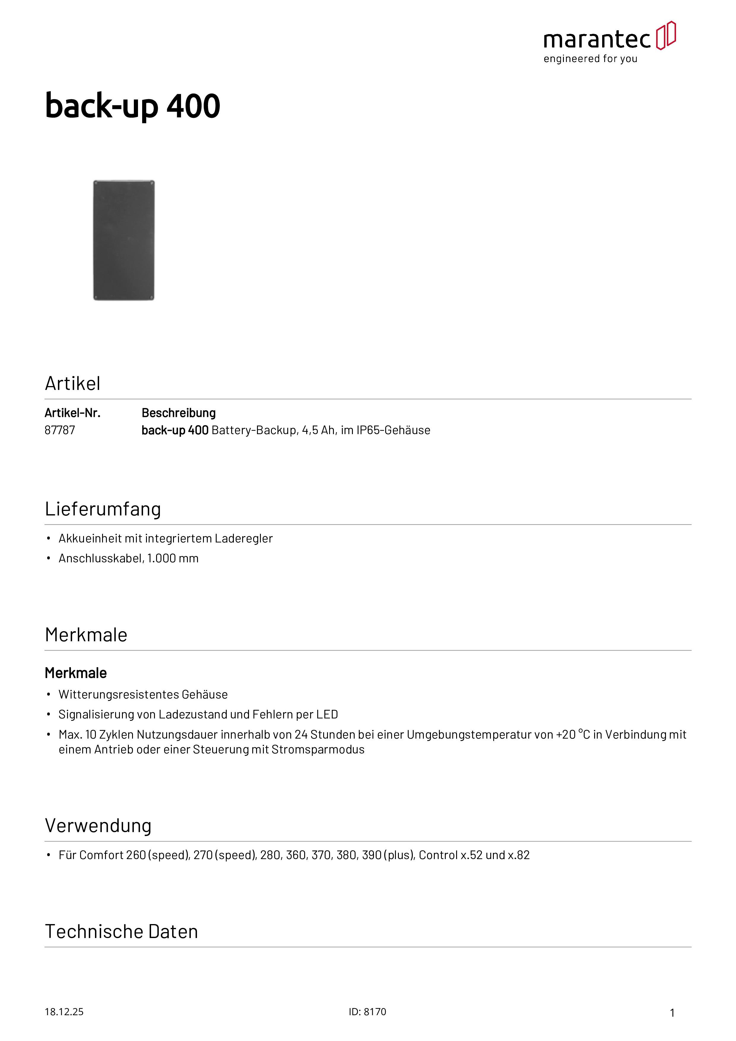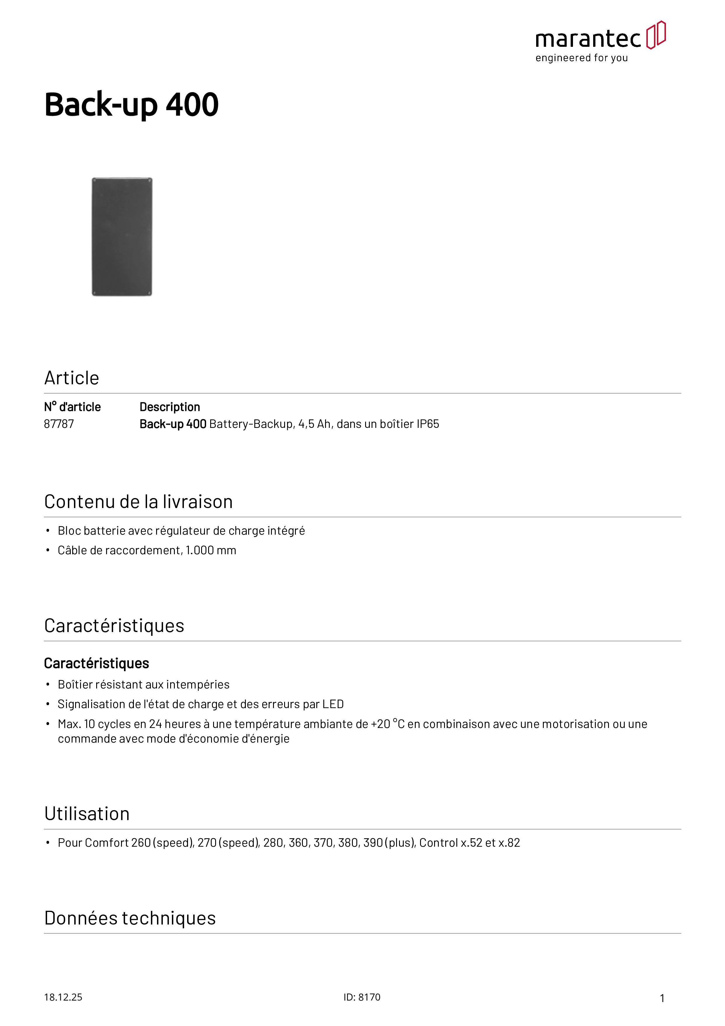 Back-up 400 Battery-Backup, 4,5 Ah, en boîtier, IP65