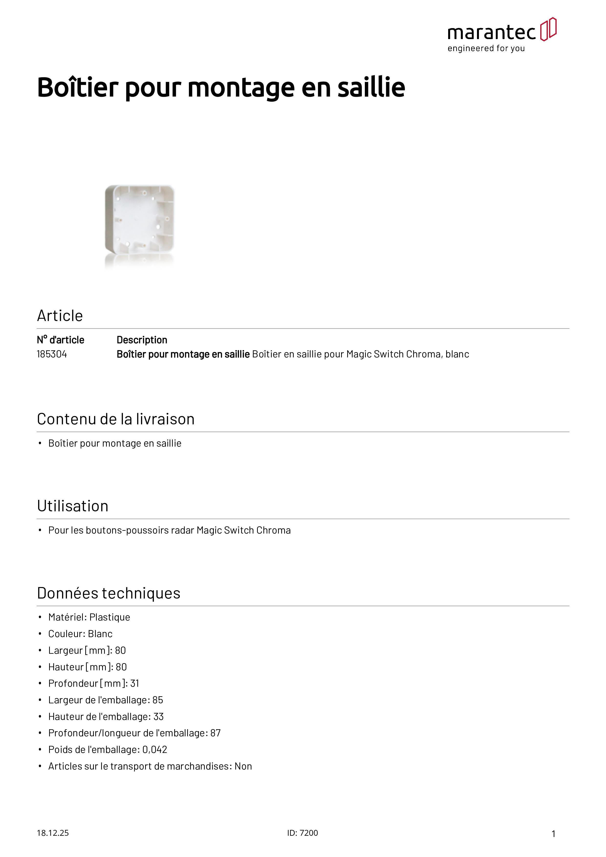 Boîtier en saillie pour Magic Switch Chroma, blanc