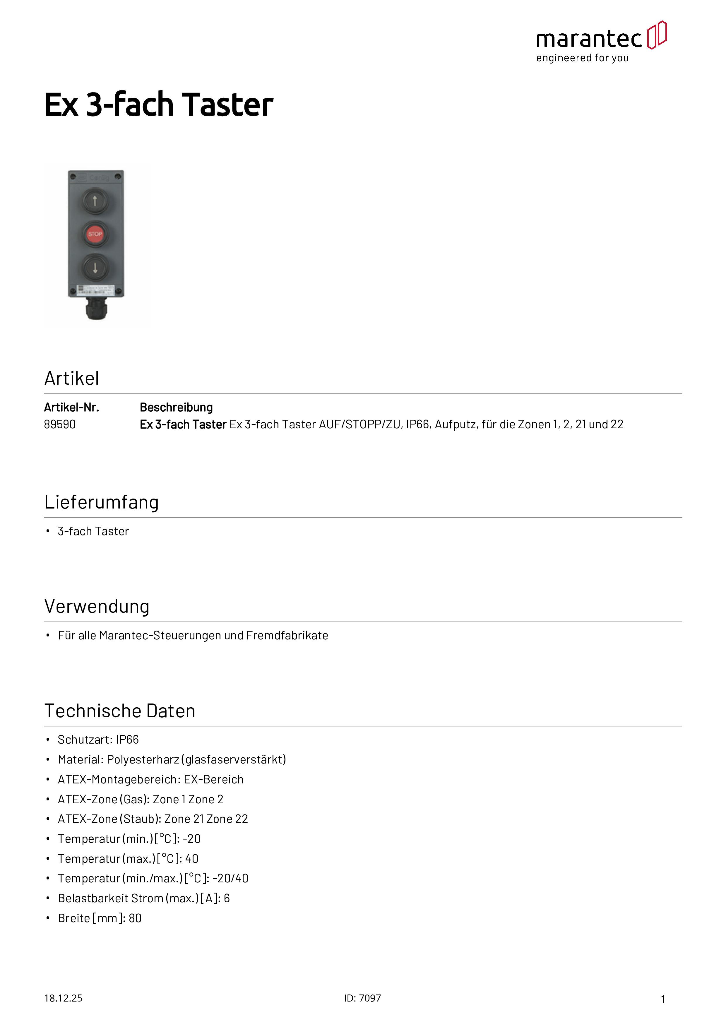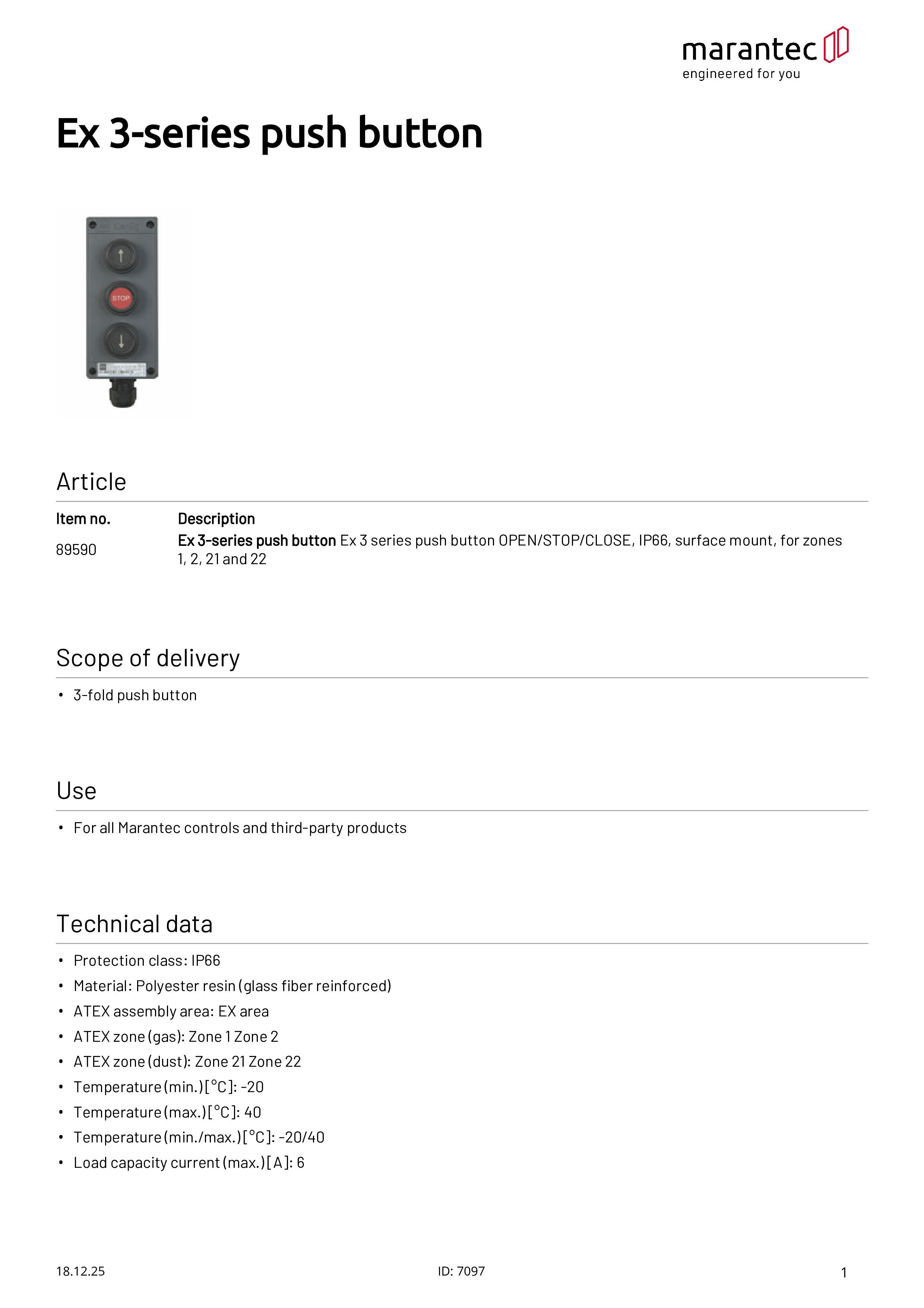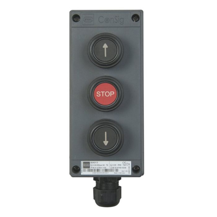 Bouton-poussoir triple Ex OUVERT/STOP/FERMÉ, IP66, en saillie, pour zone 1/ 2/21/22
