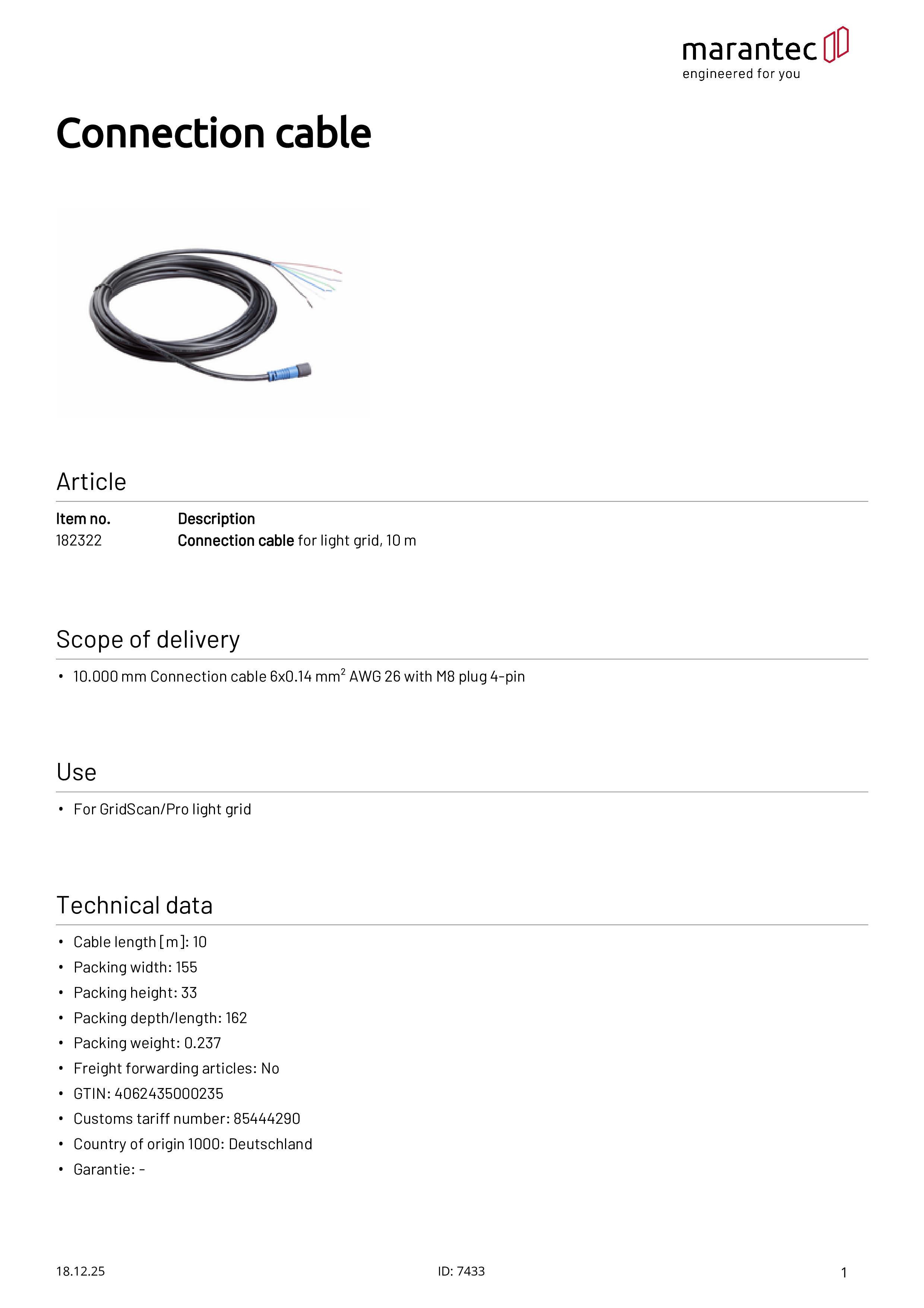 - 10.000 mm Câble de raccordement 6x0,14 mm² AWG 26 avec connecteur M8 à 4 pôles