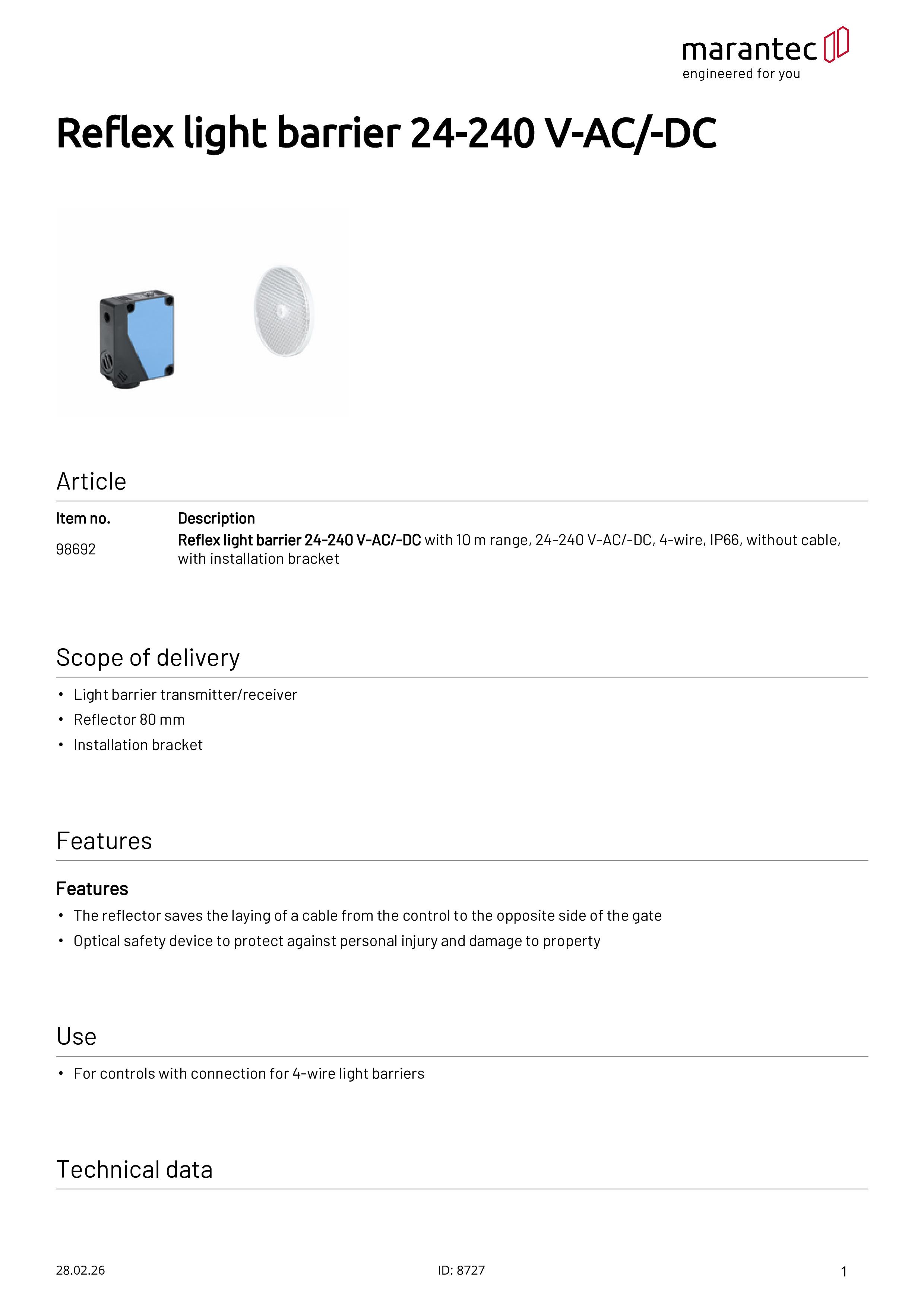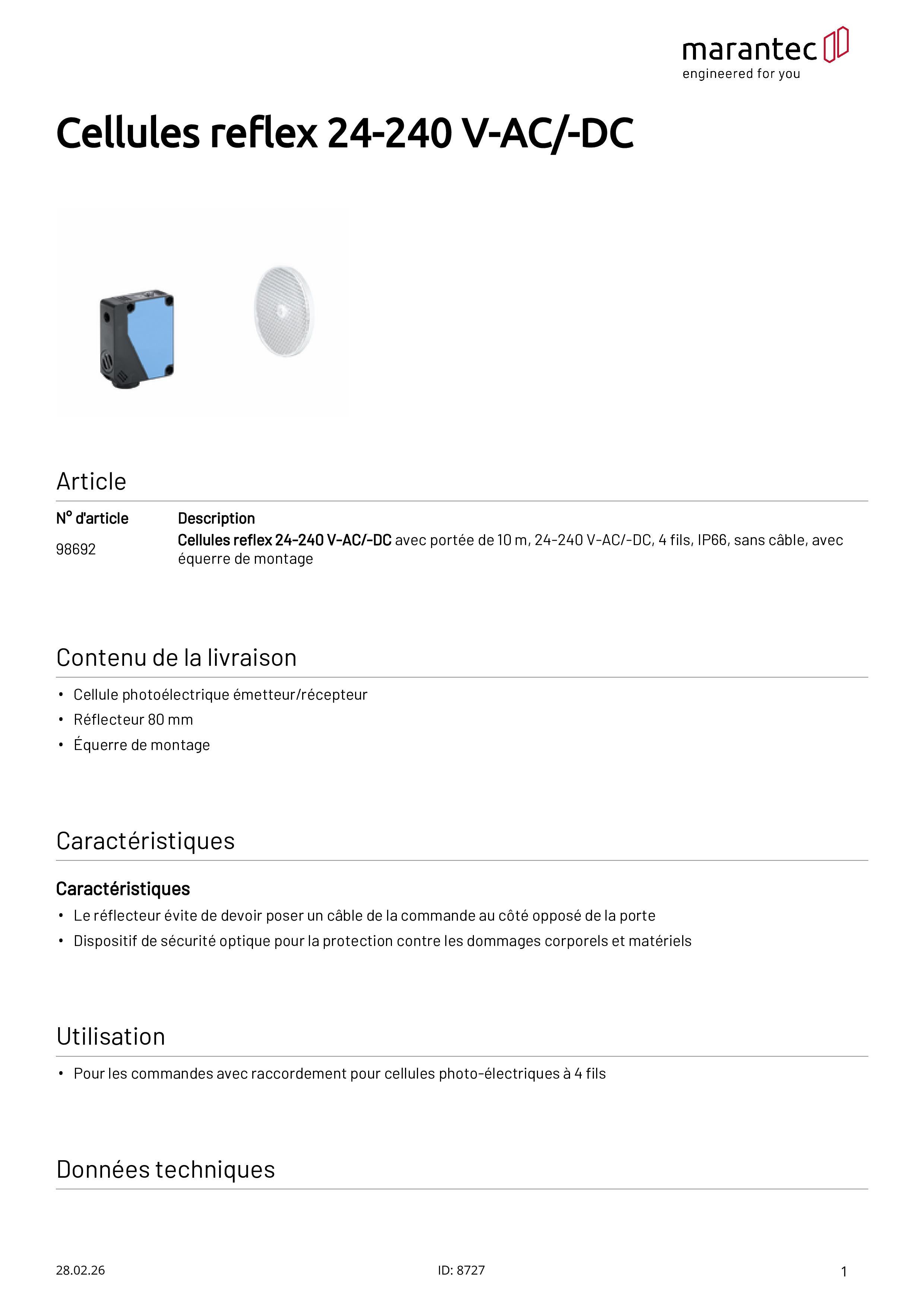 - Le réflecteur évite de devoir poser un câble de la commande au côté opposé de la porte