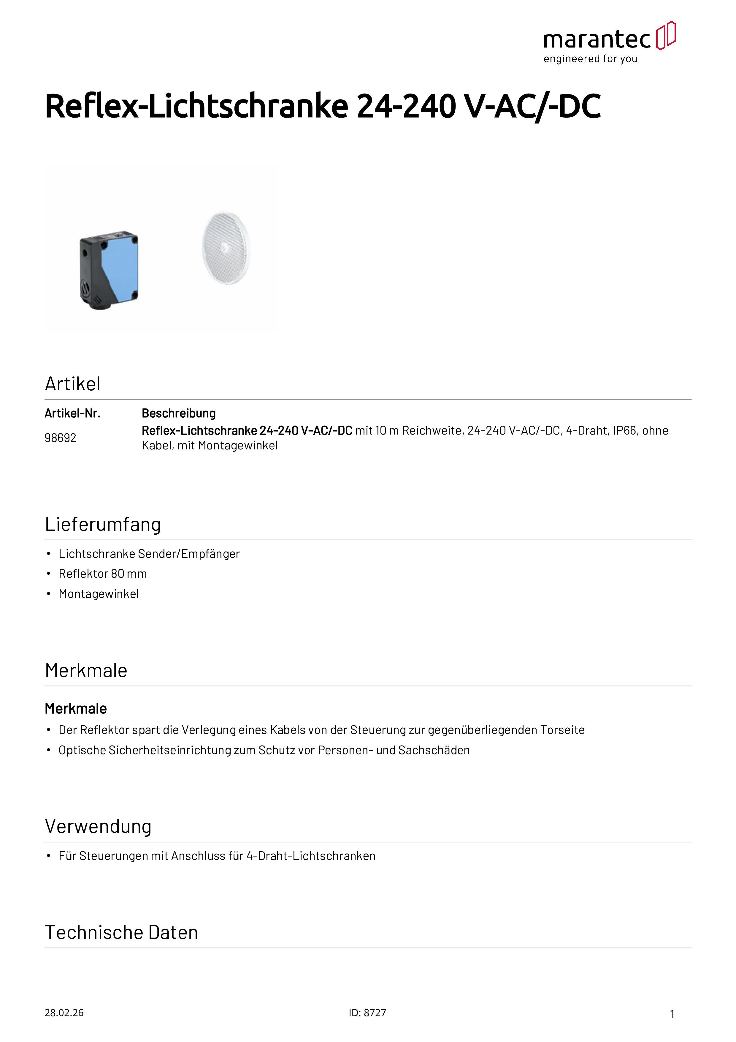 Cellule photoélectrique Reflex 24-240 V-AC/-DC, portée 10 m avec équerre de montage