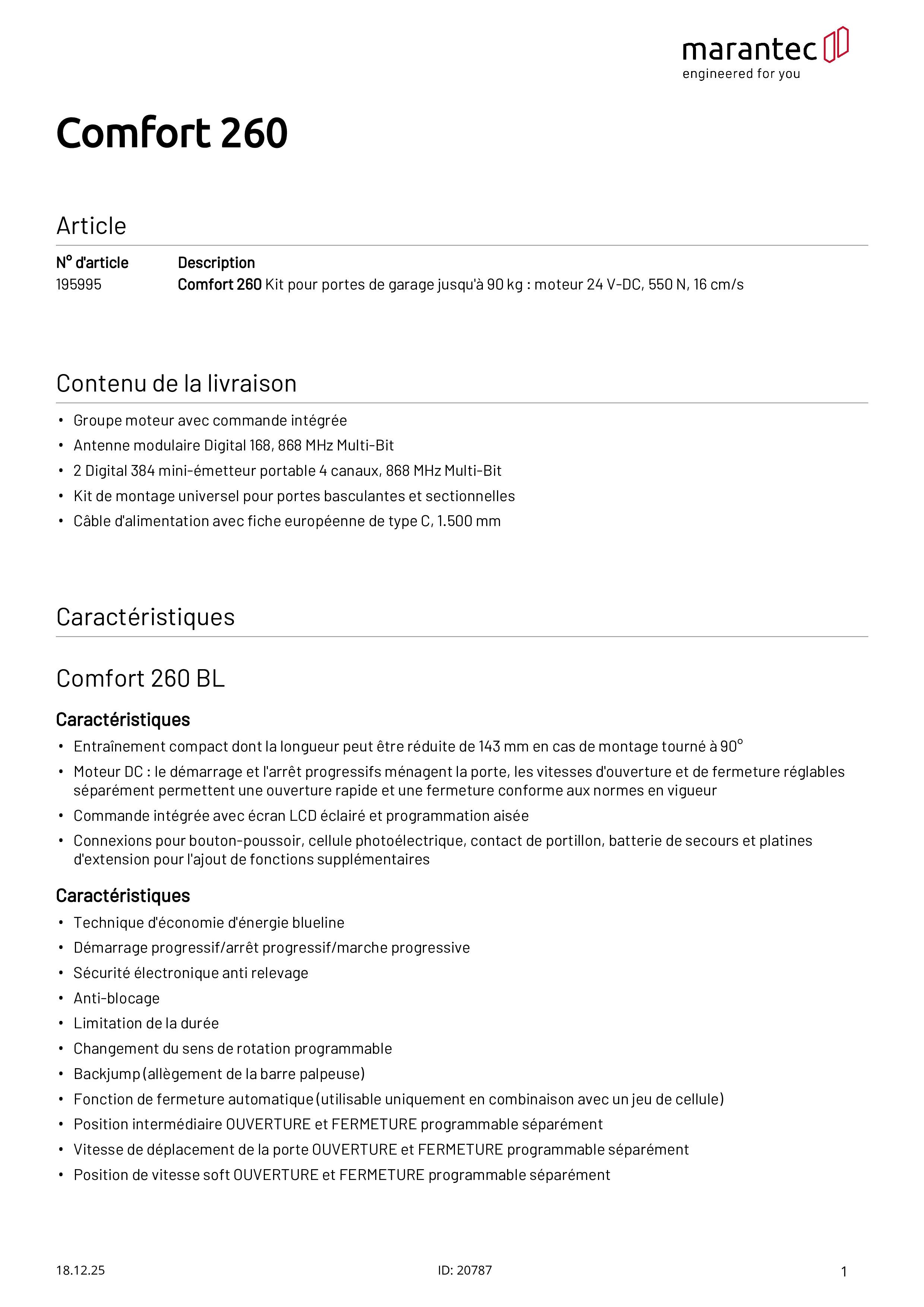 Comfort 260 Moteurs de portes de garage 868 MHz Multi-Bit