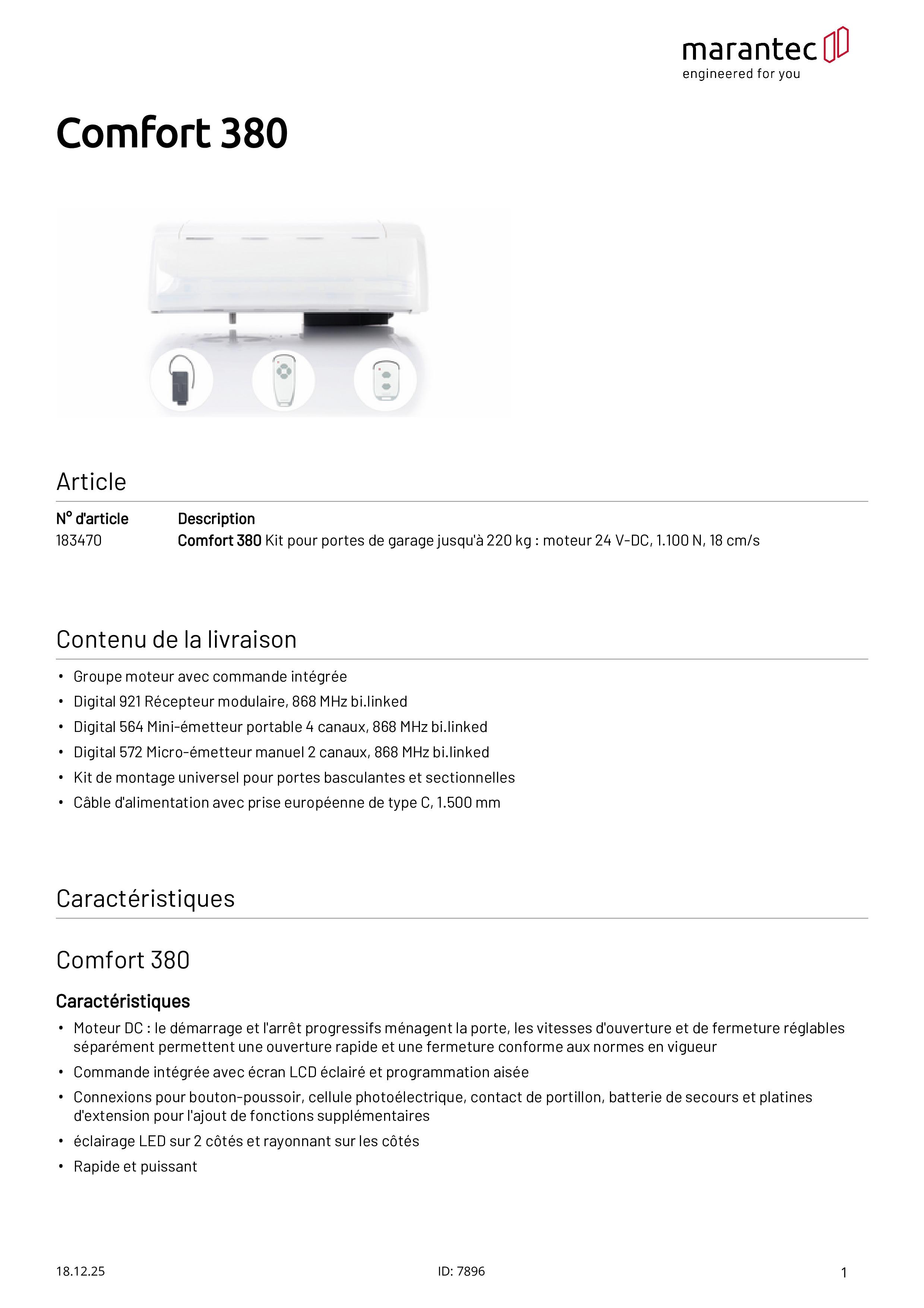 Comfort 380 Motorisation de portes de garage 868 MHz bi∙linked