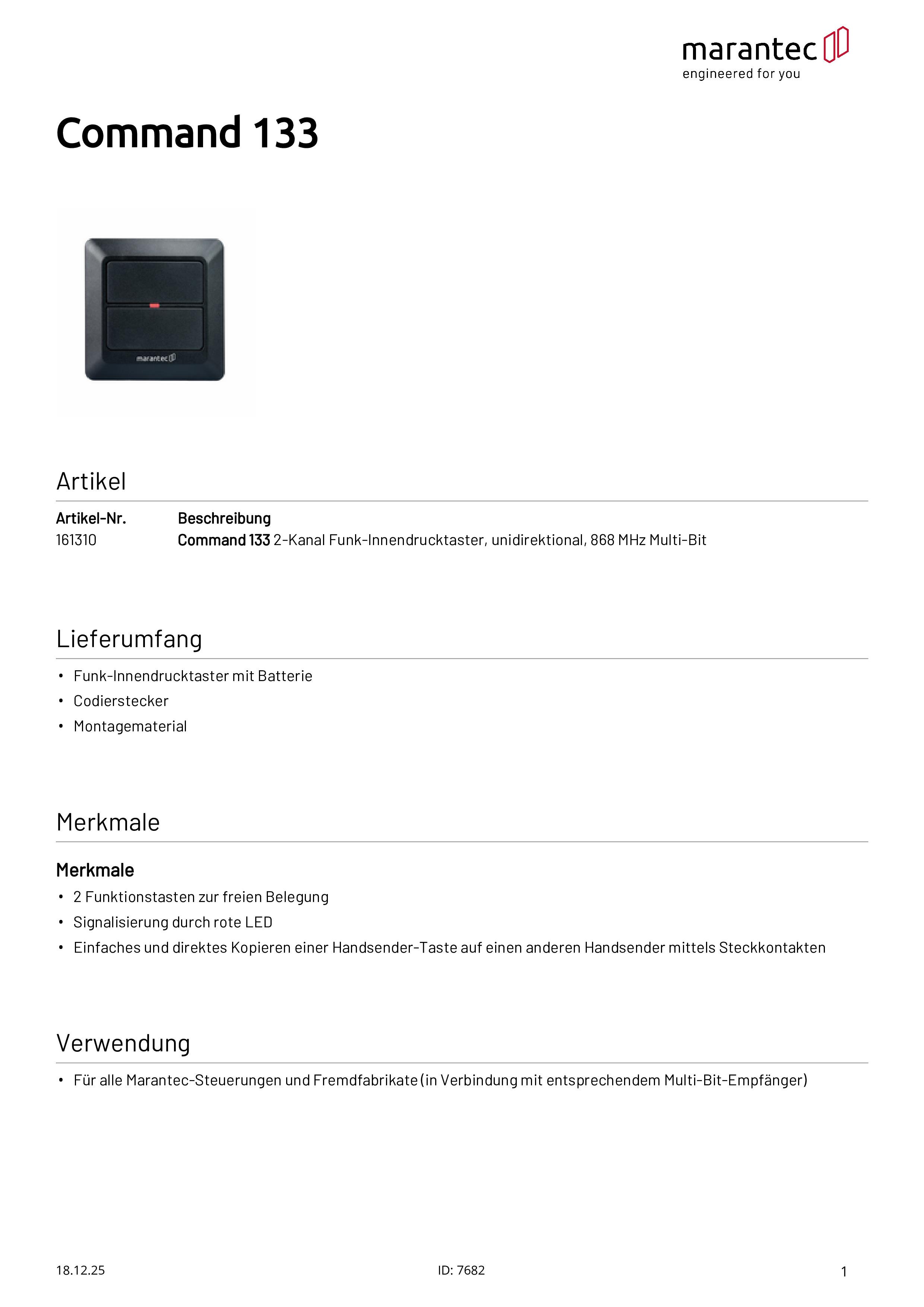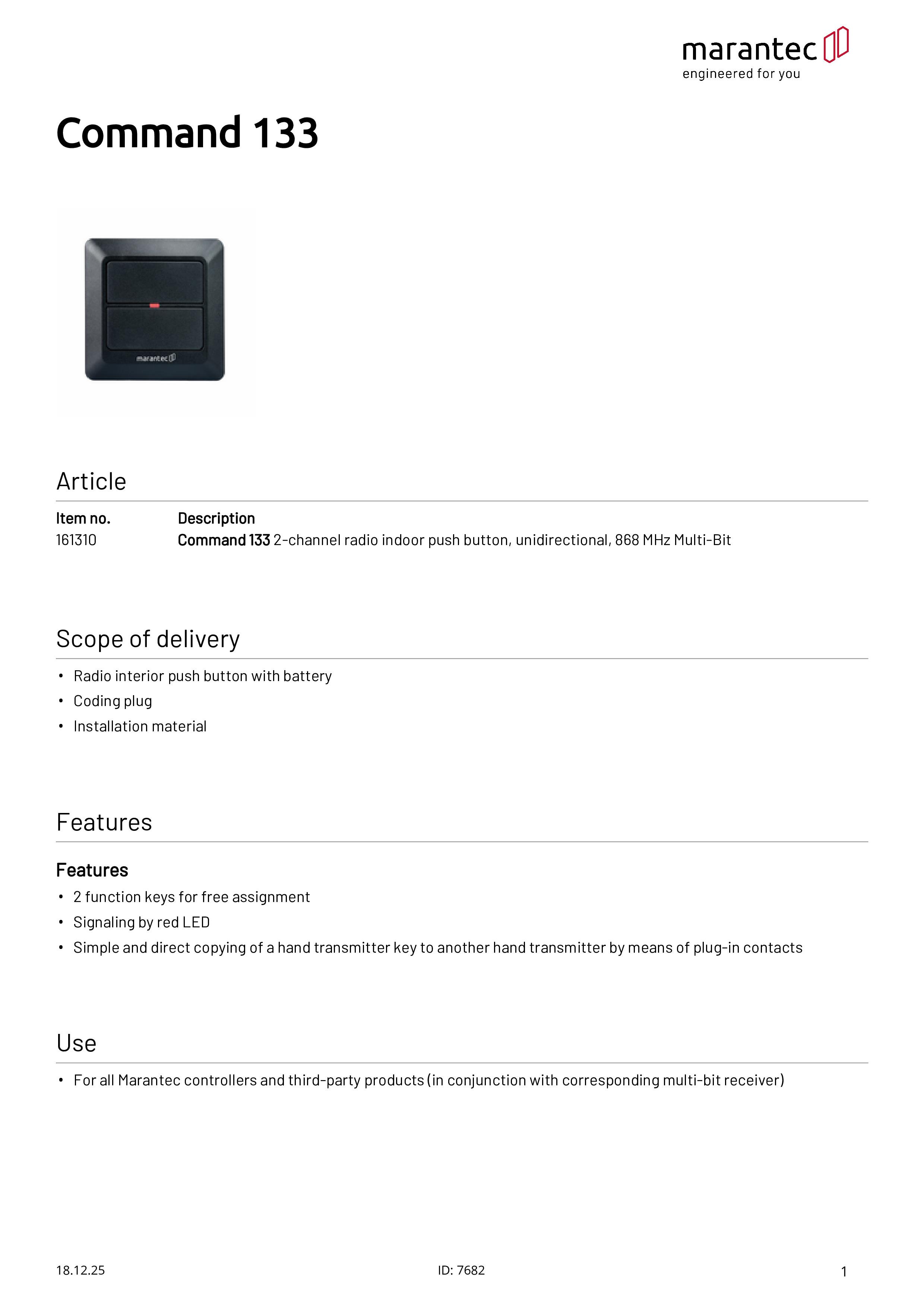 Command 133 Bouton-poussoir radio d'intérieur à 2 canaux, 868 MHz multi-bit