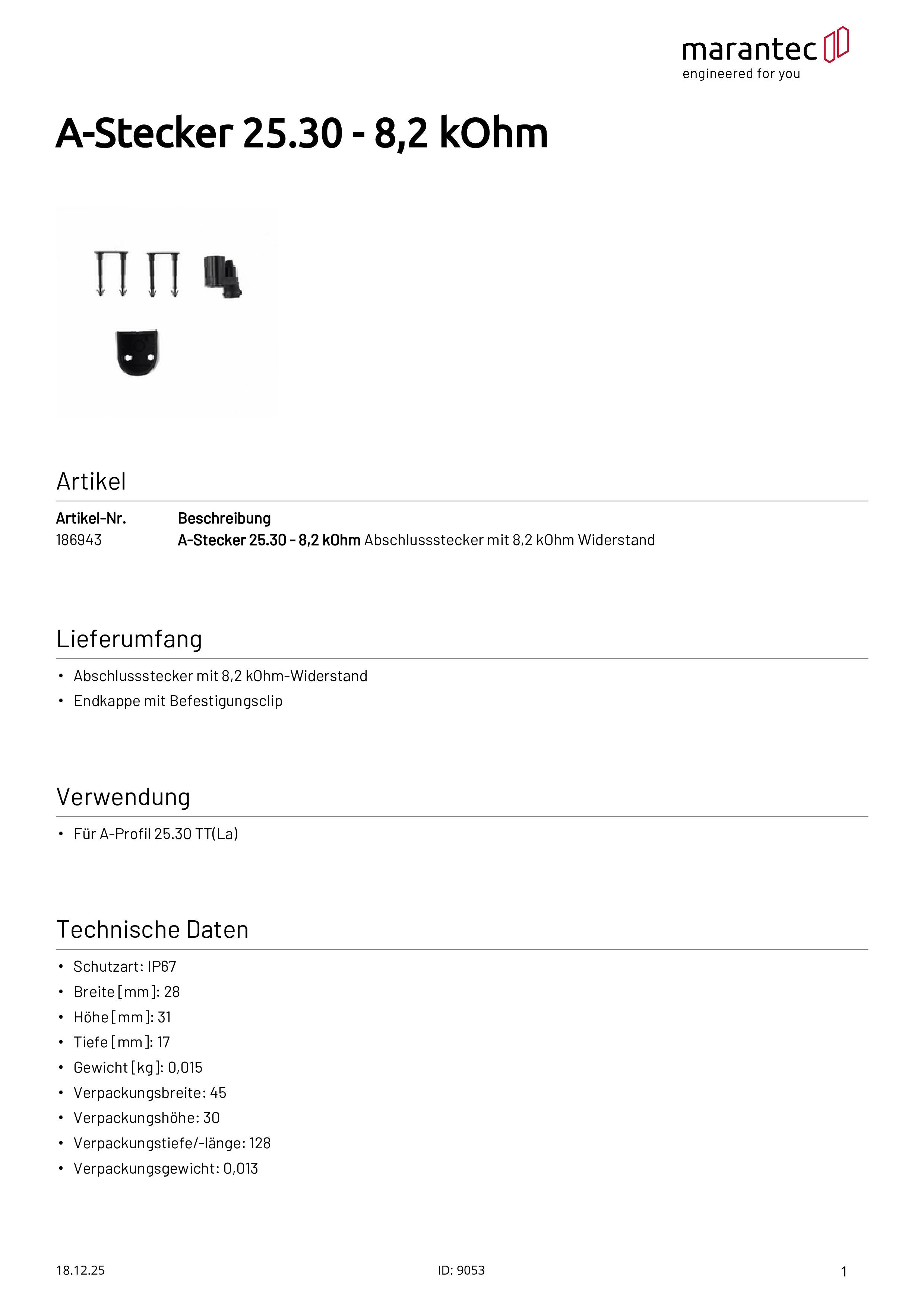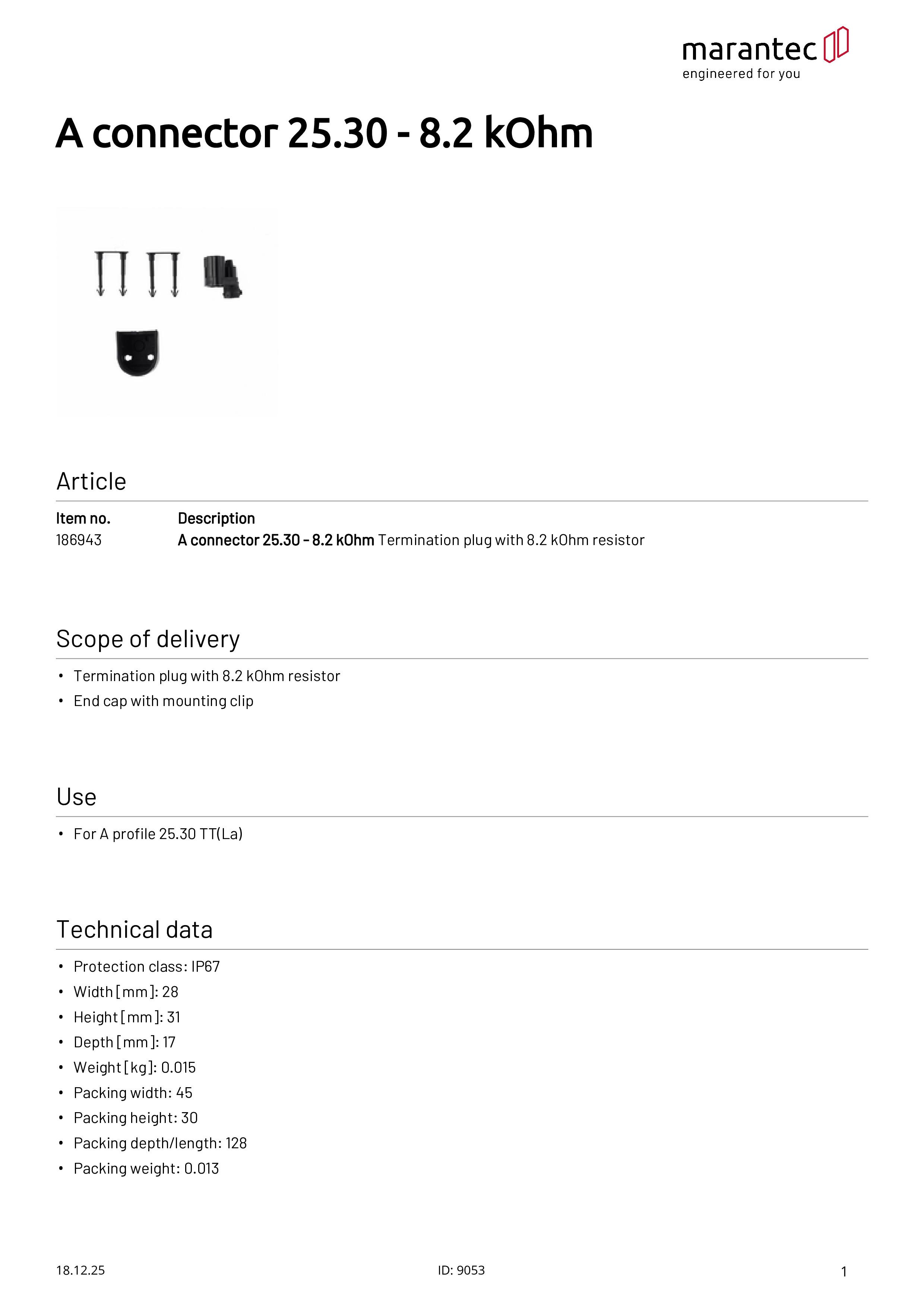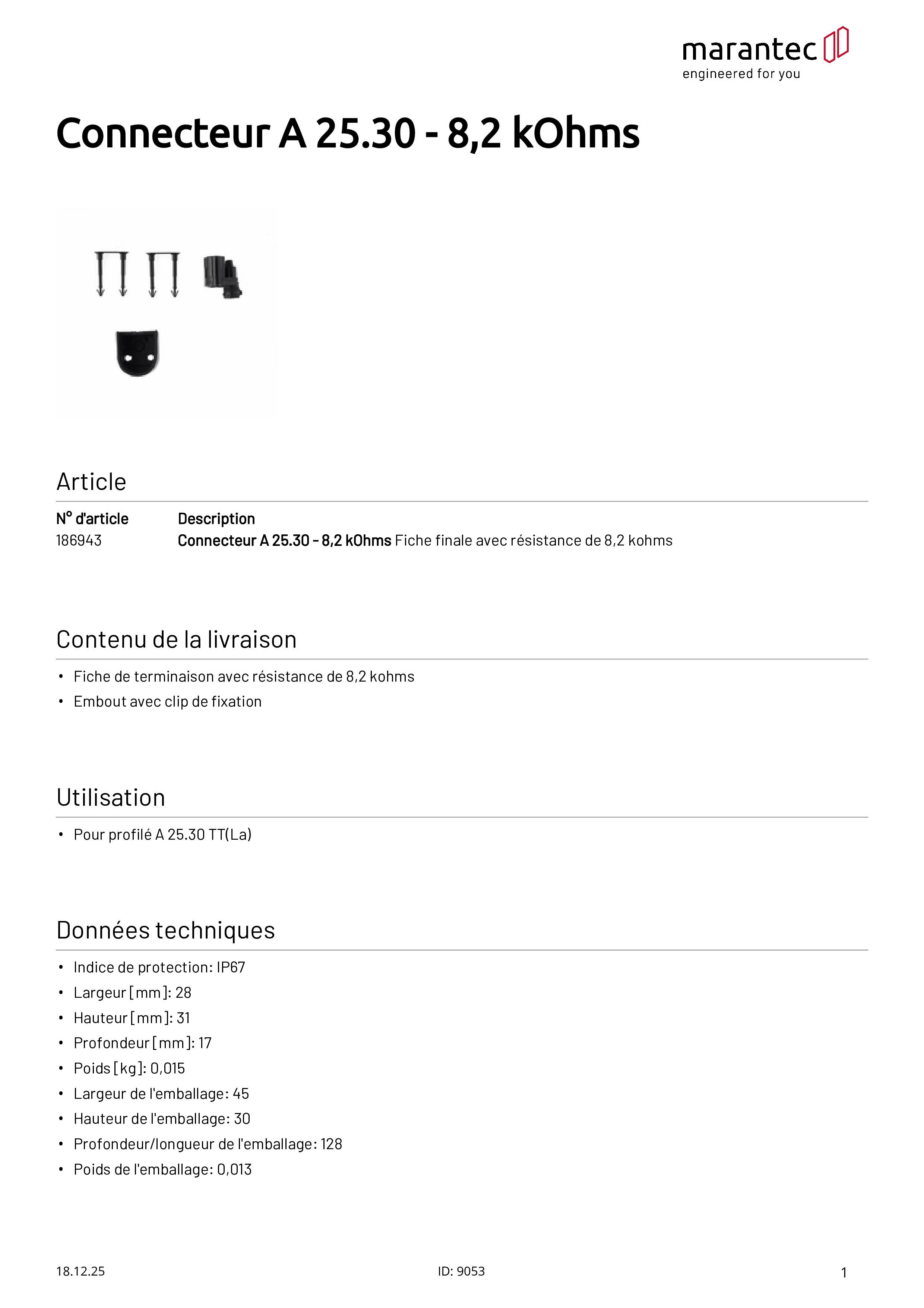 Connecteur A 25.30 - 8,2 kOhm Connecteur de terminaison avec résistance 8,2 kOhm