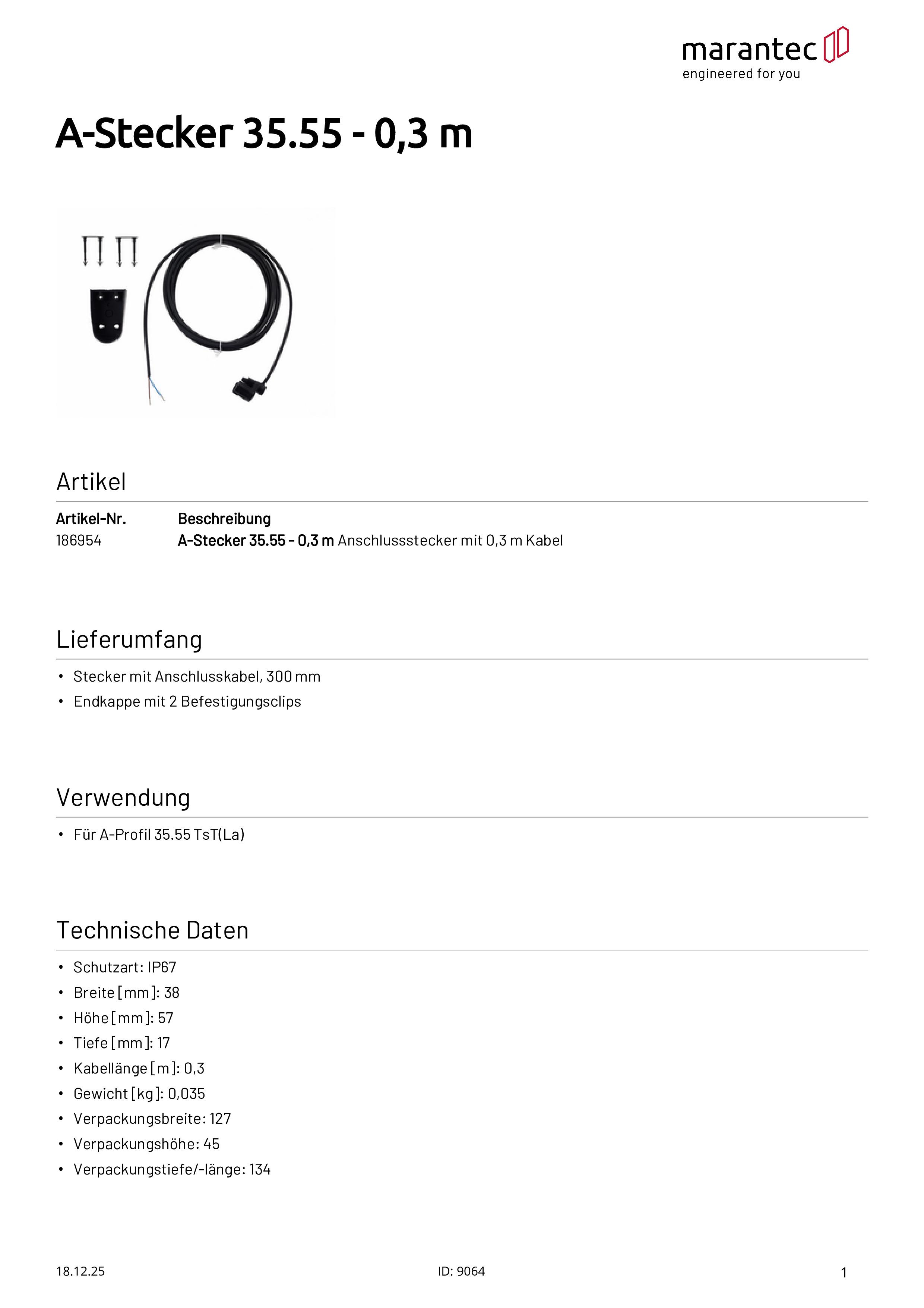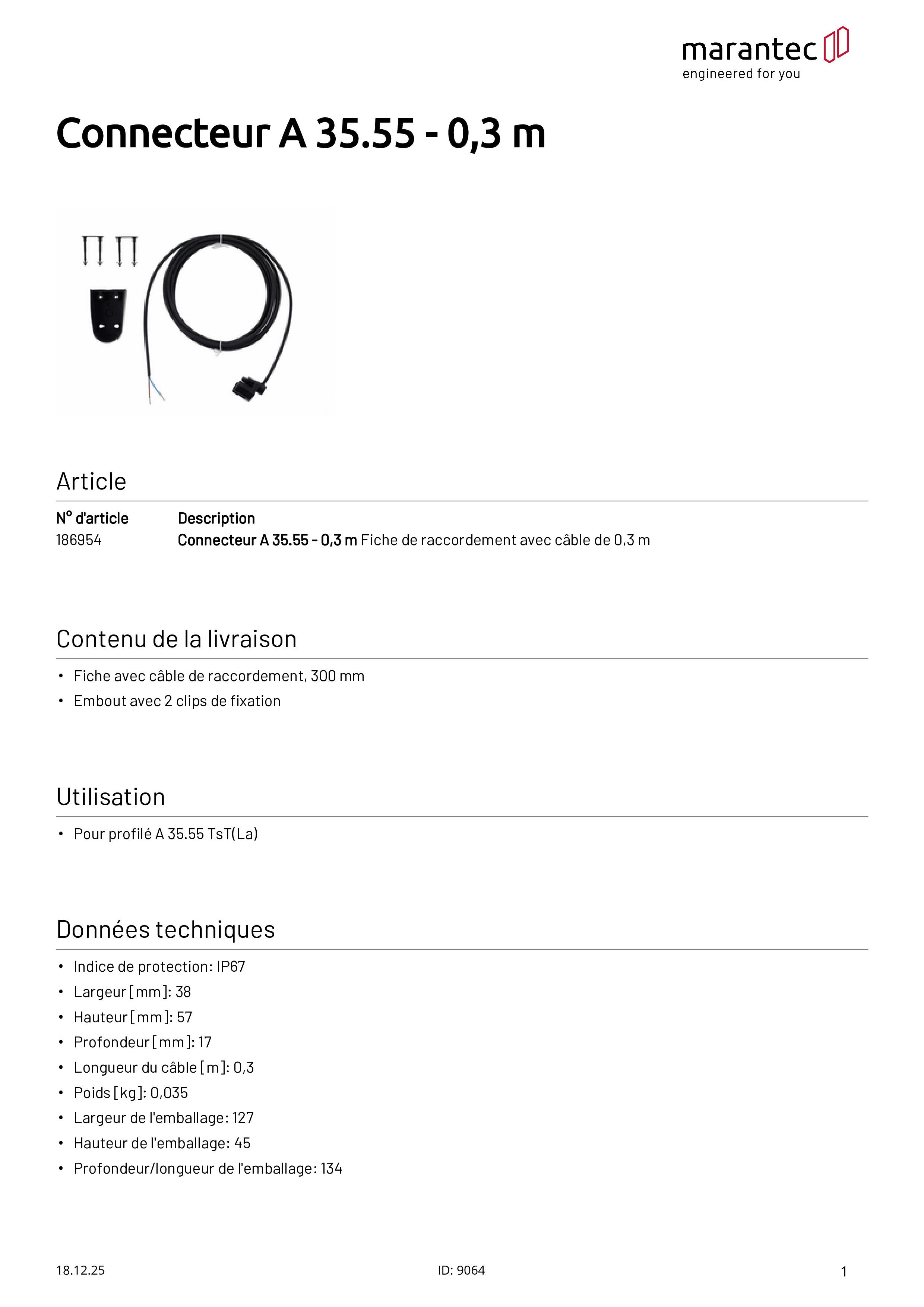 Connecteur A 35.55 - 0,3 m Connecteur avec câble de 0,3 m