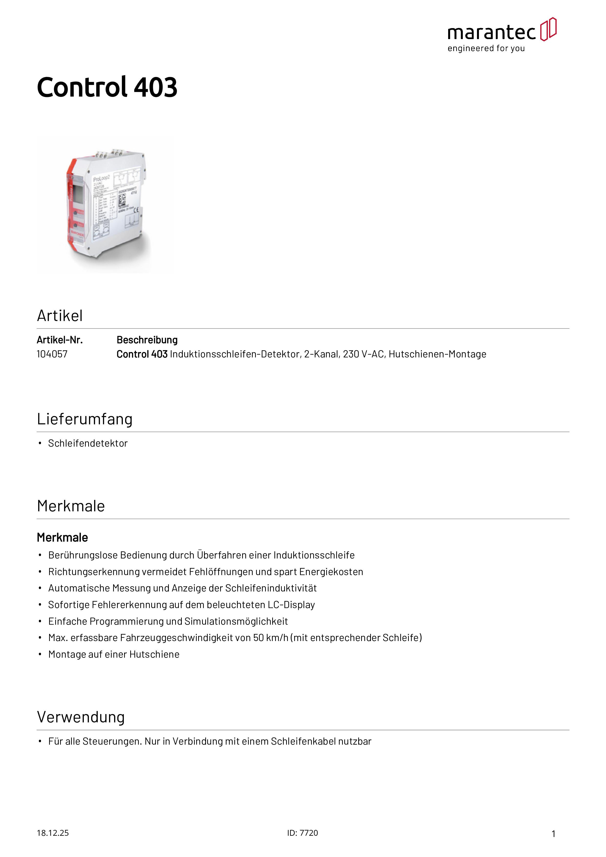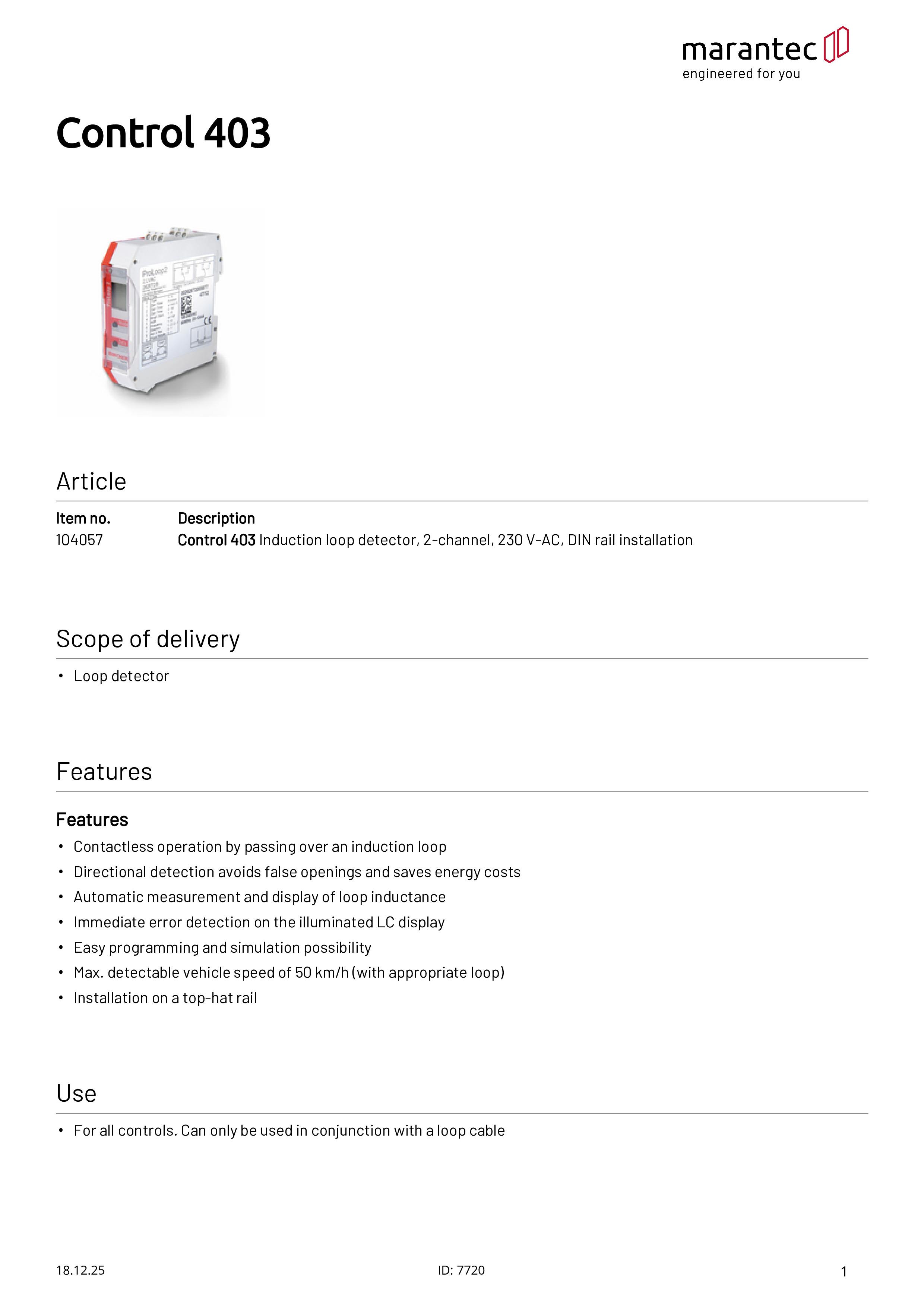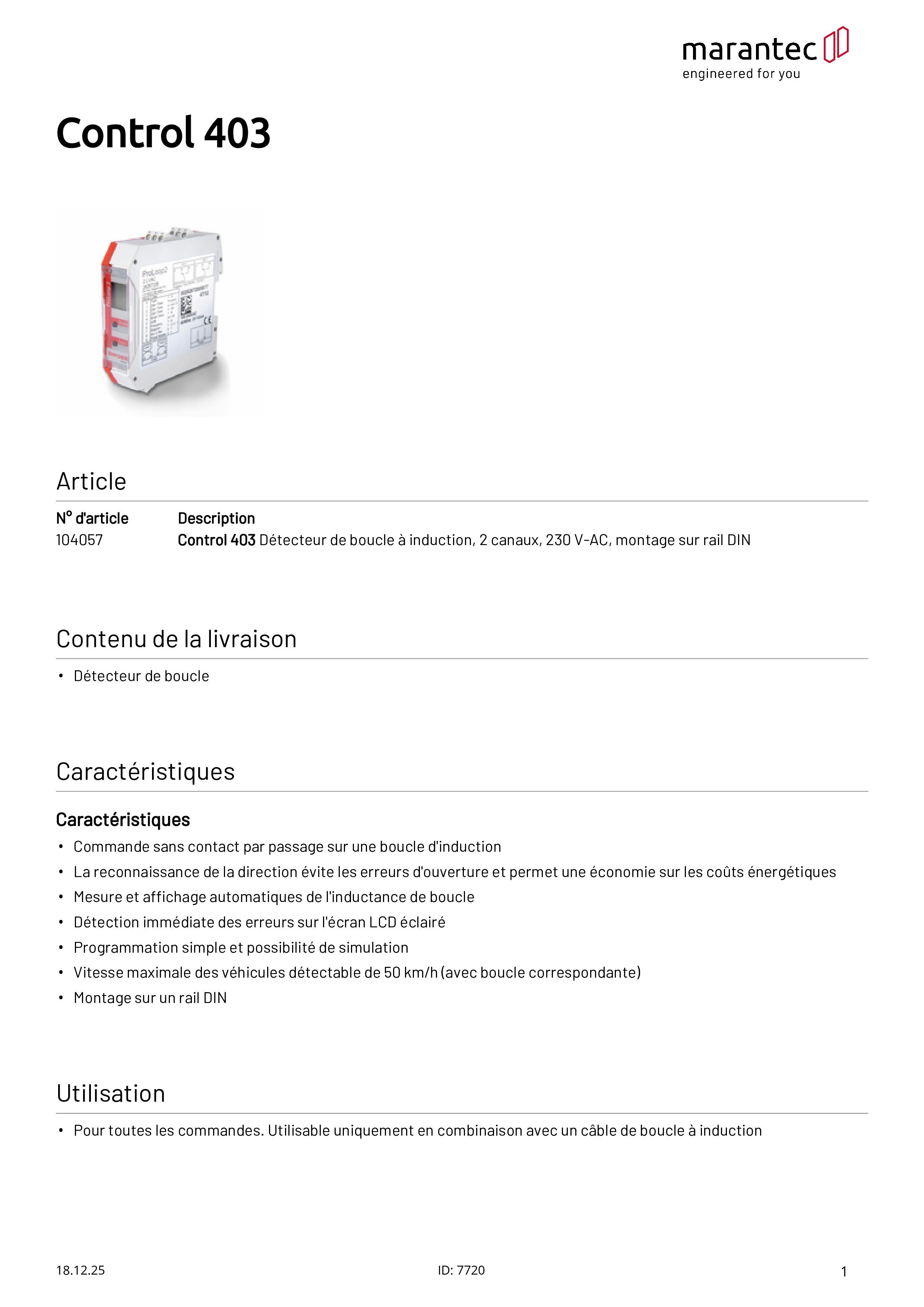 Control 403 Détecteur de boucle d'induction, 2 canaux, 230 V-AC