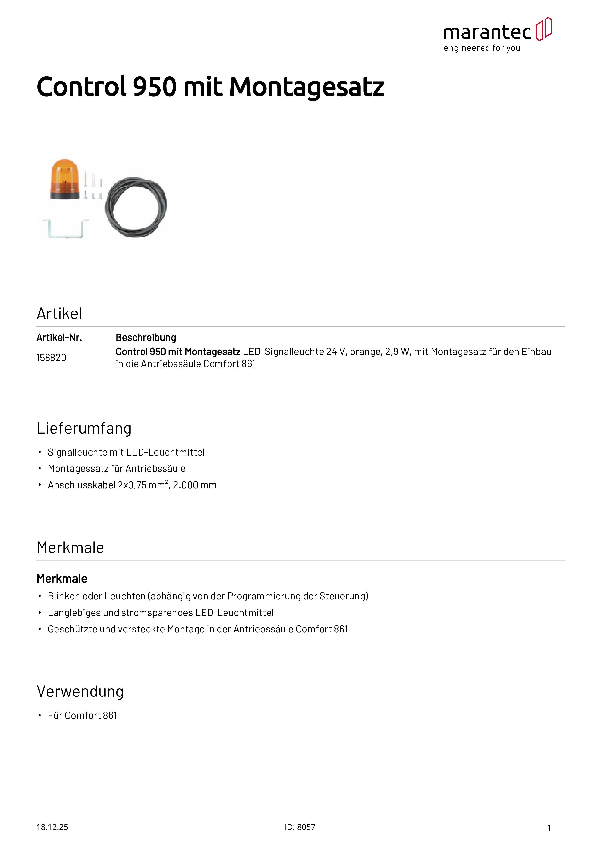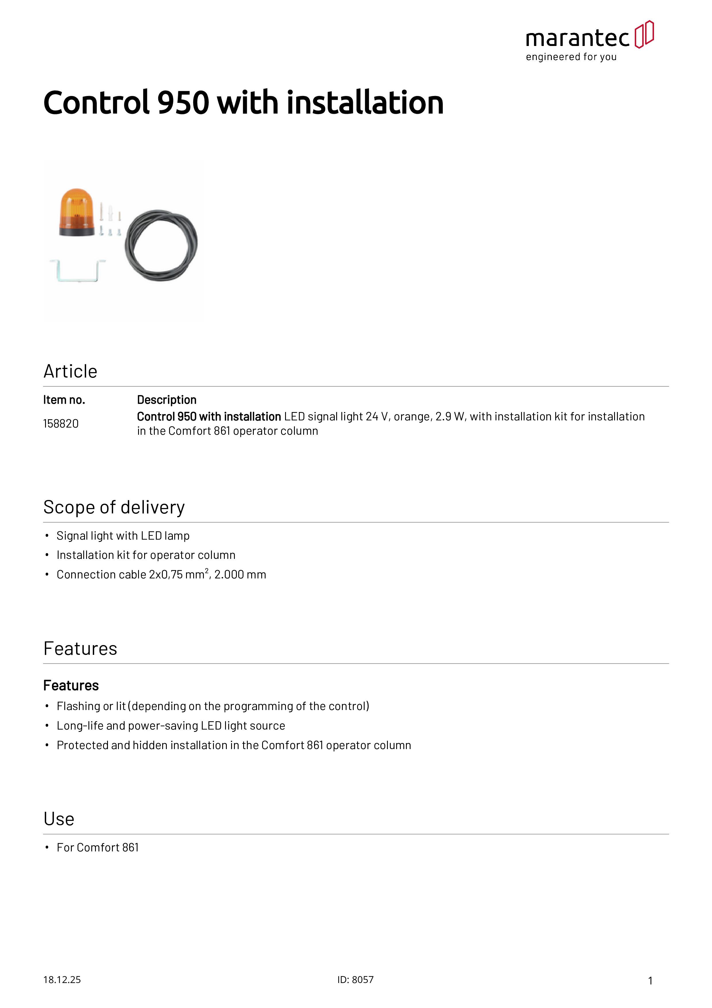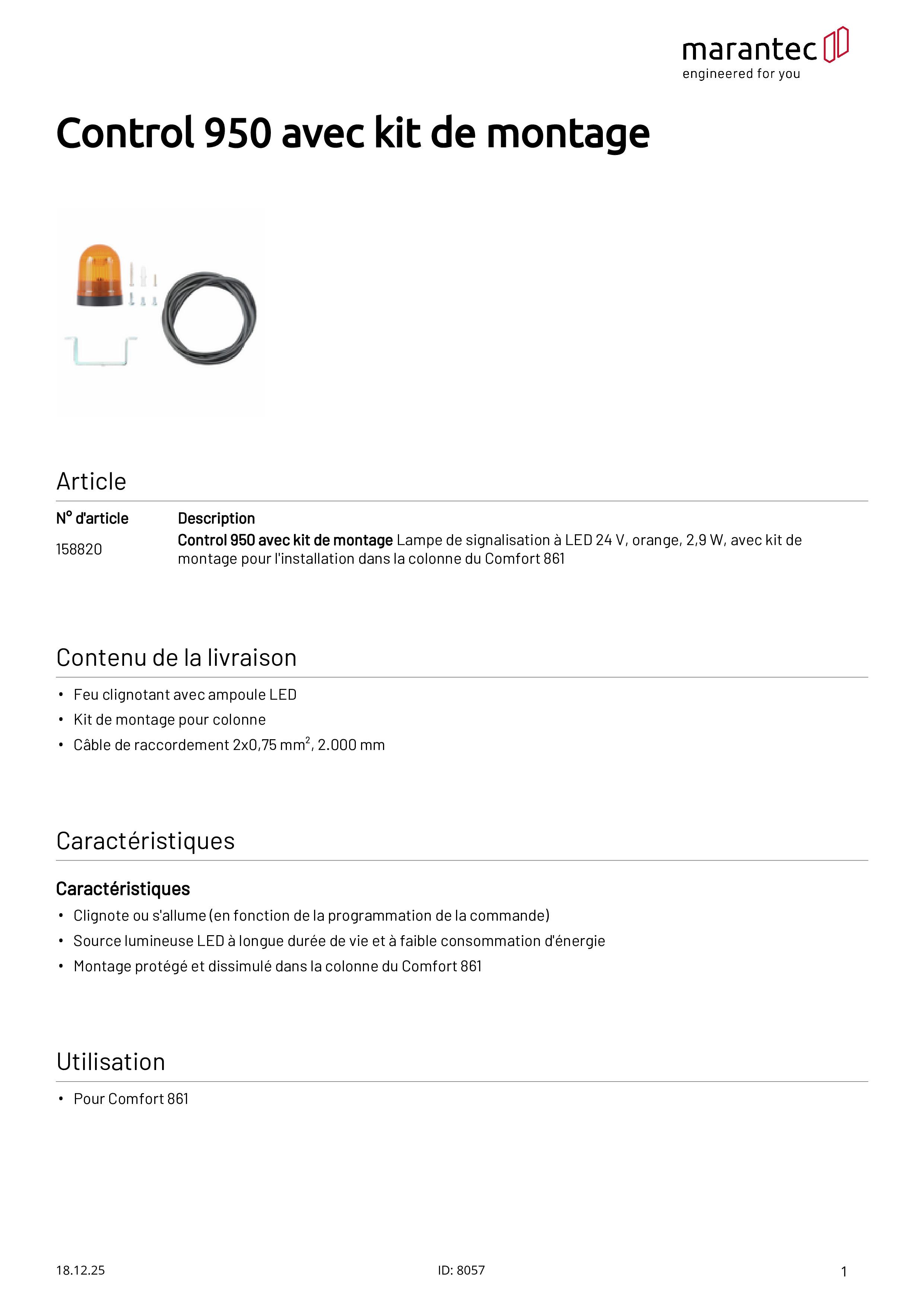 Control 950 Lampe de signalisation LED 24 V orange, 2,9 W pour Comfort 861