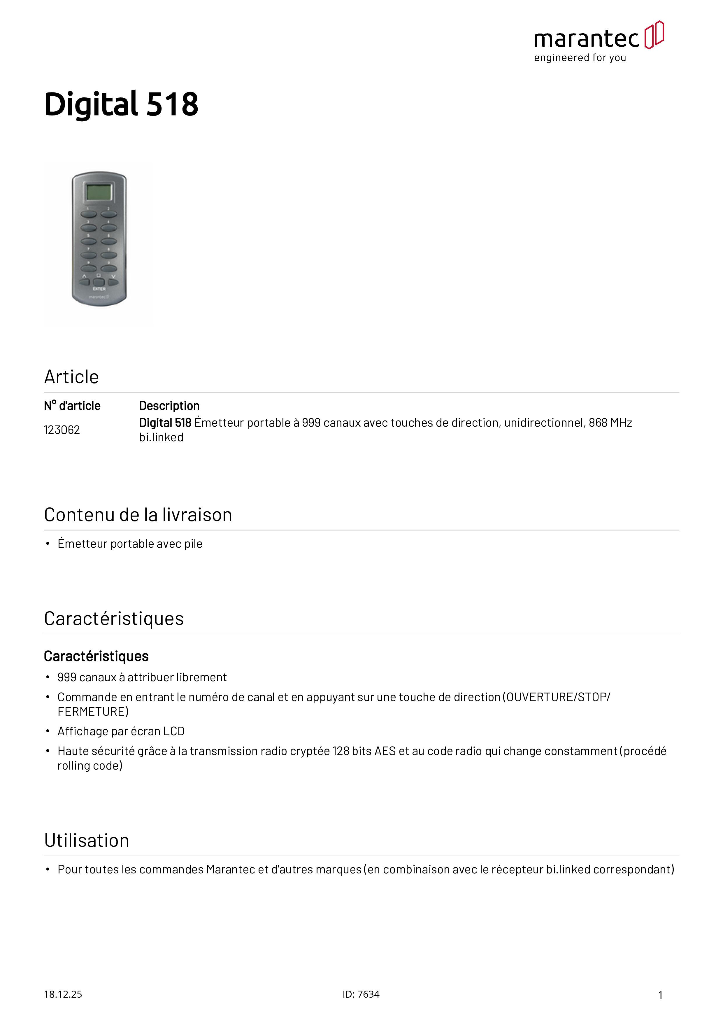 Digital 518 Télécommande 999 canaux 868 MHz bi.linked