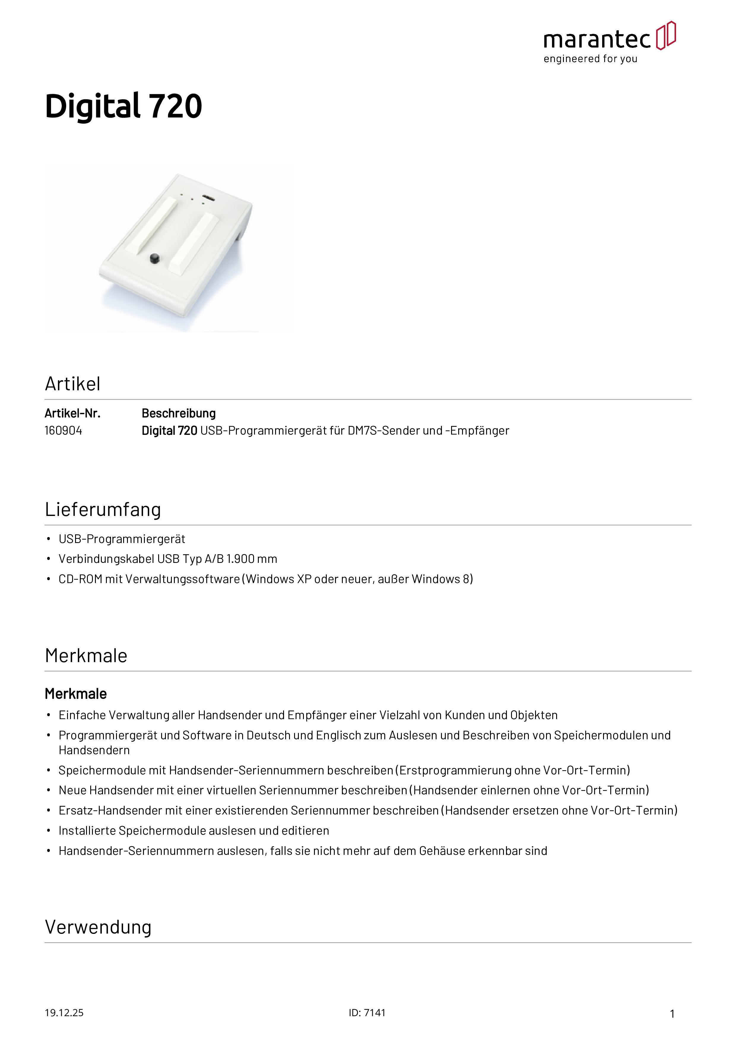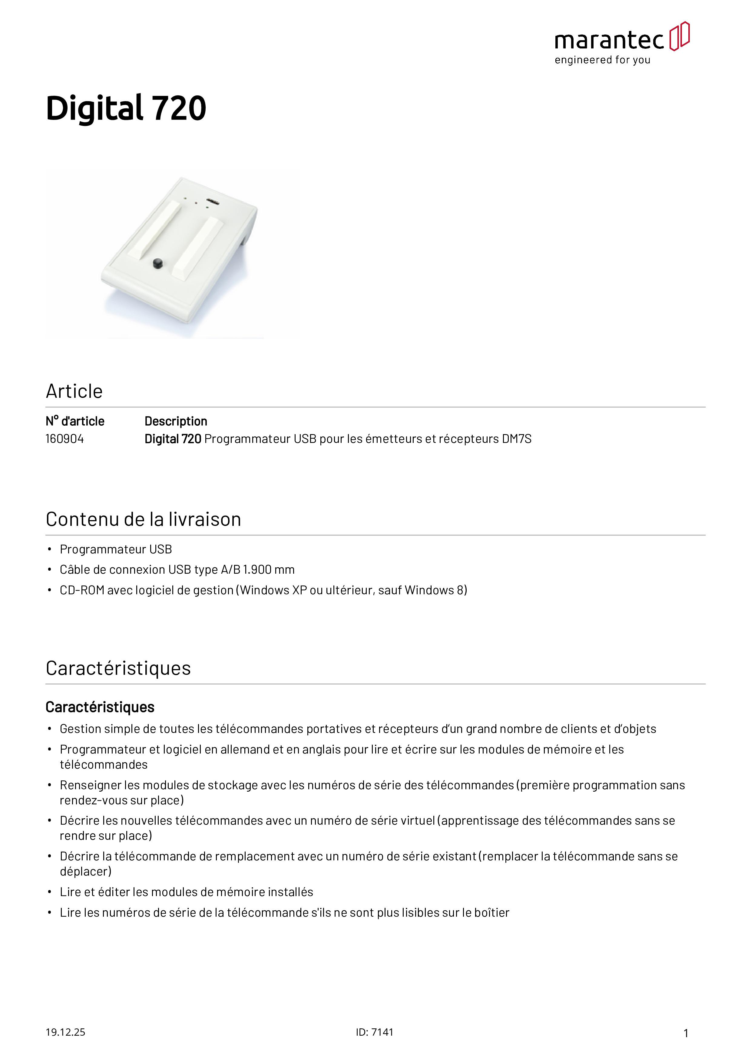 Digital 720 Programmateur USB pour télécommandes et récepteurs DM7S