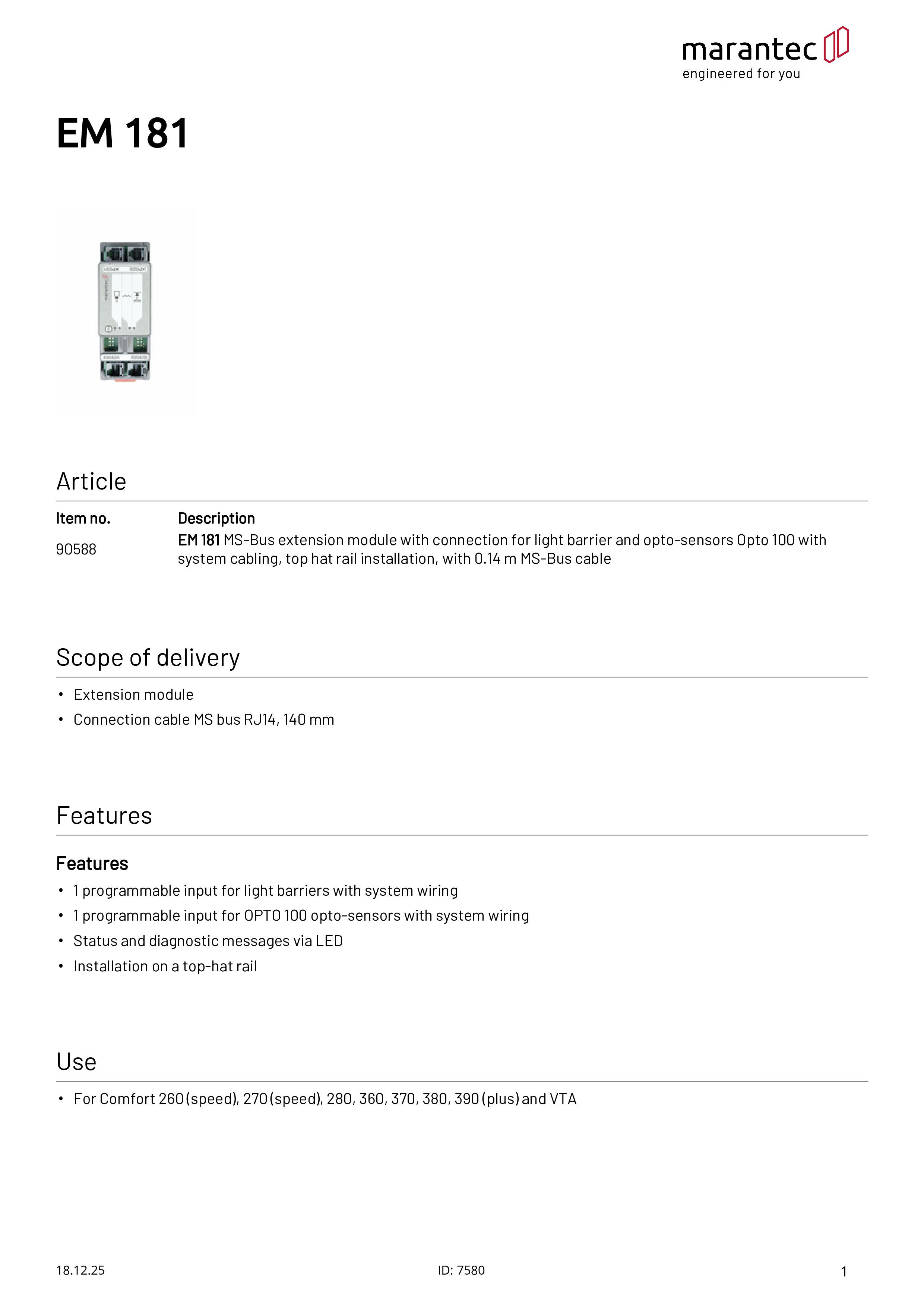 EM 181 Module d'extension pour cellule photoélectrique avec prise RJ et Opto 100