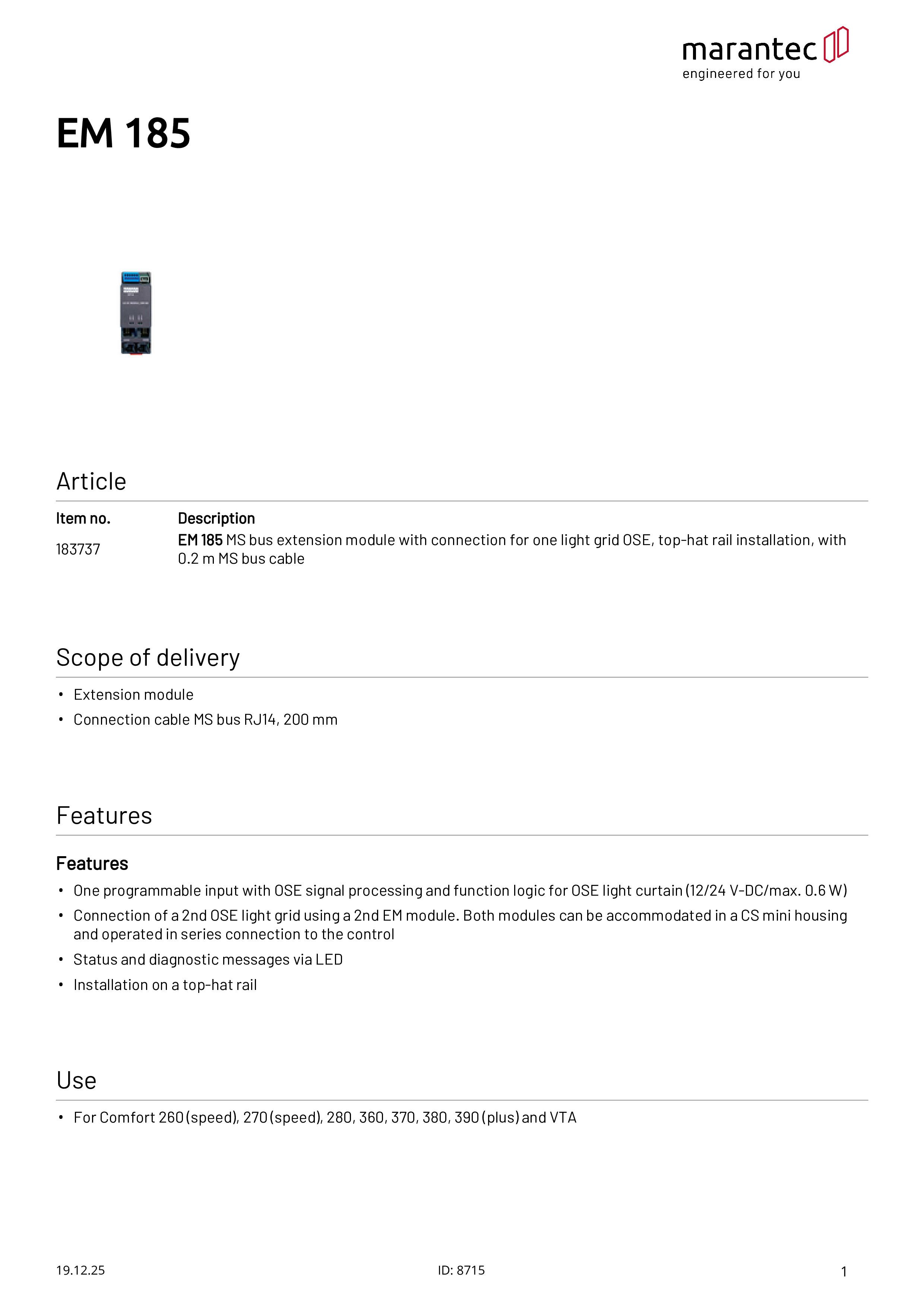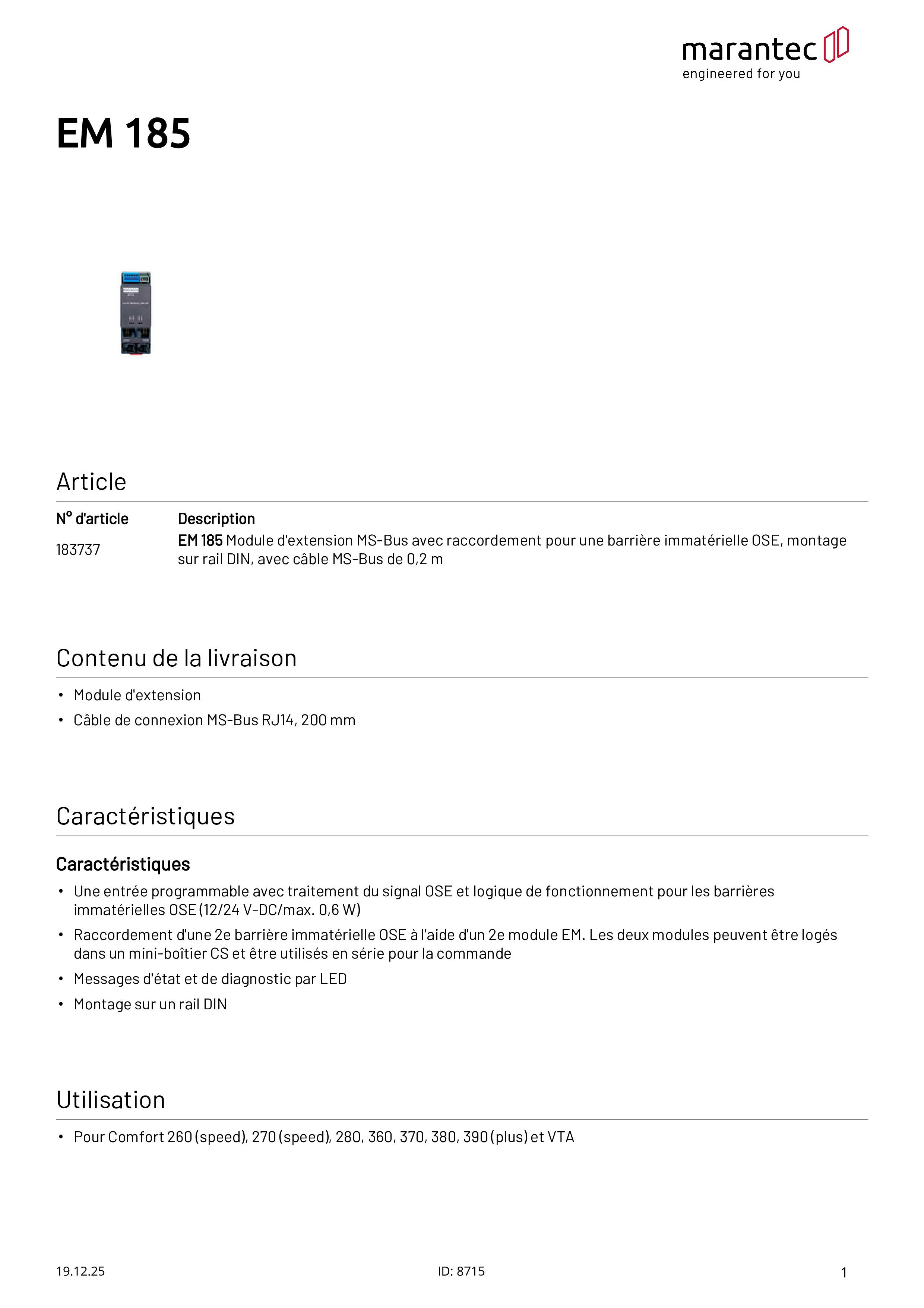 EM 185 Module d'extension pour une barrière immatérielle OSE