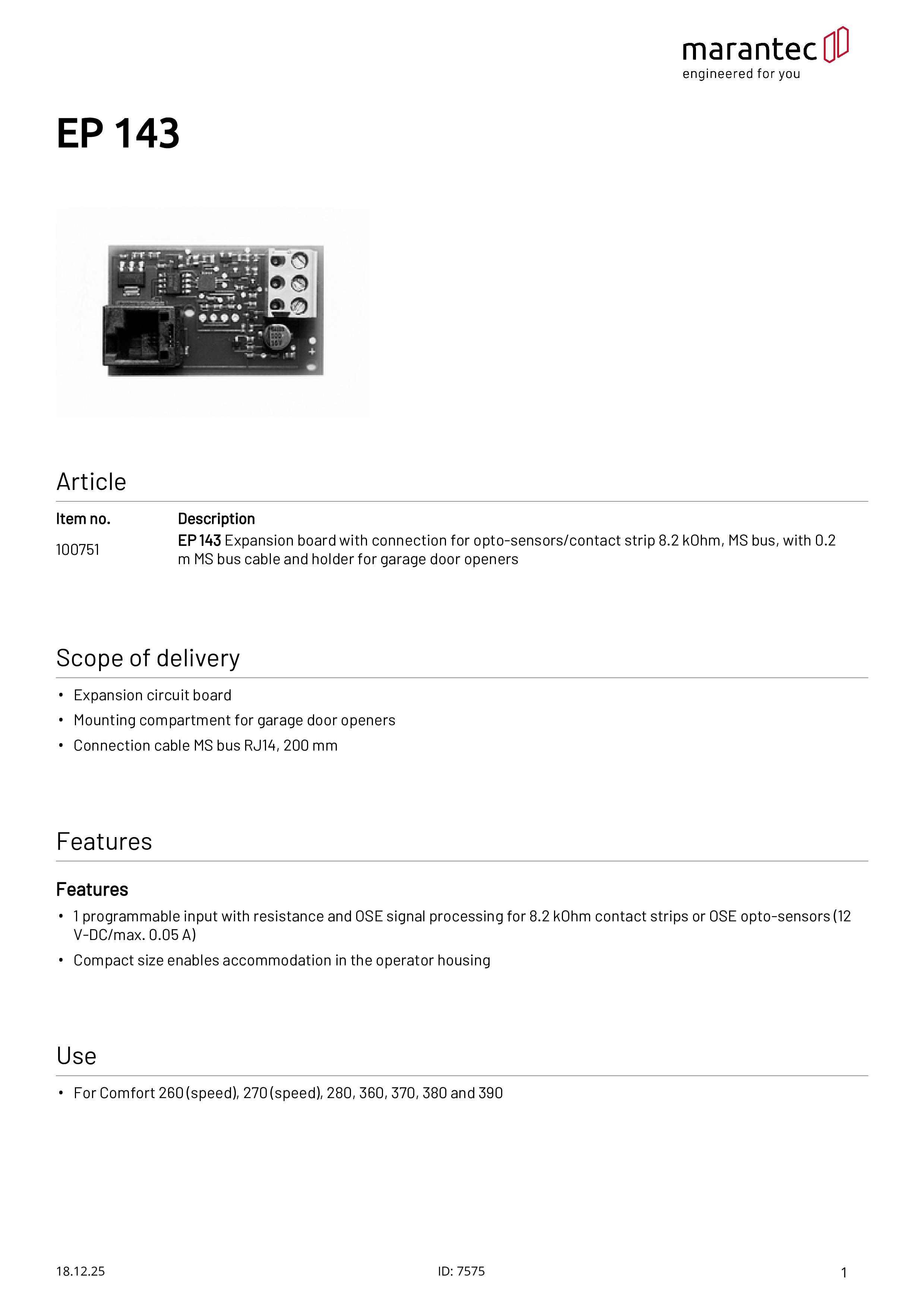 EP 143 Platine d'extension pour optosensor/barre palpeuse résistive