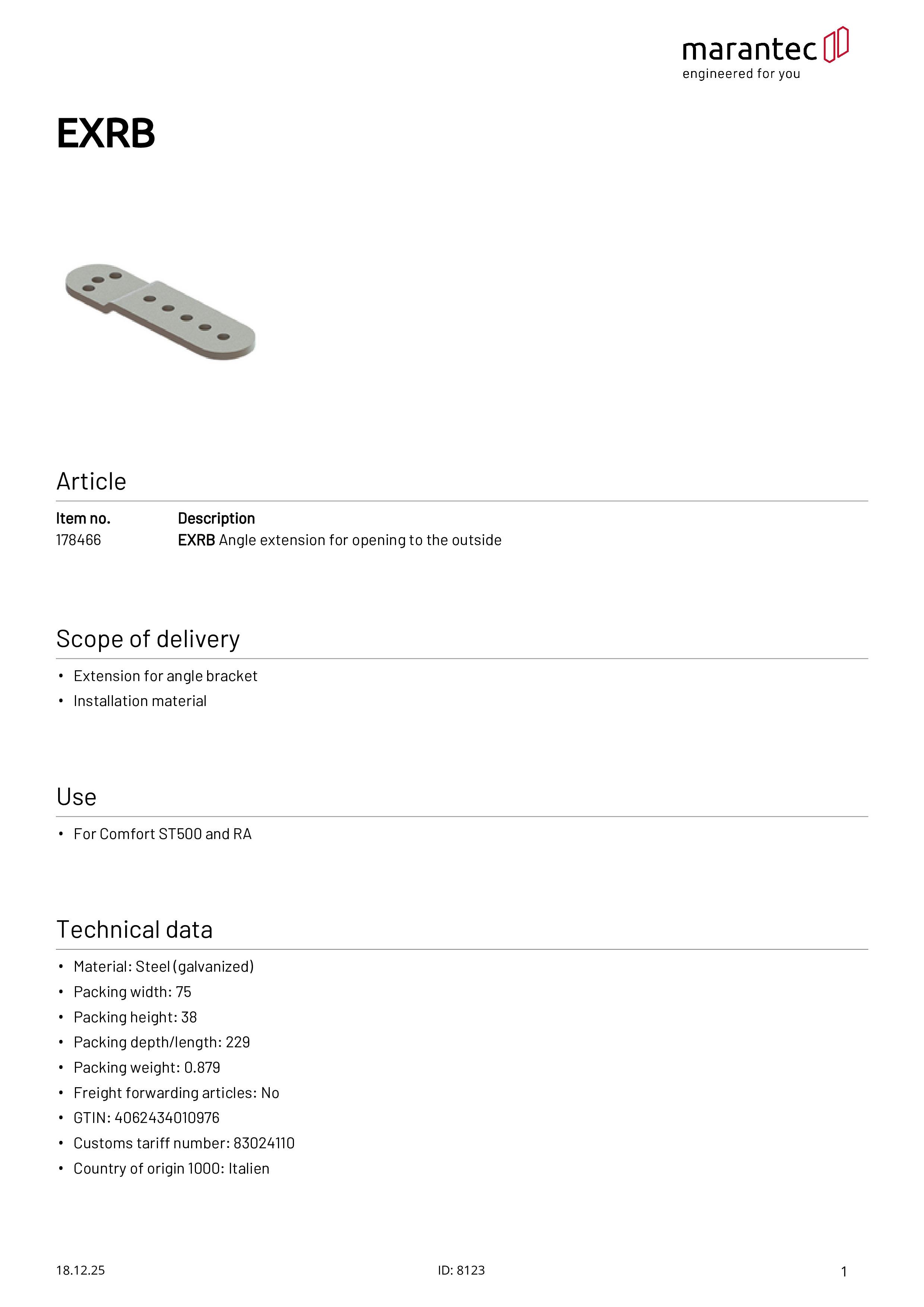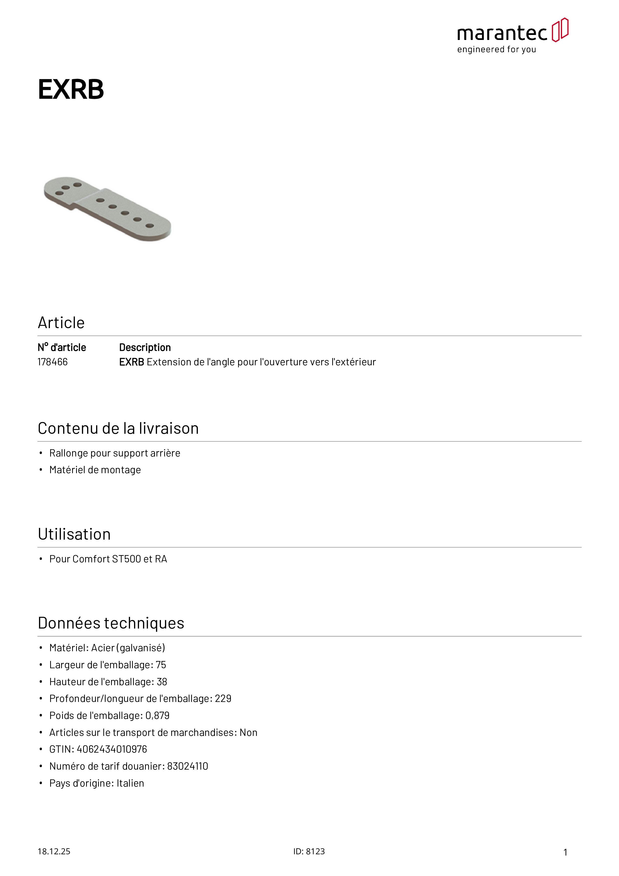EXRB Extension d'angle pour ouverture vers l'extérieur pour Comfort ST500/RA