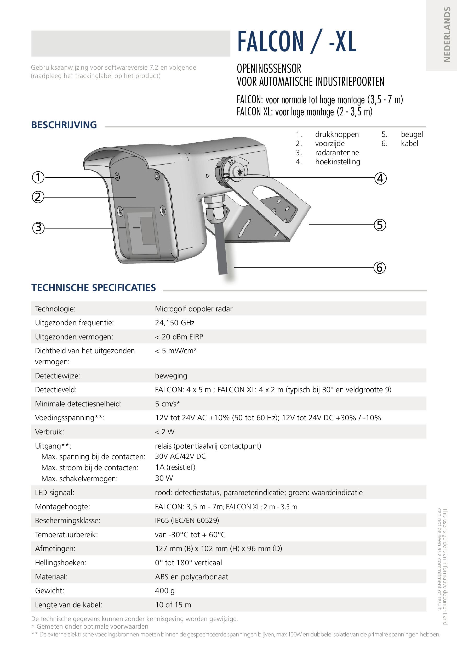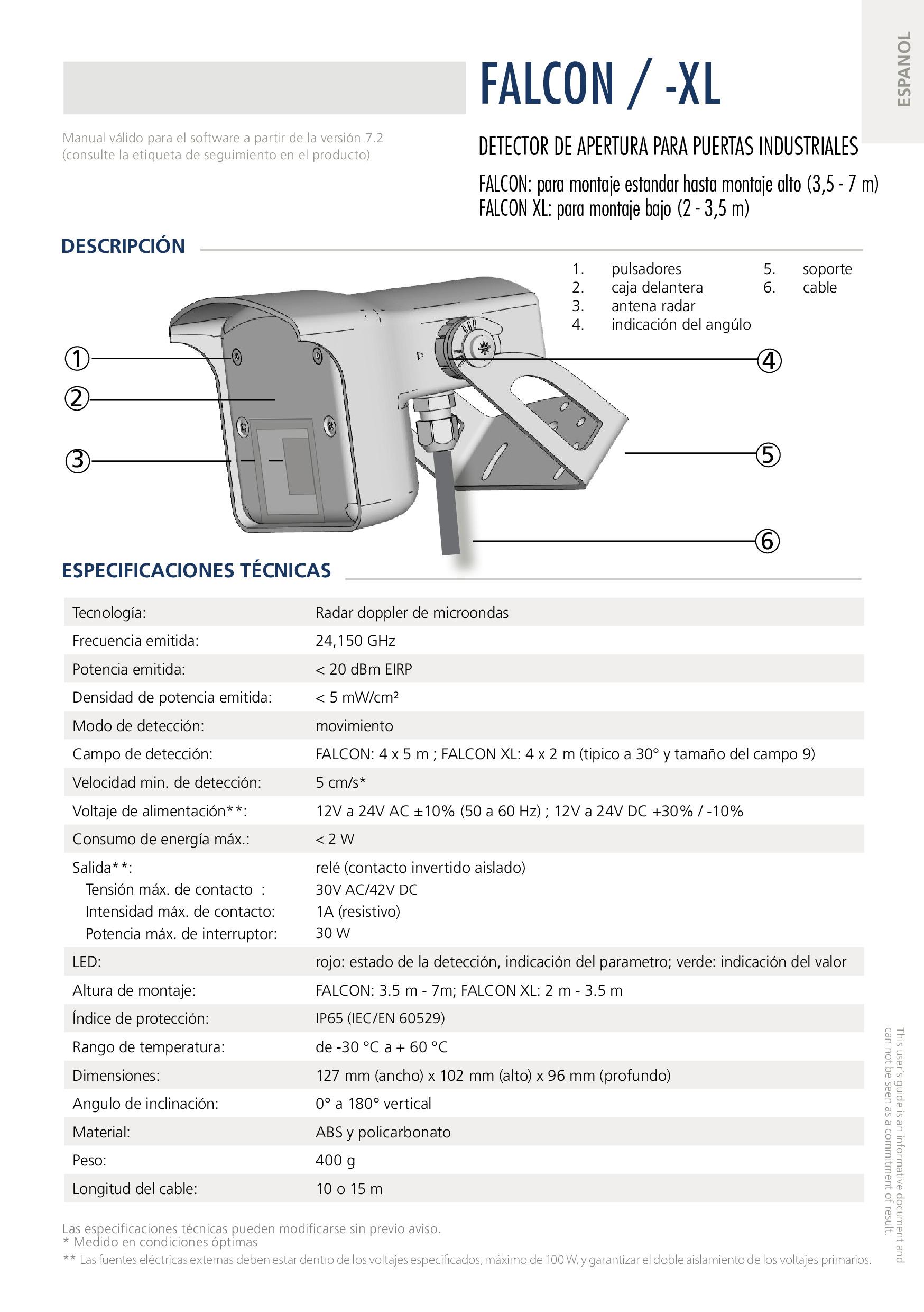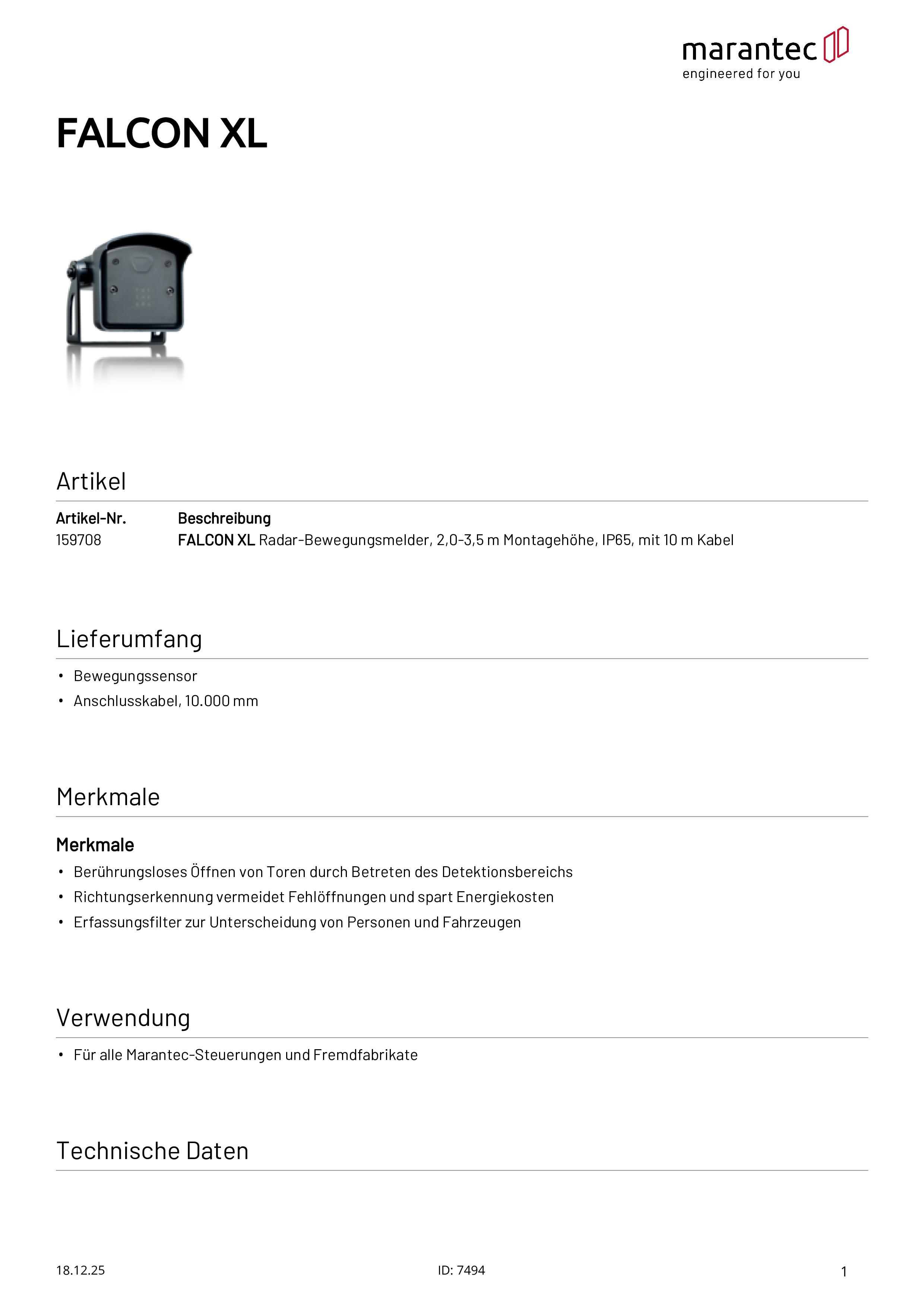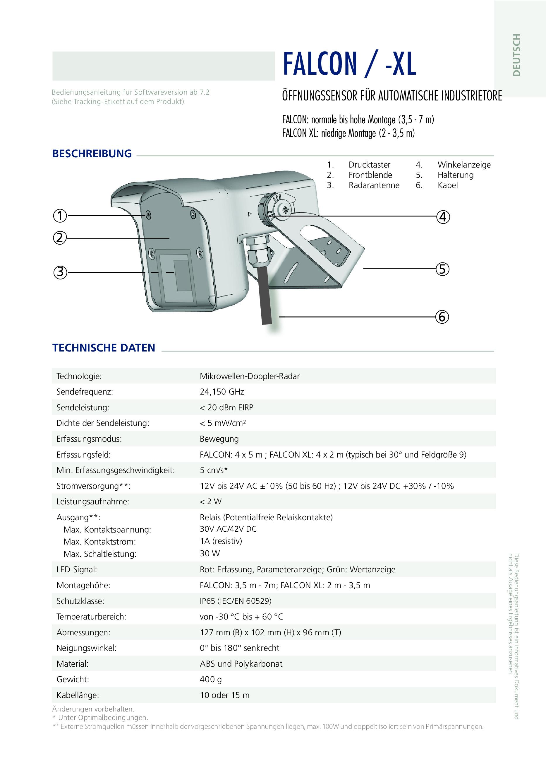 FALCON XL Détecteur de mouvement radar, hauteur de montage 2,0-3,5 m, avec 10 m de câble