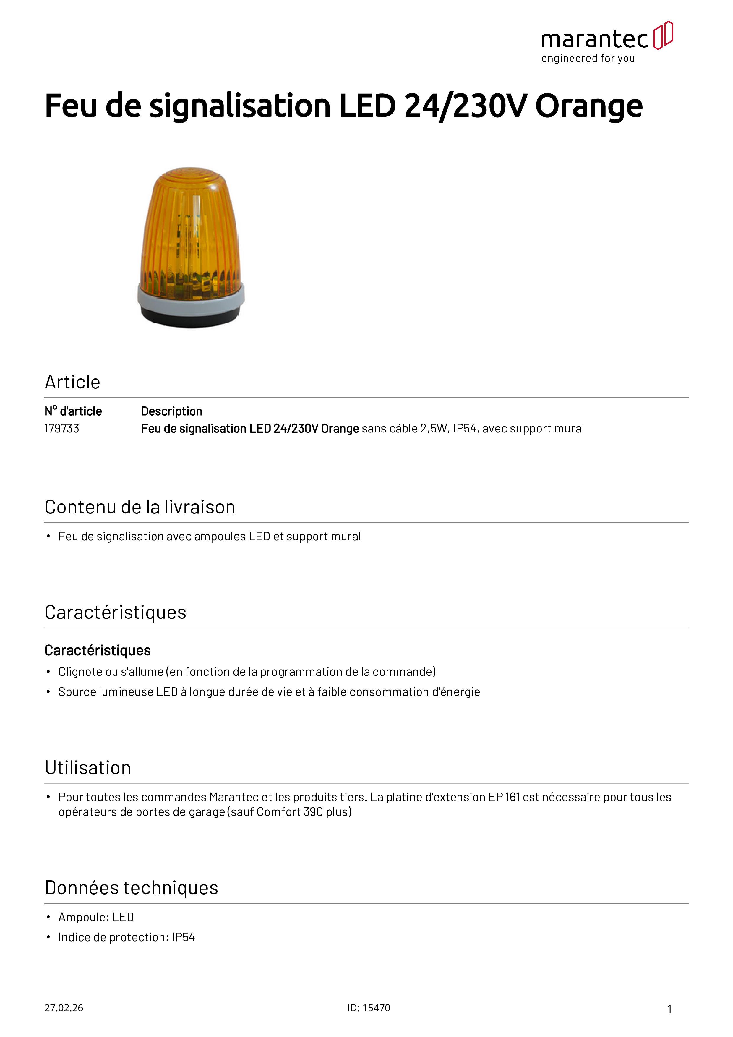 Feu de signalisation LED 24/230V Orange