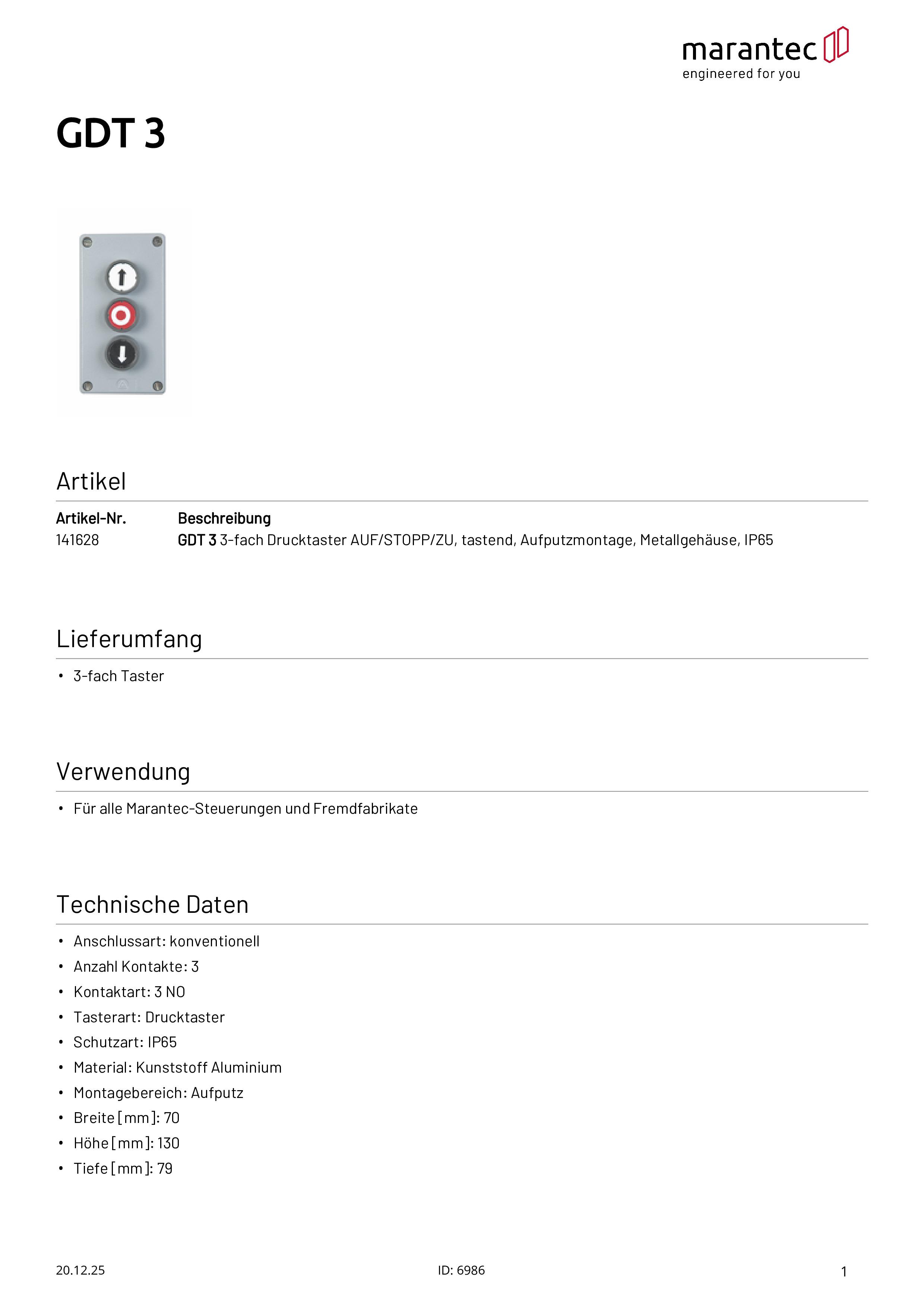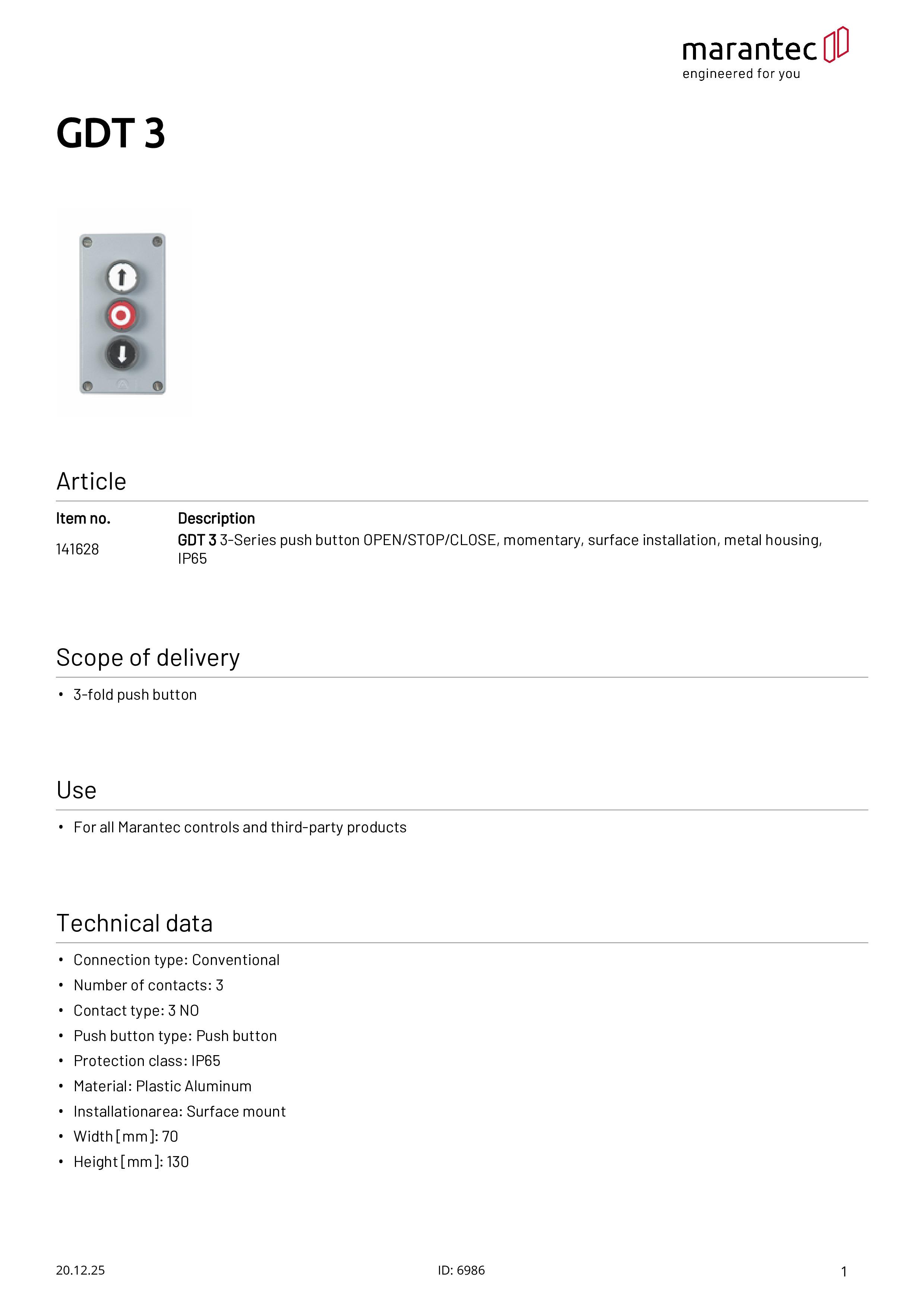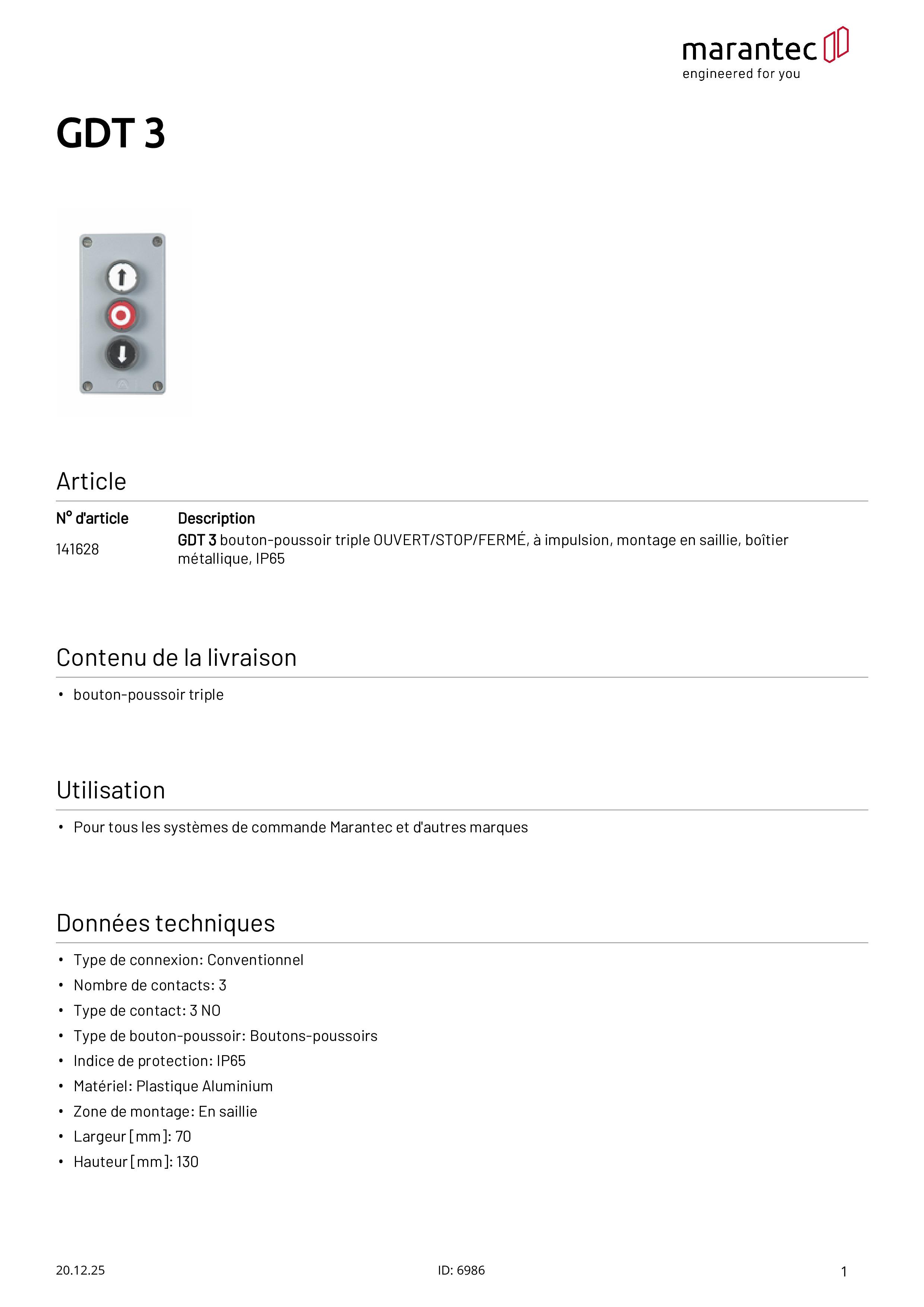 GDT 3 Bouton-poussoir triple OUVERTURE/STOP/FERMETURE en saillie Boîtier métallique IP65