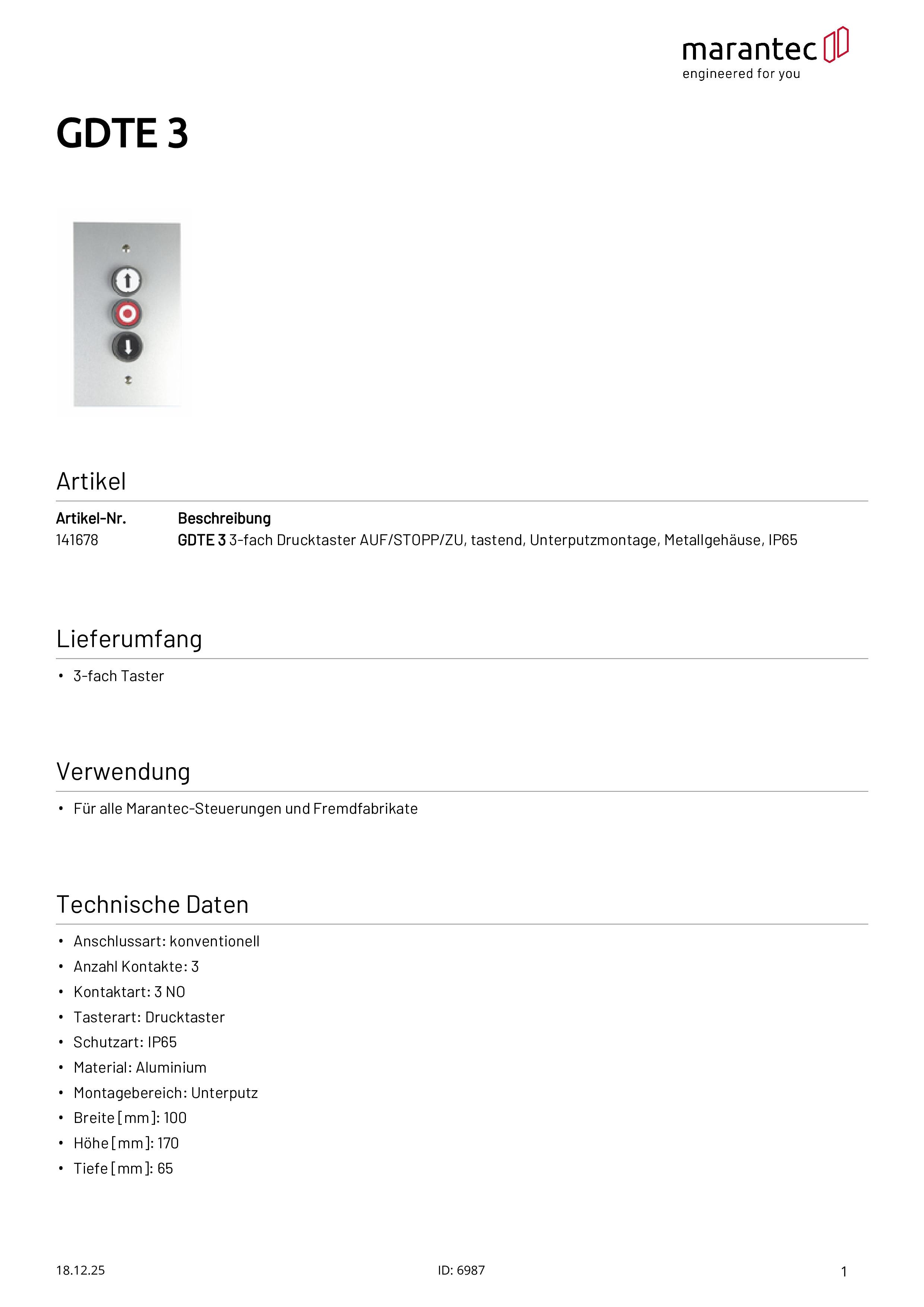 GDTE 3 Bouton-poussoir triple OUVERTURE/STOP/FERMETURE Encastré Boîtier métallique IP65