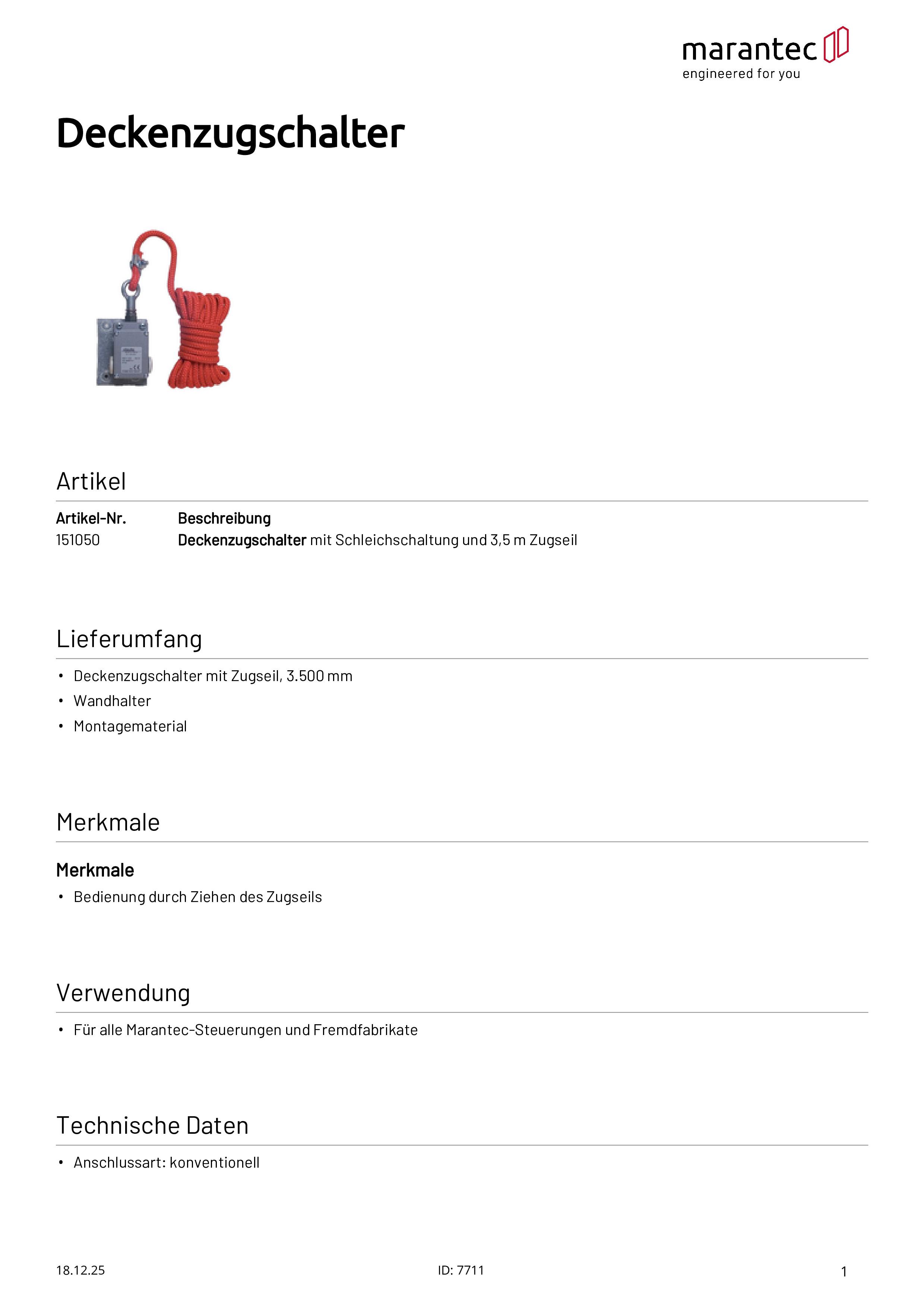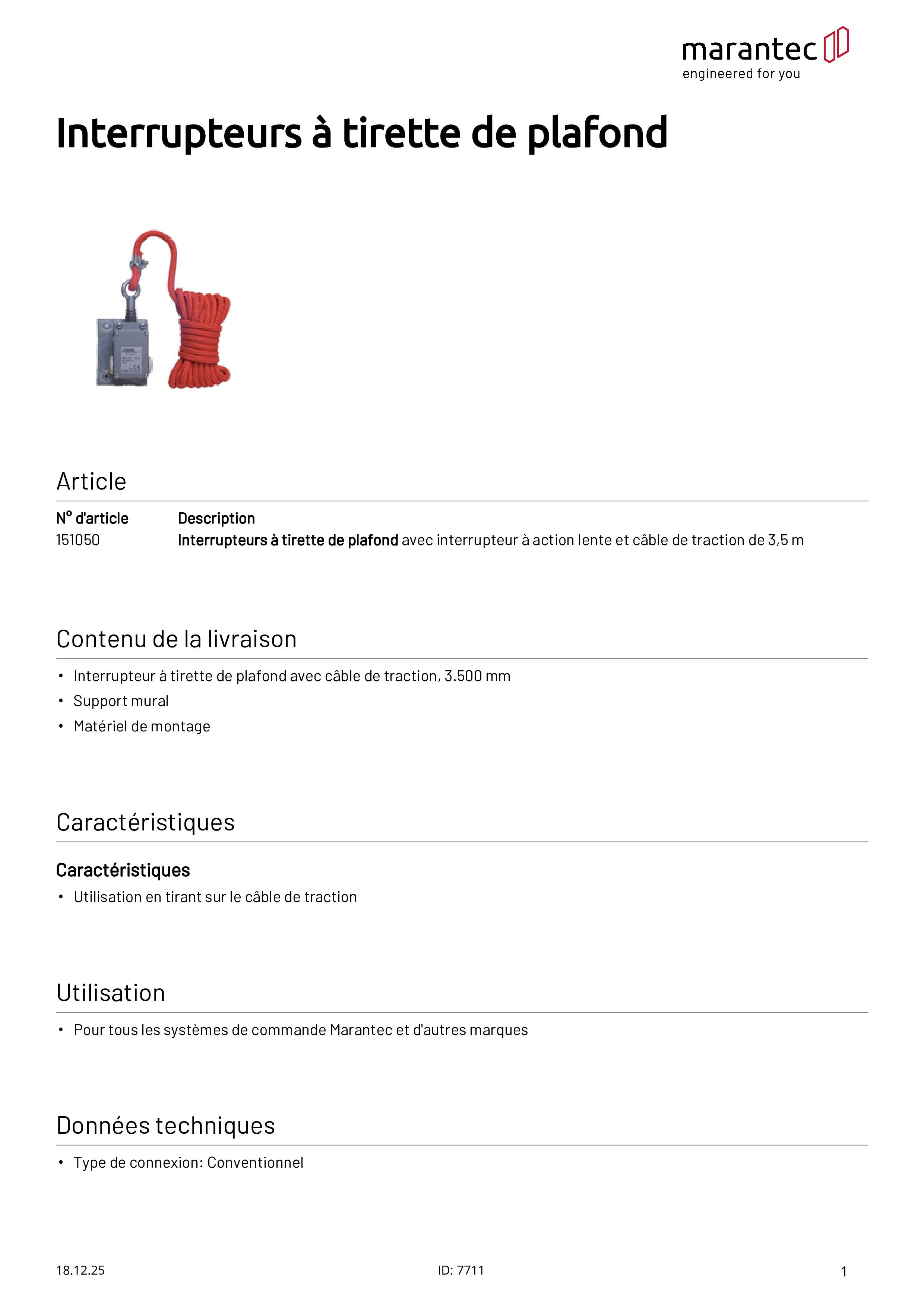 - Interrupteur à tirette de plafond avec câble de traction, 3.500 mm