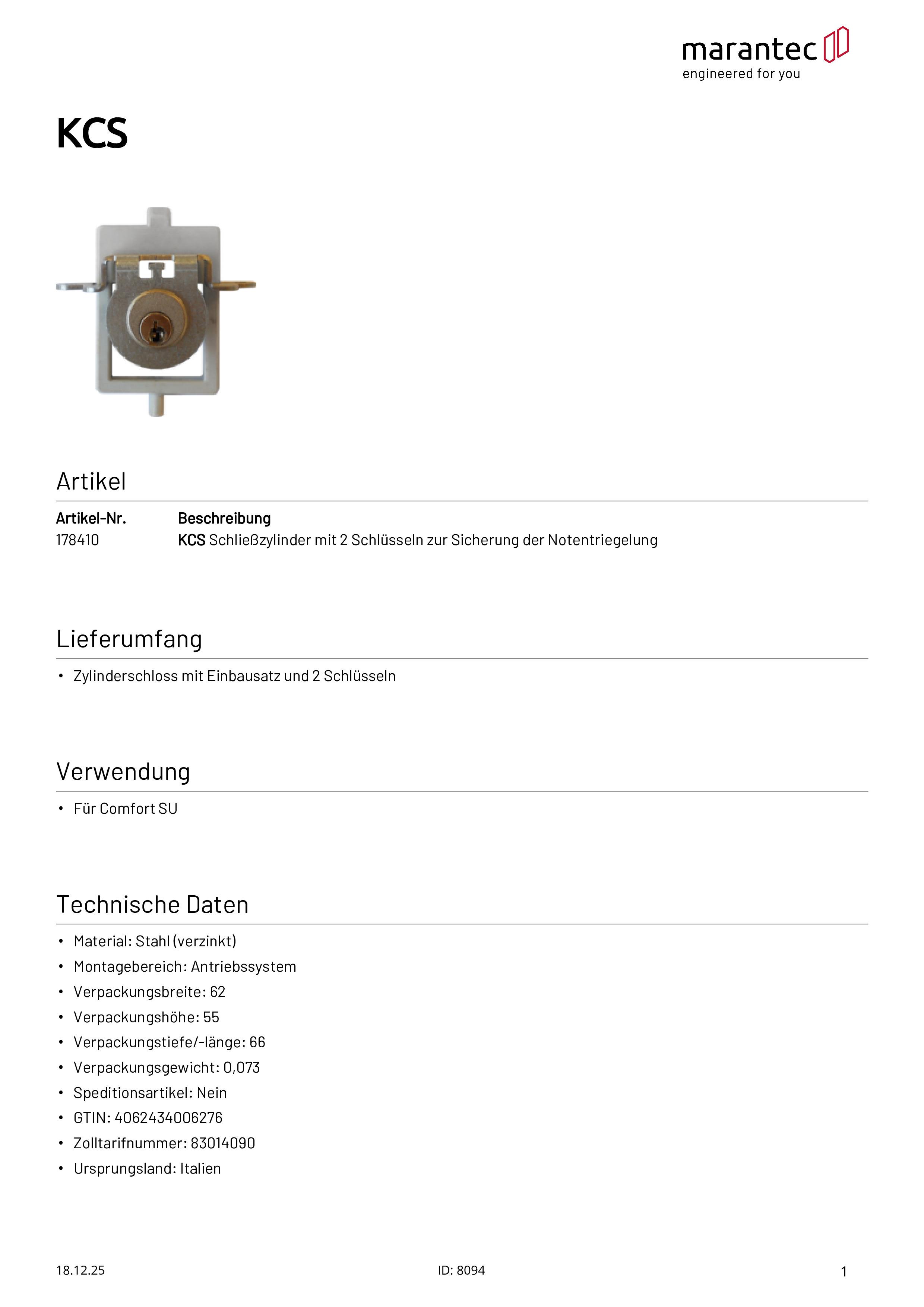 Kit de déverrouillage KCS pour sécuriser le déverrouillage d'urgence pour Comfort SU