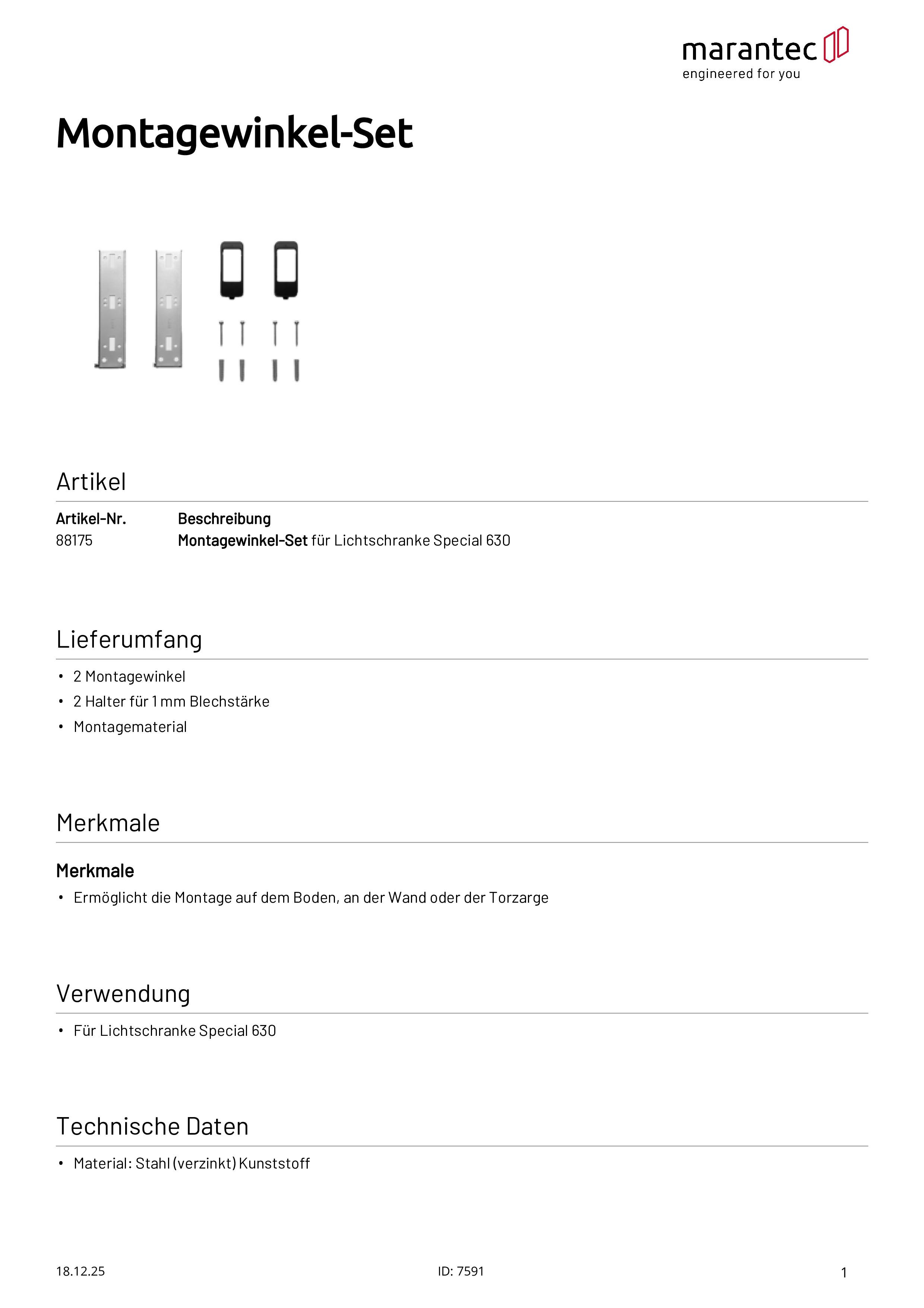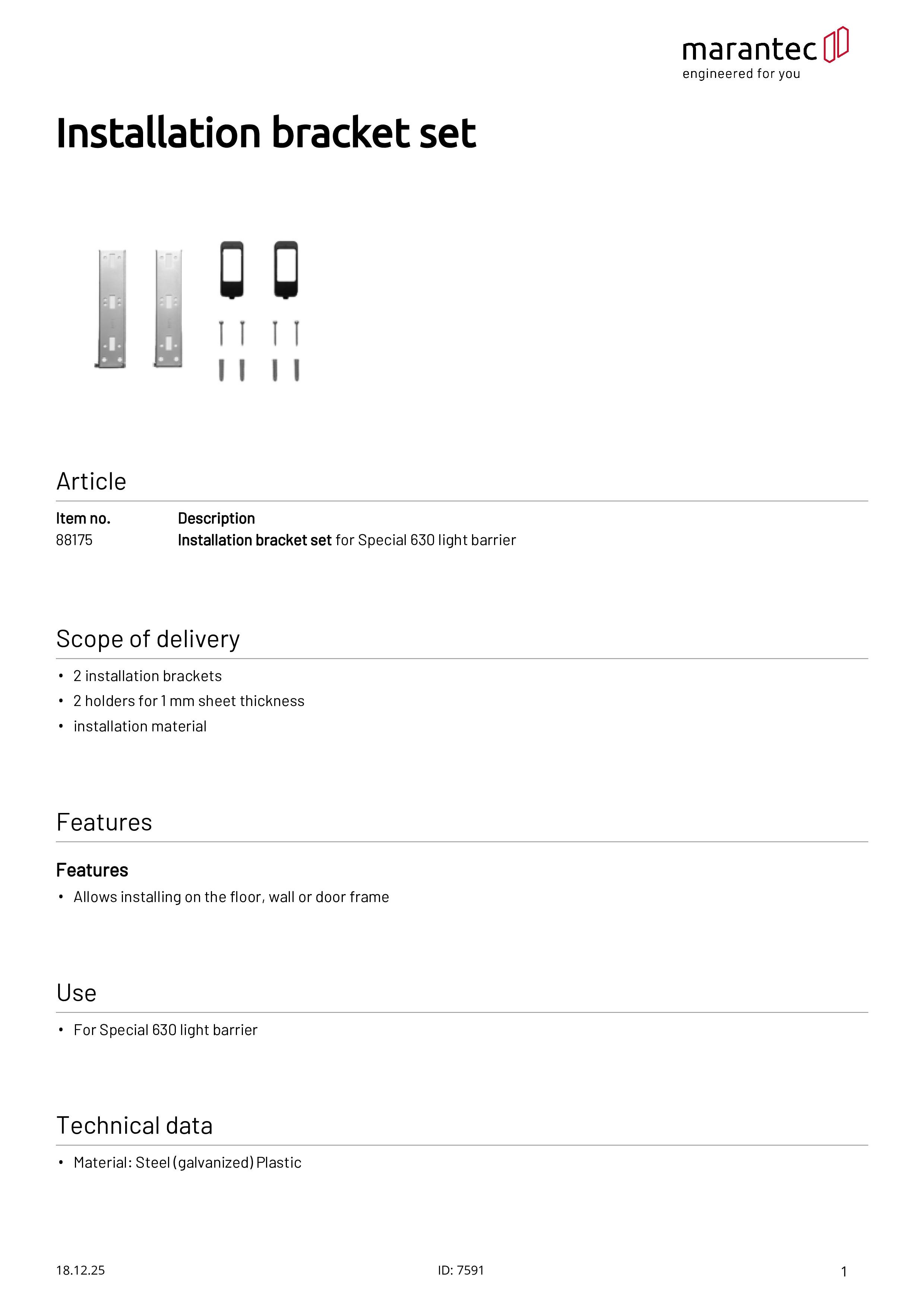 Kit d'équerres de montage pour cellule photoélectrique Special 630
