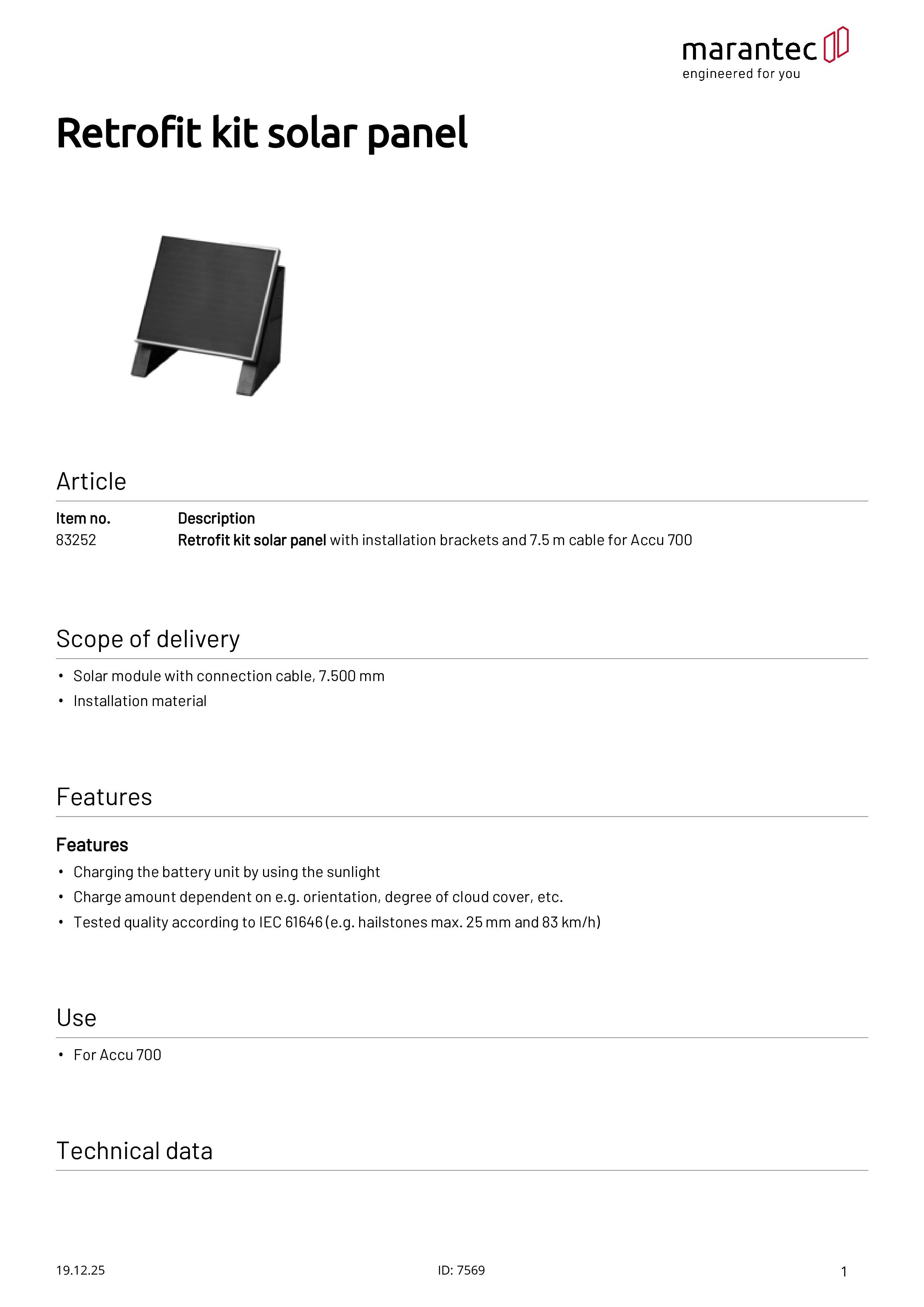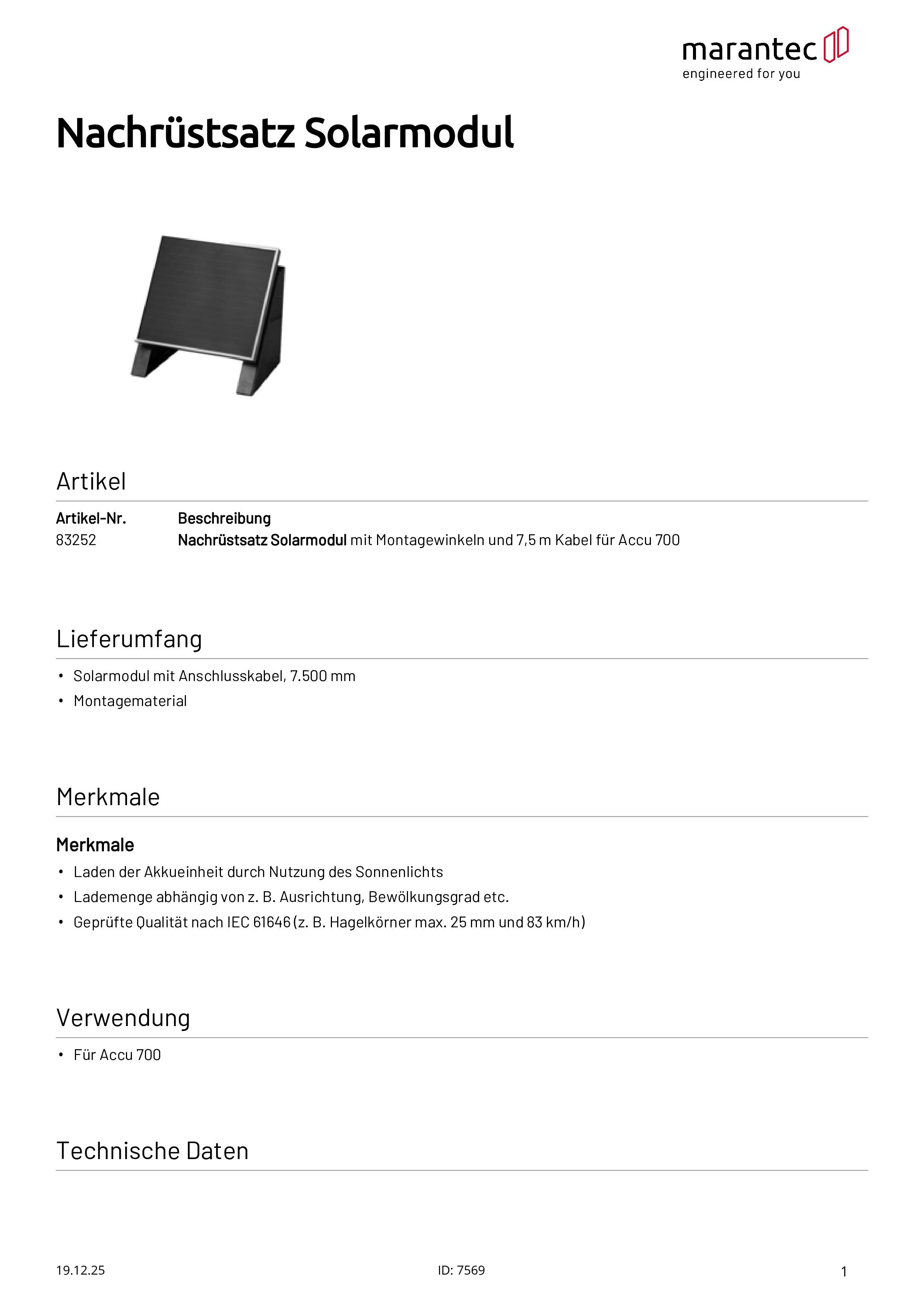 Module solaire avec équerres de montage et câble de 7,5 m pour Accu 700