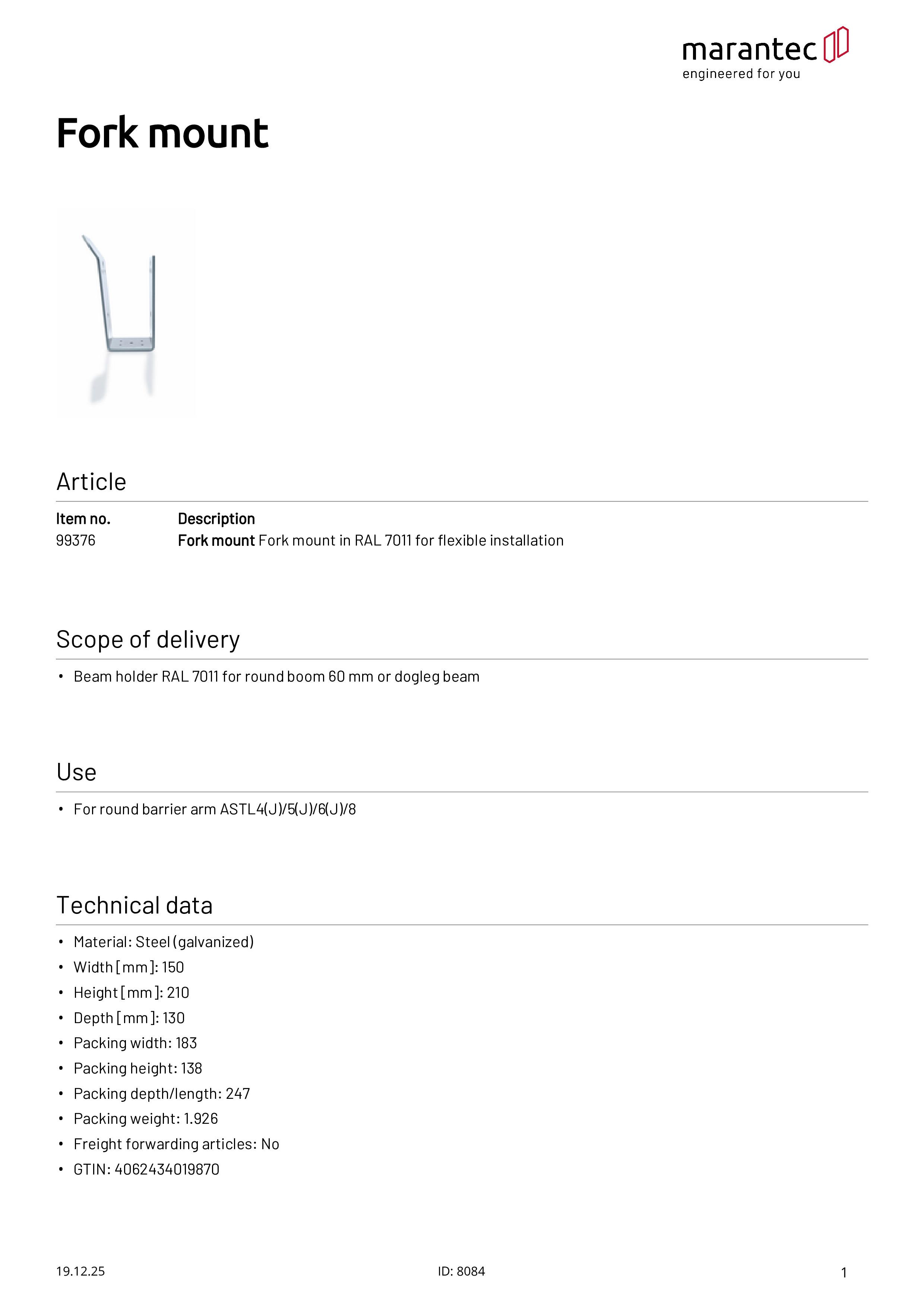 Support de fourche en RAL 7011 pour un montage flexible