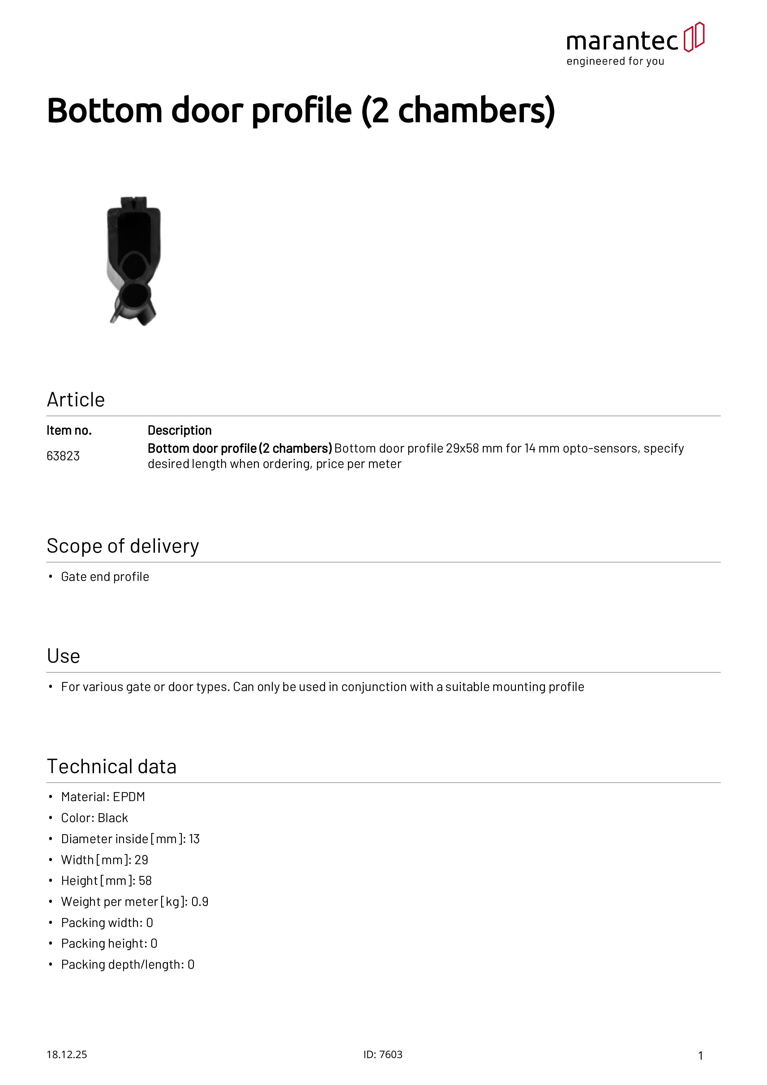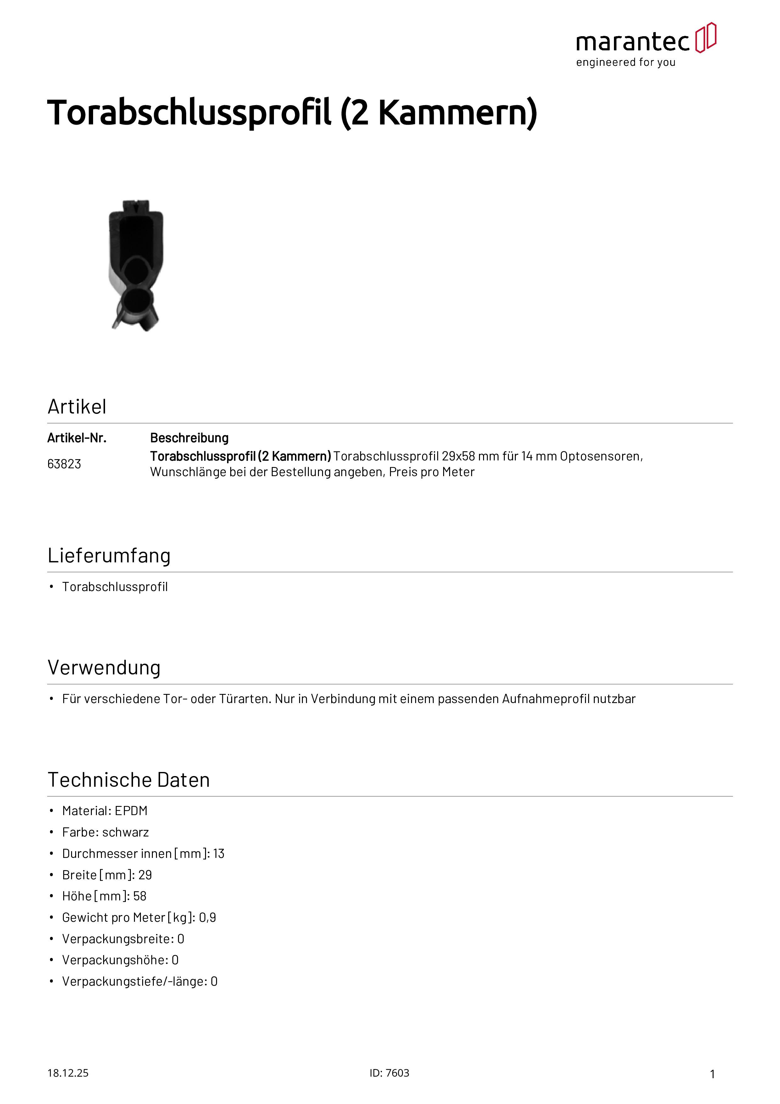 Profilé de barre palpeuse (2 chambres) 29x58 mm, optosensors 14 mm