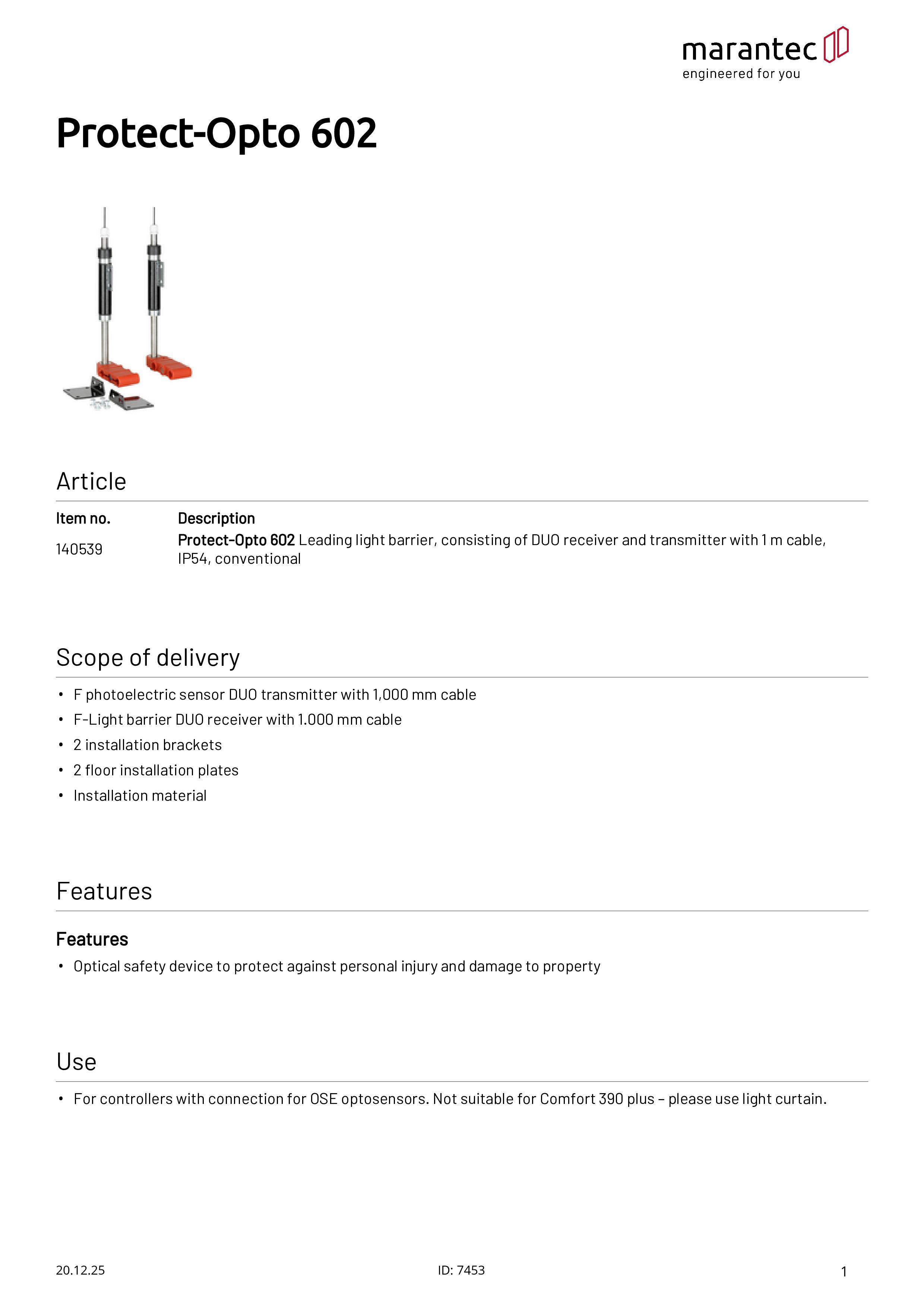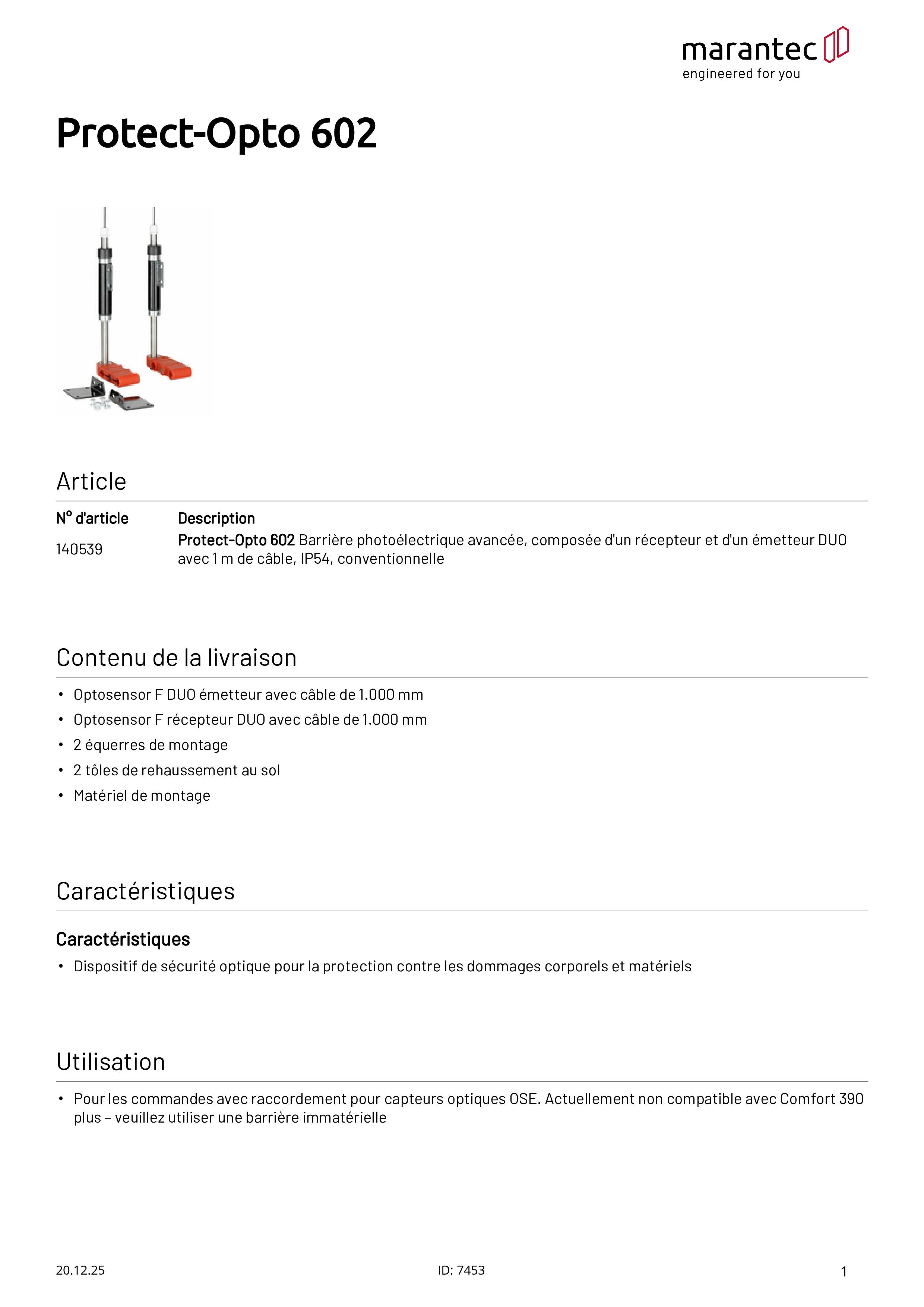 Protect-Opto 602 Barrière photoélectrique avancée Récepteur et émetteur DUO