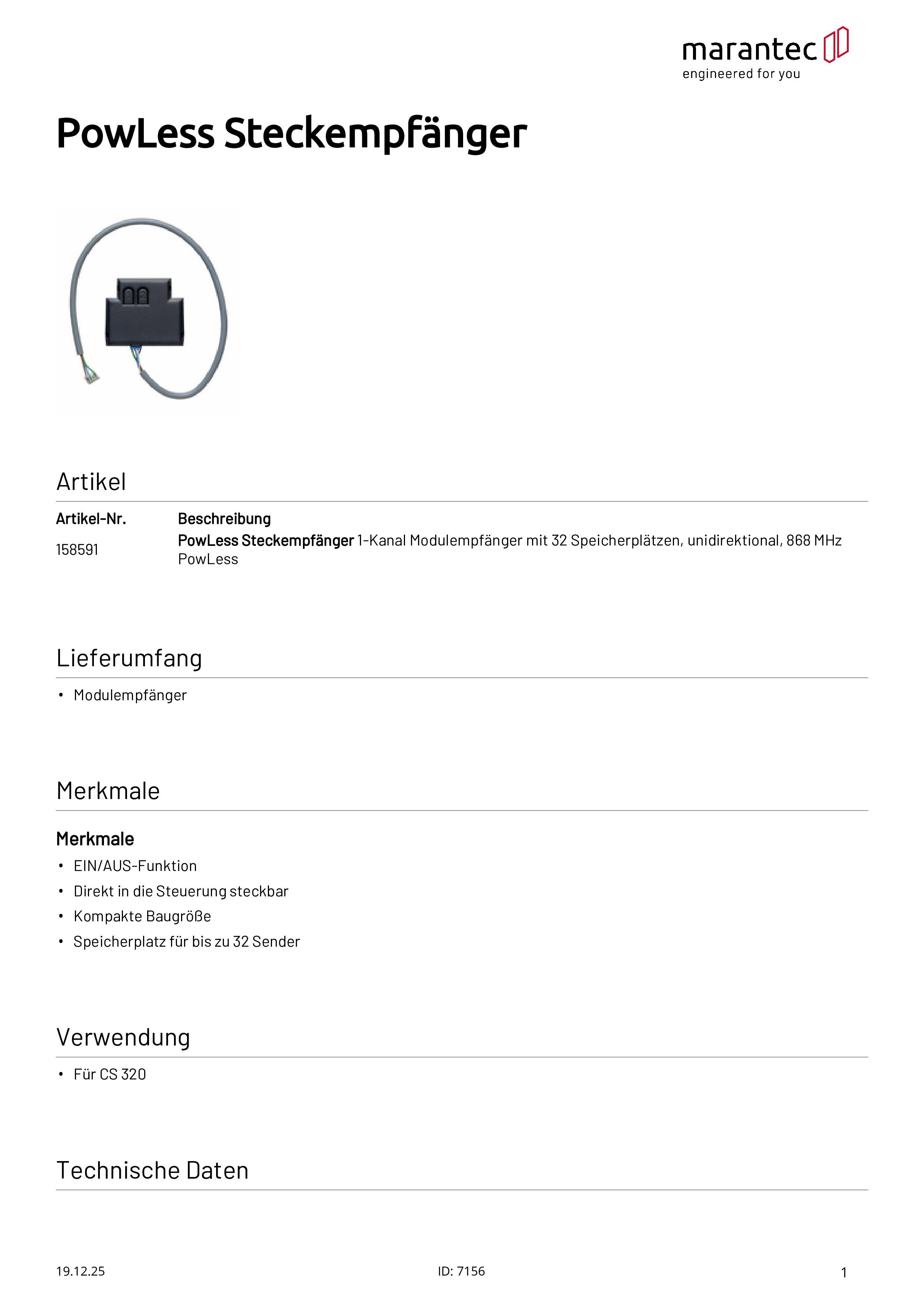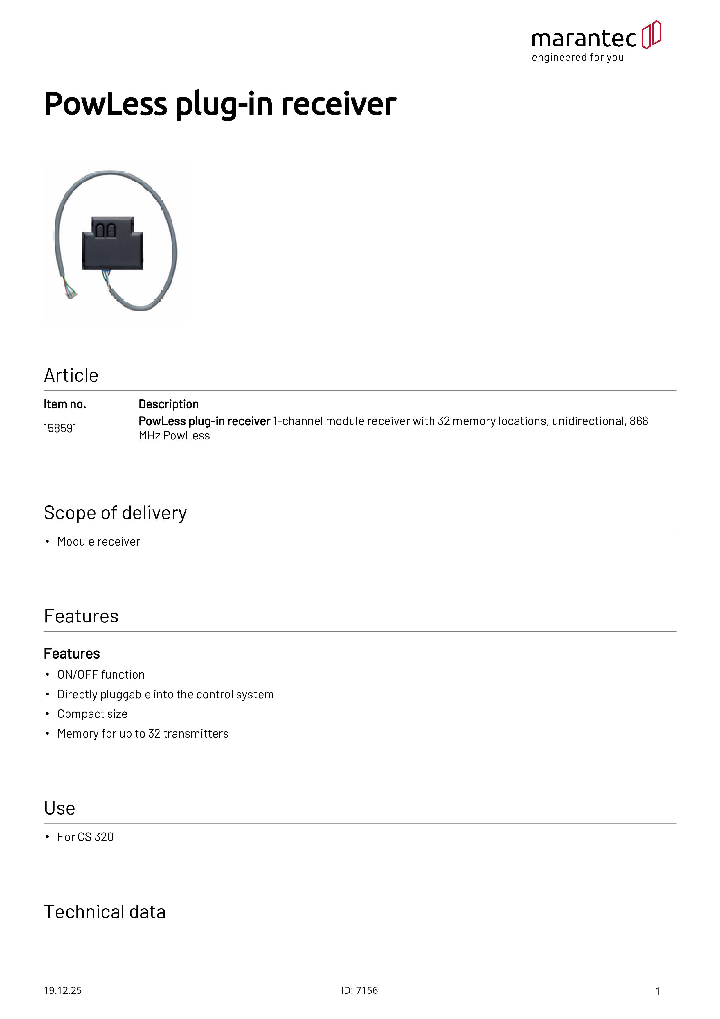 Récepteur modulaire PowLess 1 canal, 32 emplacements de mémoire, 868 MHz PowLess
