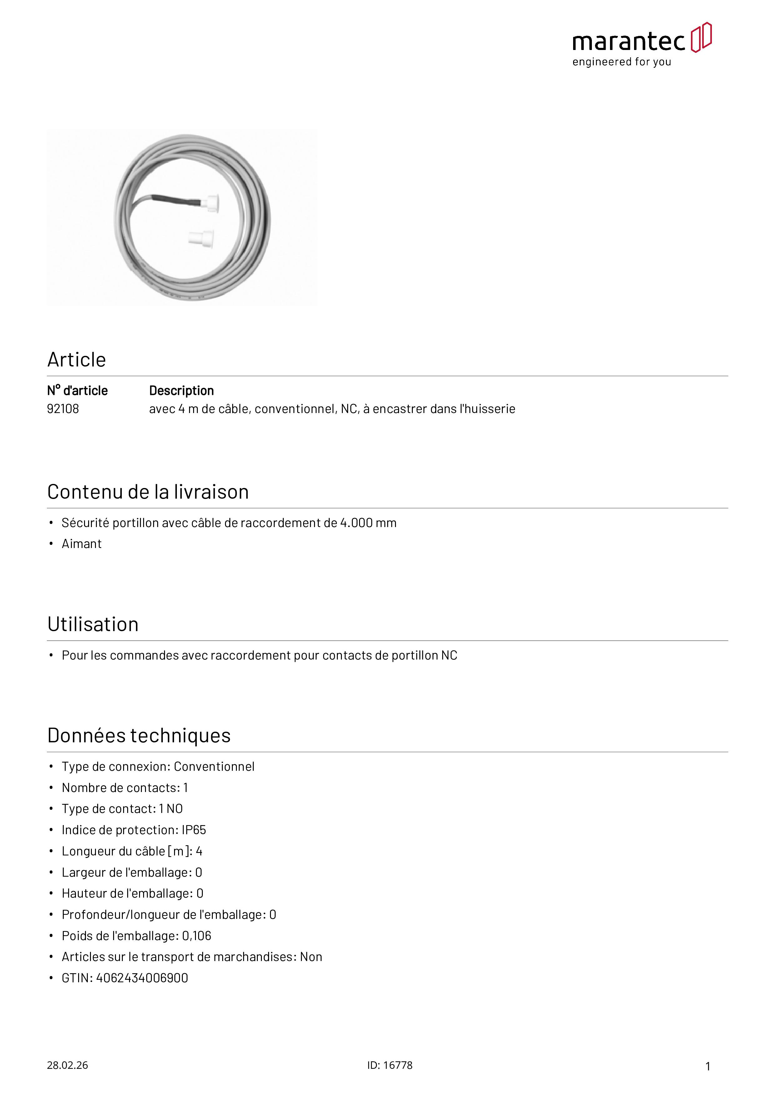 - Sécurité portillon avec câble de raccordement de 4.000 mm
