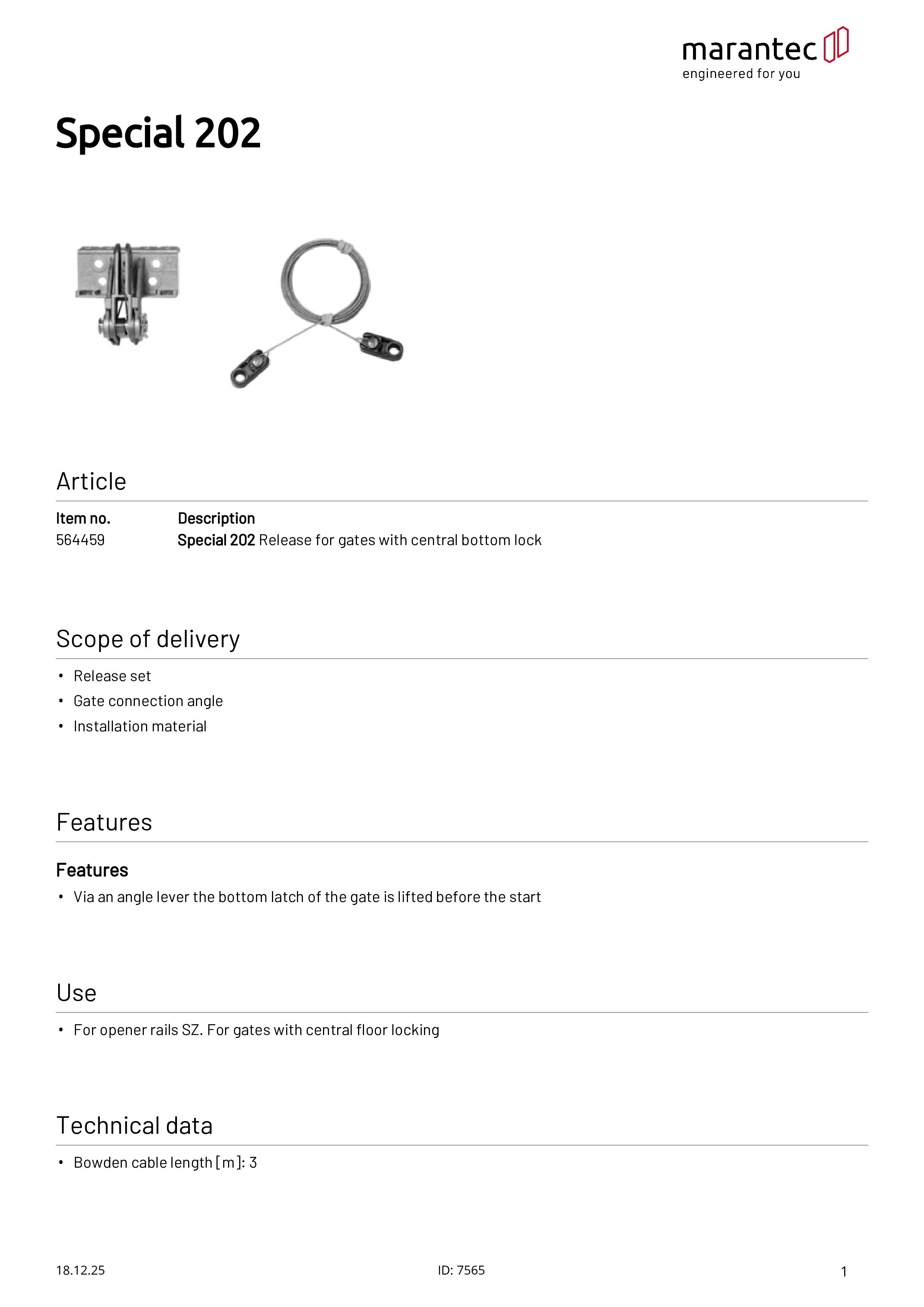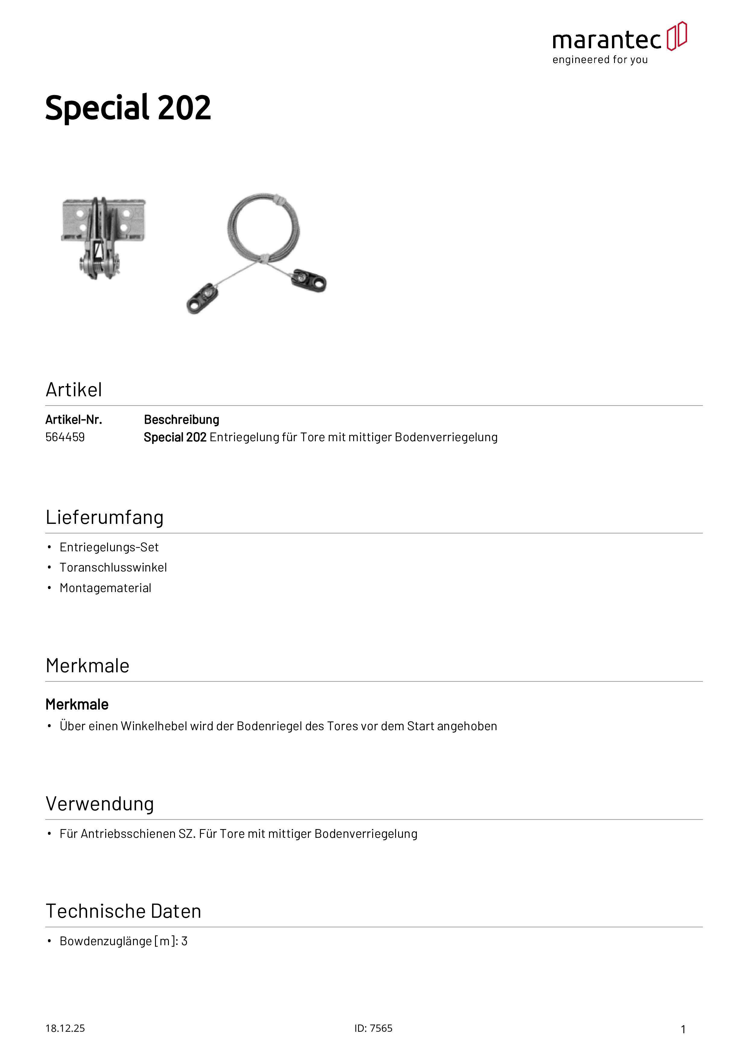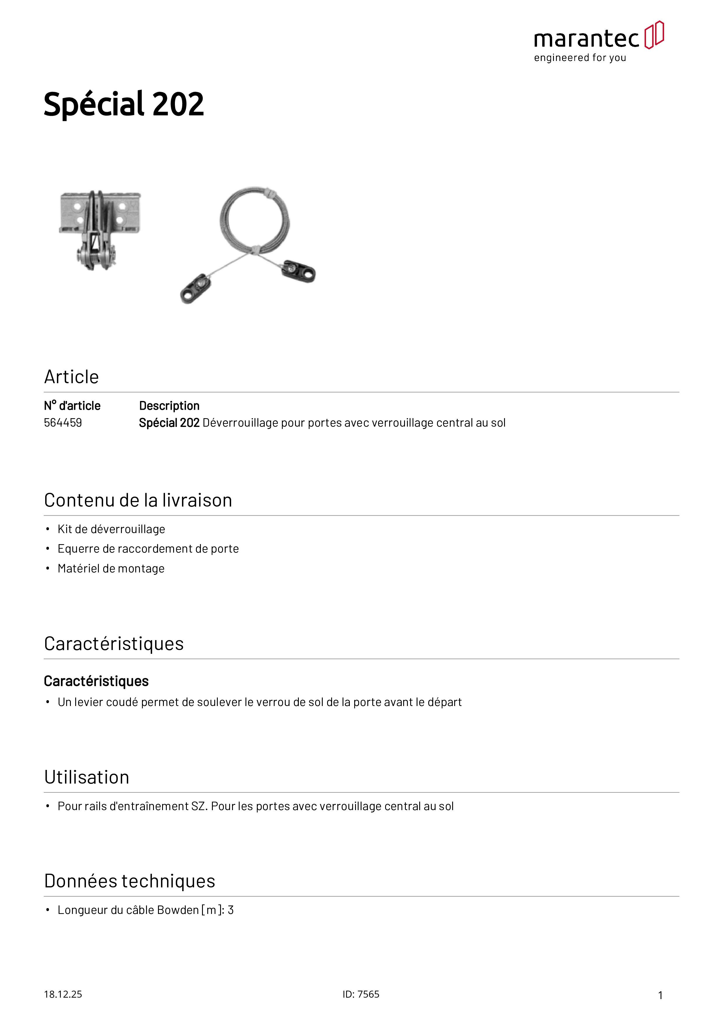 Special 202 Déverrouillage pour portes avec verrouillage central au sol