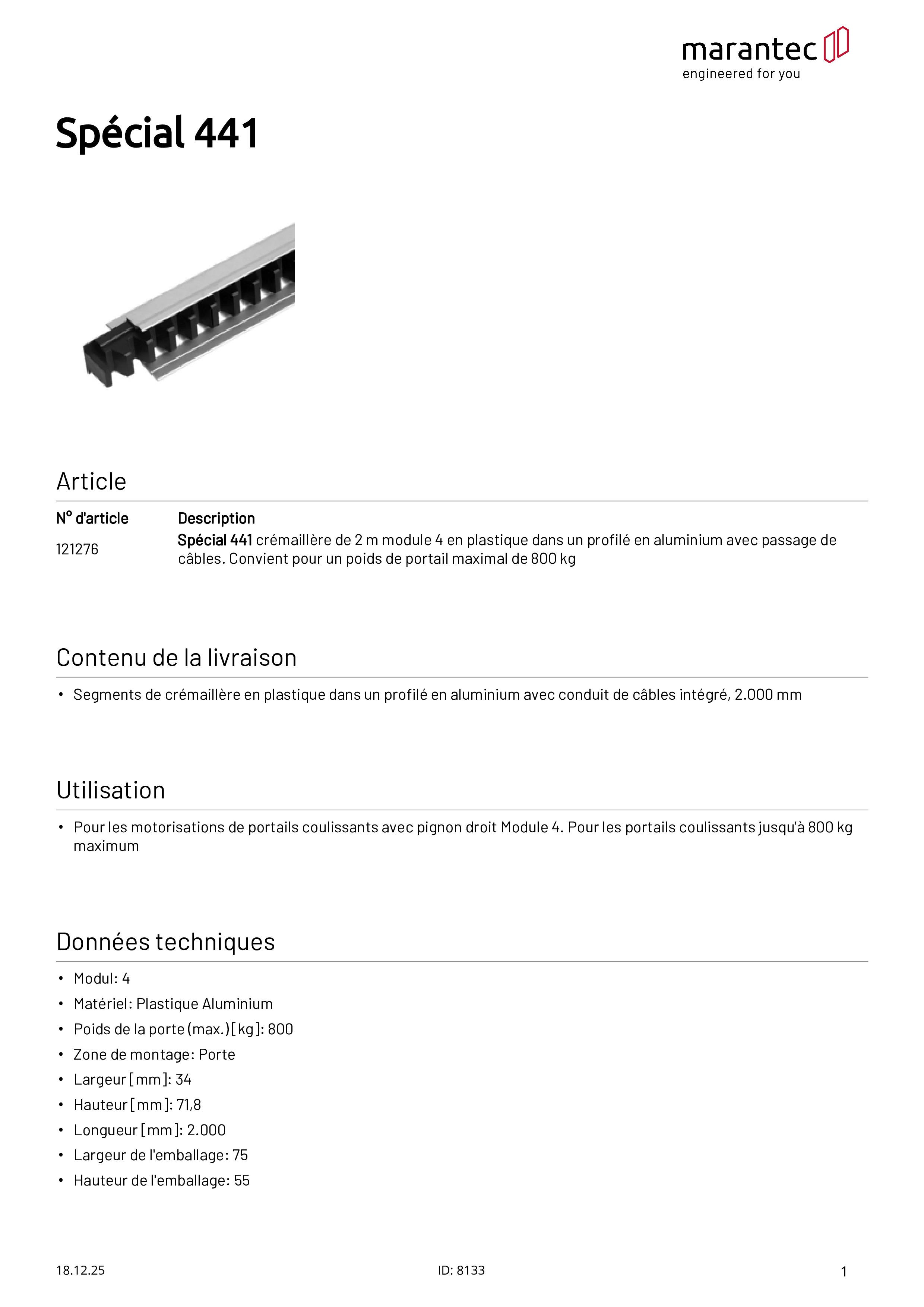 Special 441 2 m Crémaillère module 4 en plastique dans profilé aluminium