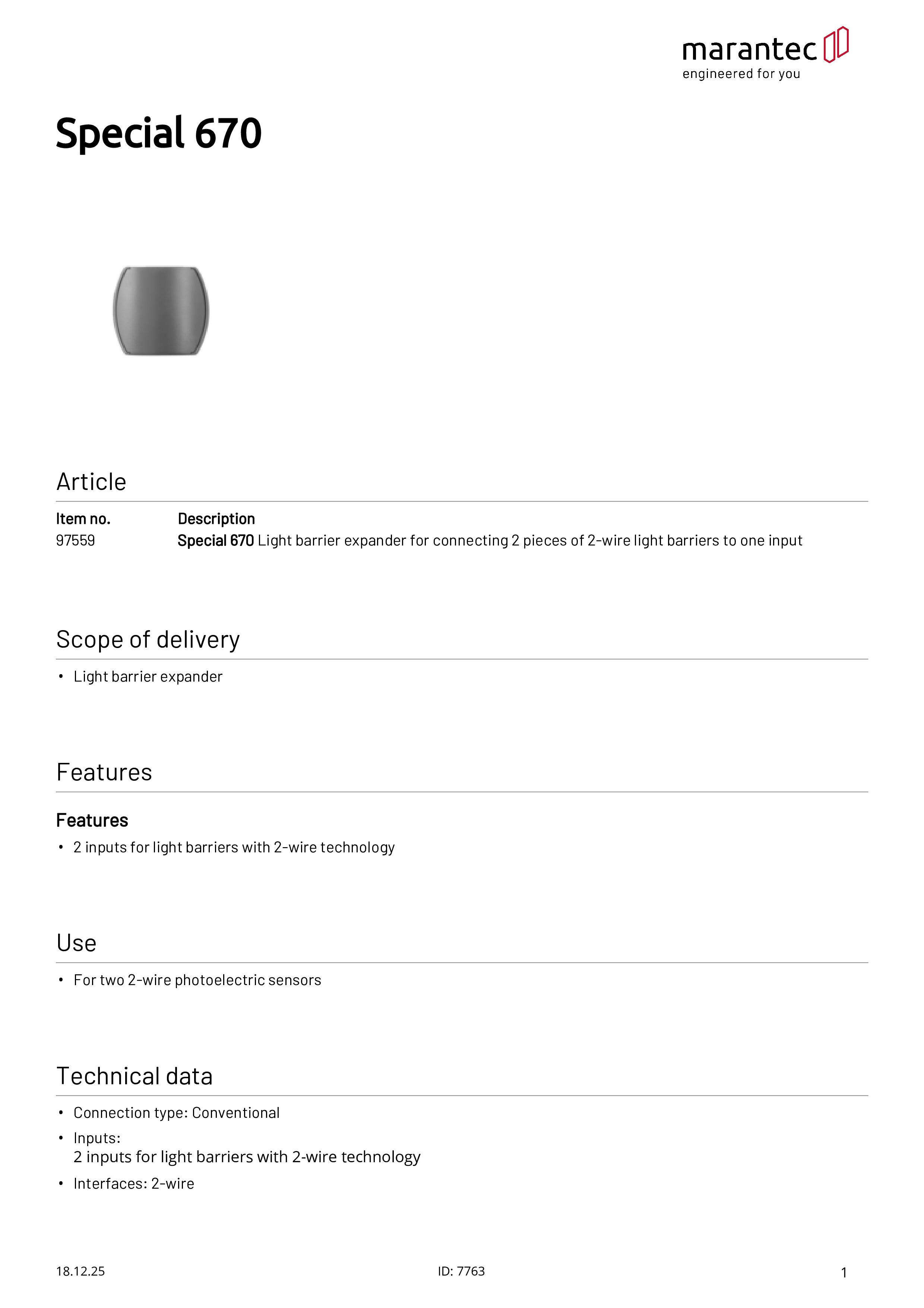 Special 670 Raccordement de deux cellules photoélectriques bifilaires sur une entrée