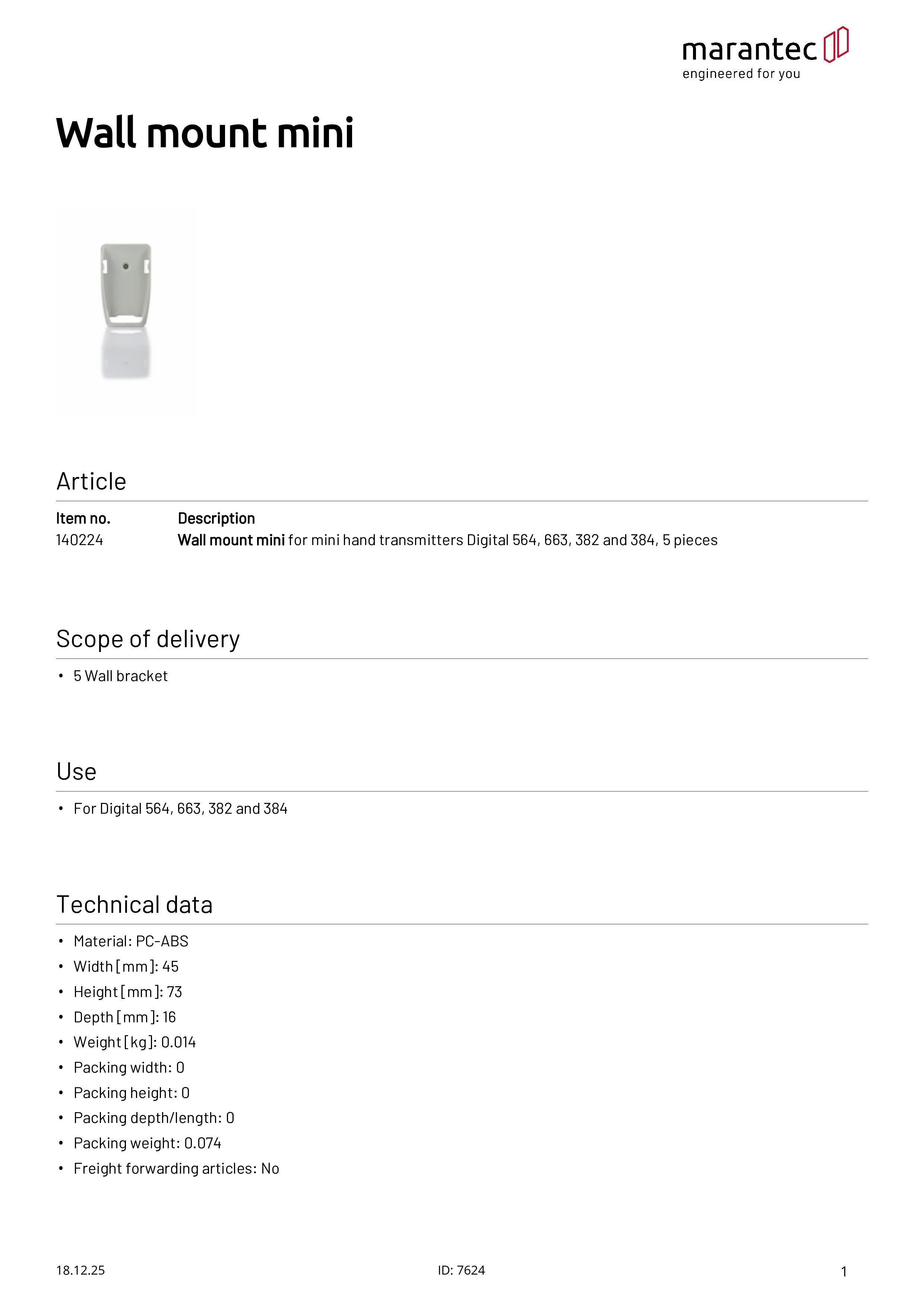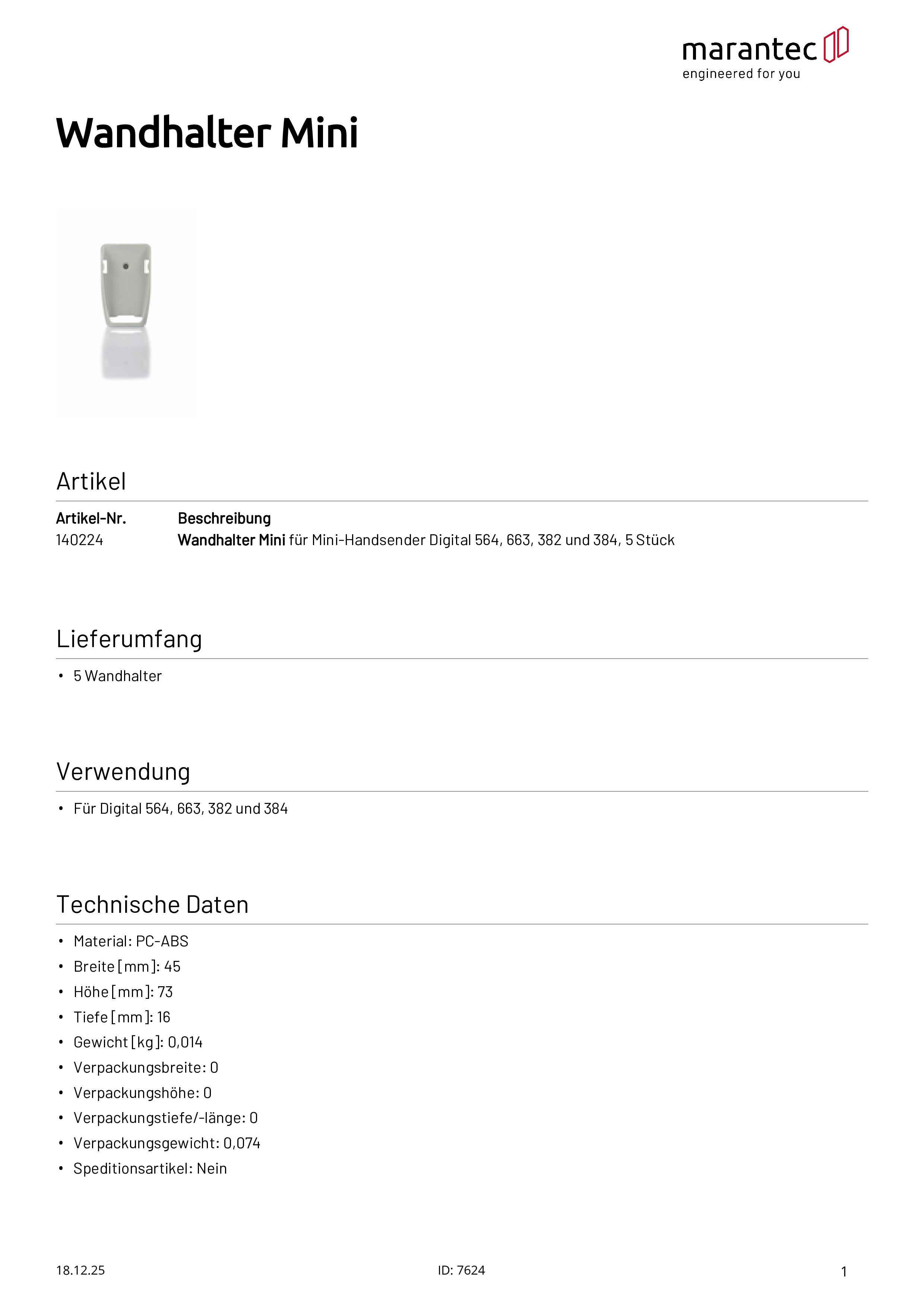 Support mural pour télécommande Digital 564/663/382/384, set de 5 pièces