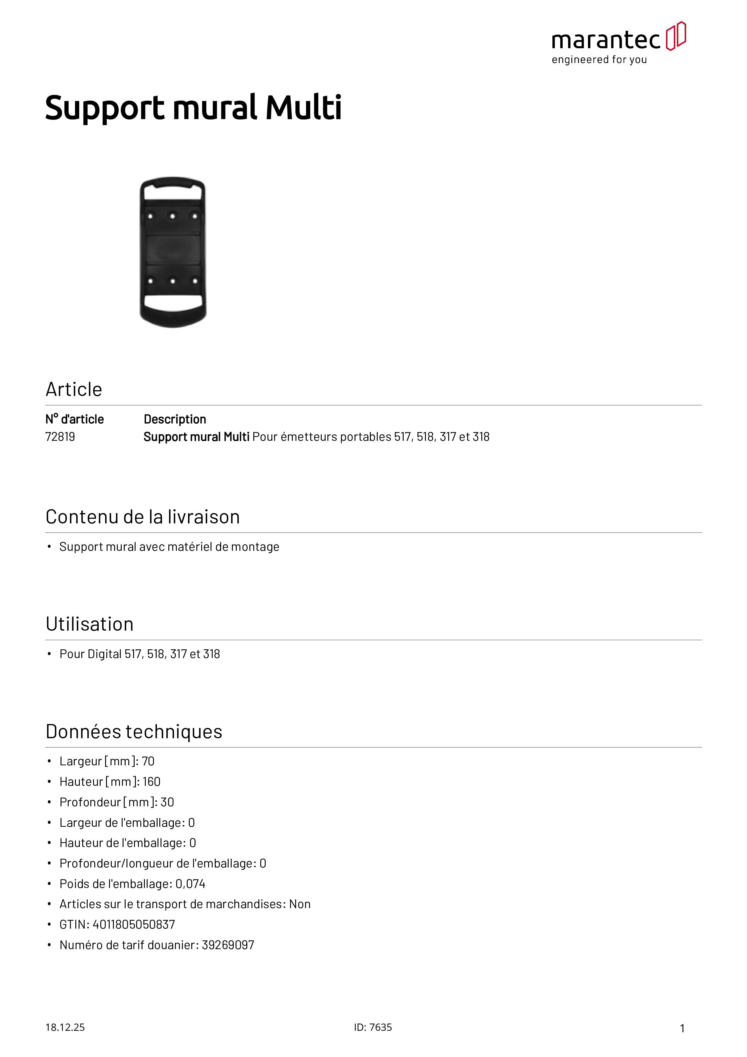 Pour toute question au fabricant, veuillez utiliser le formulaire de contact .