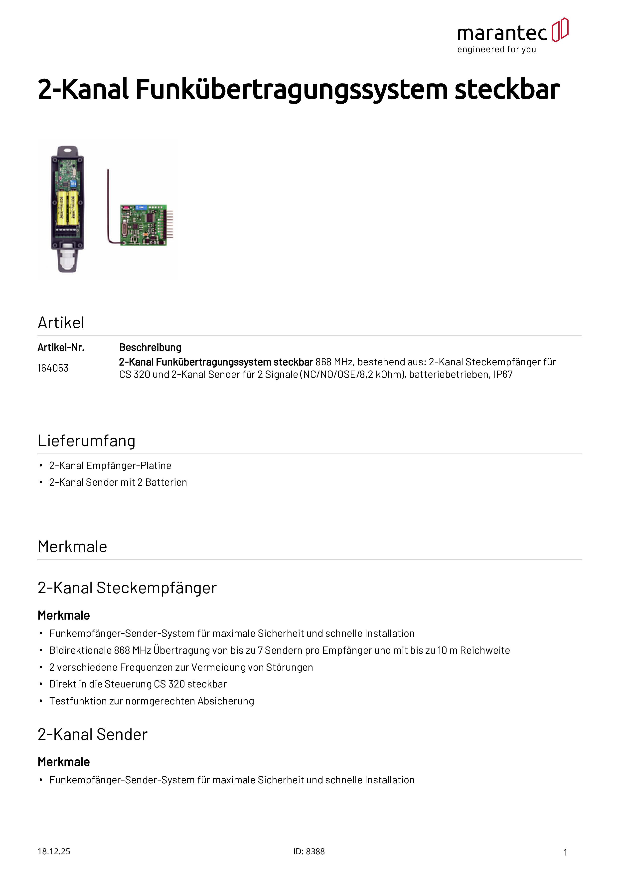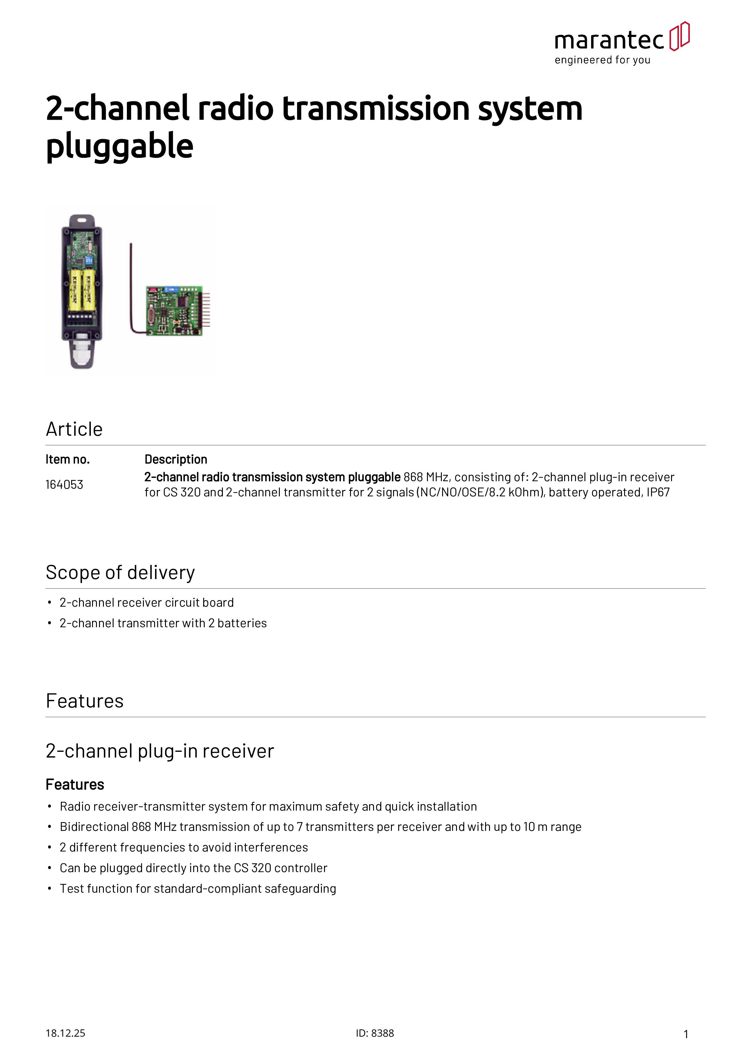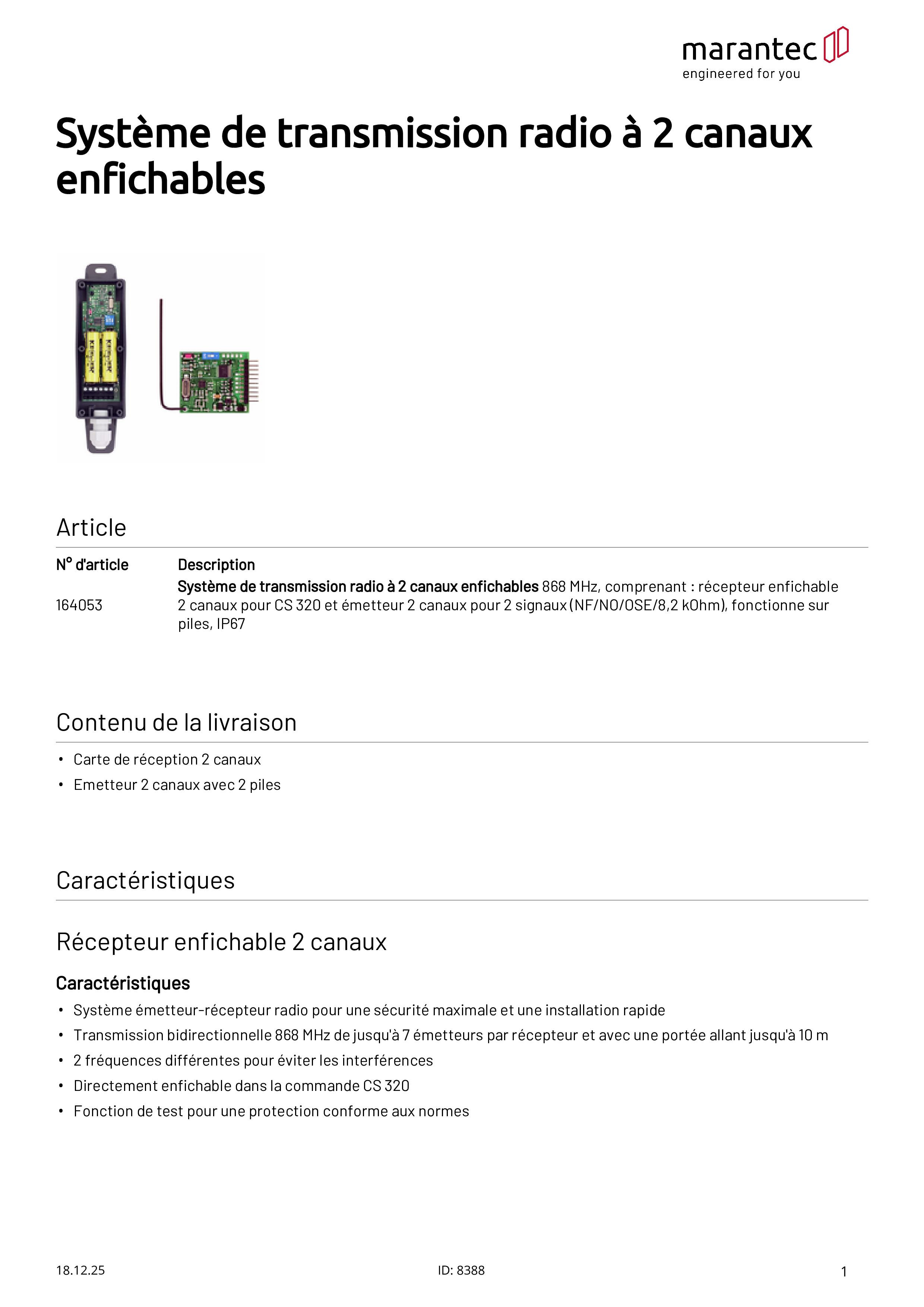 Système de transmission radio : récepteur enfichable 2 canaux CS 320, émetteur 2 canaux