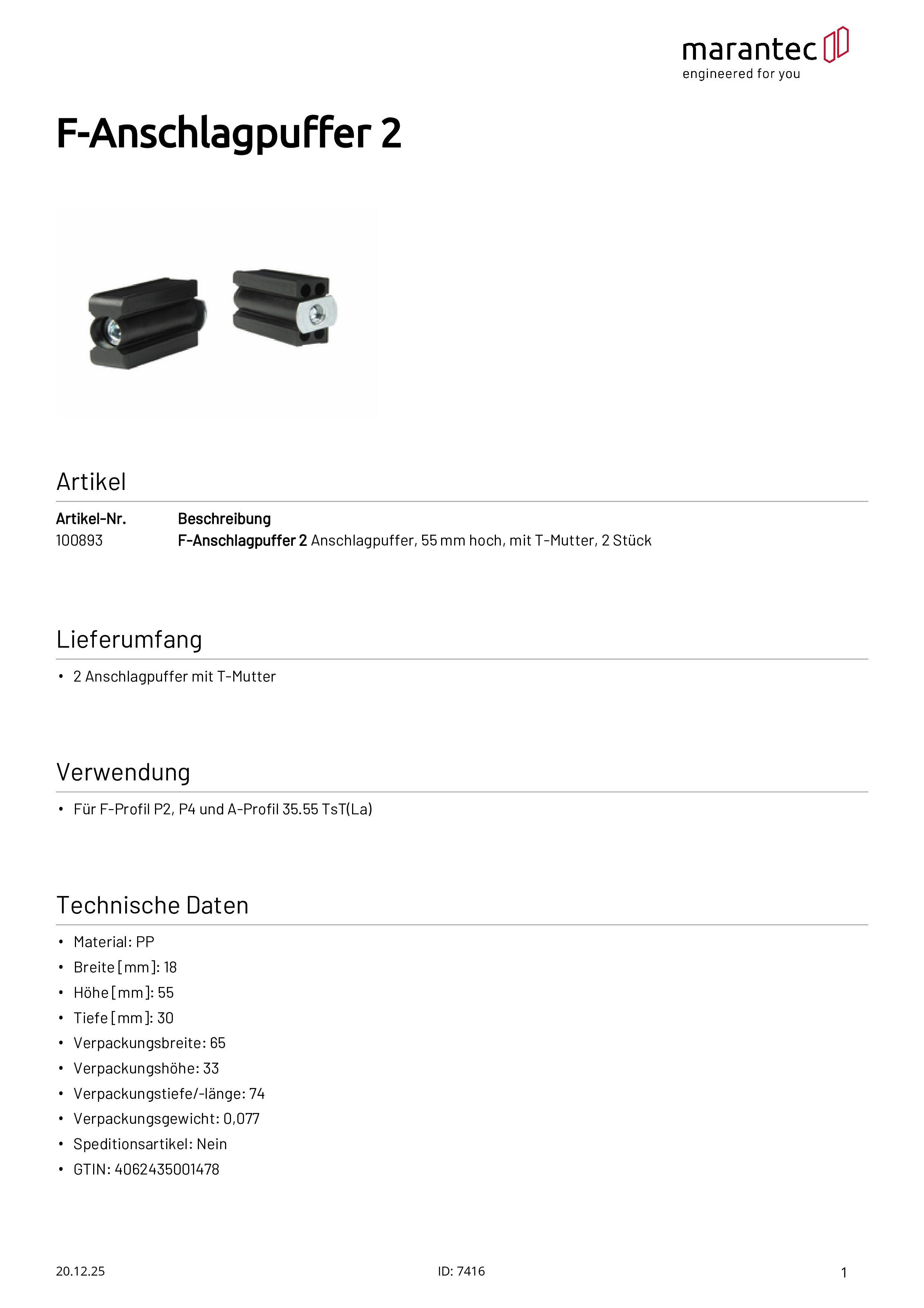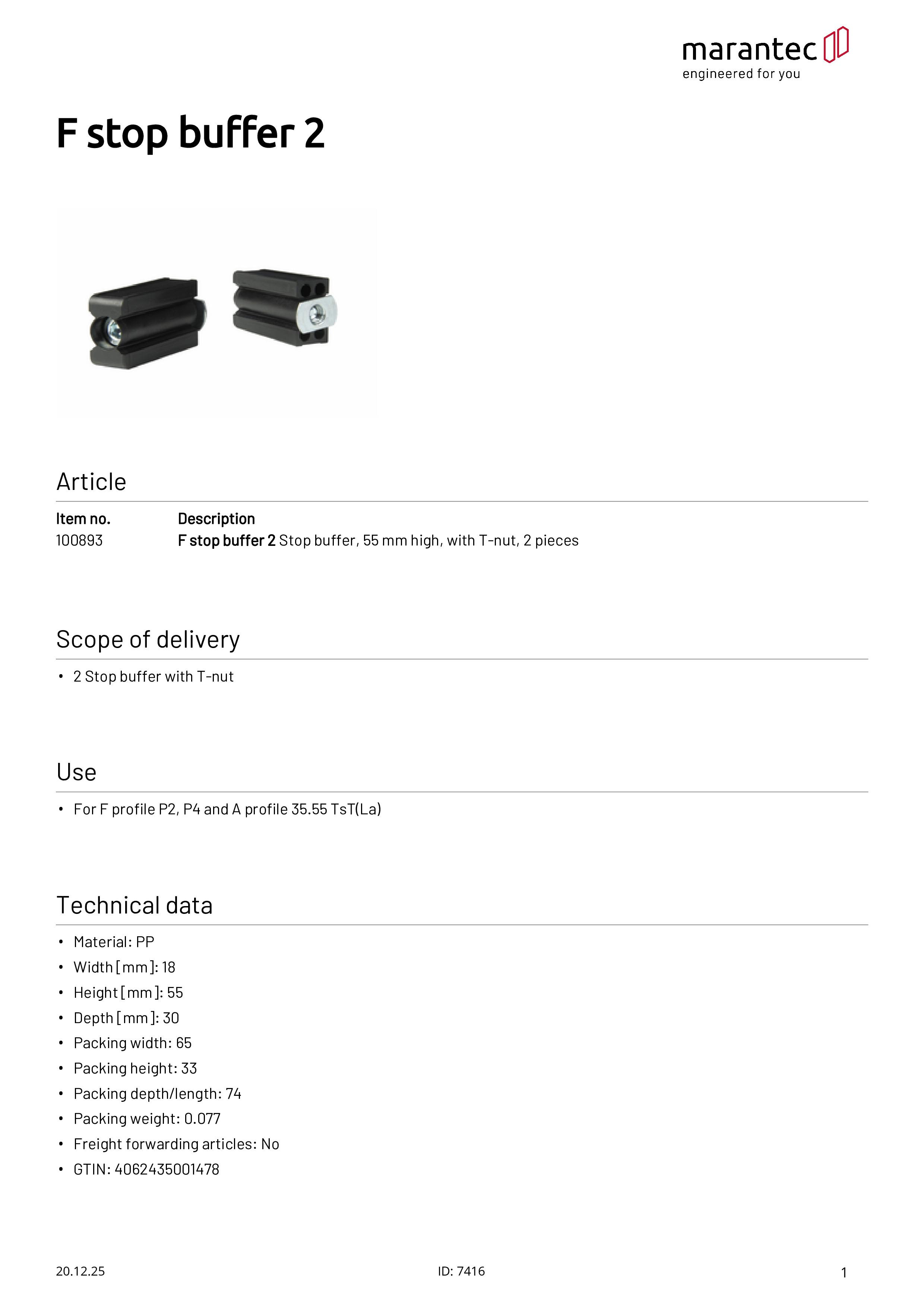 Tampon de butée F 2, hauteur 55 mm, avec écrou en T, lot de 2